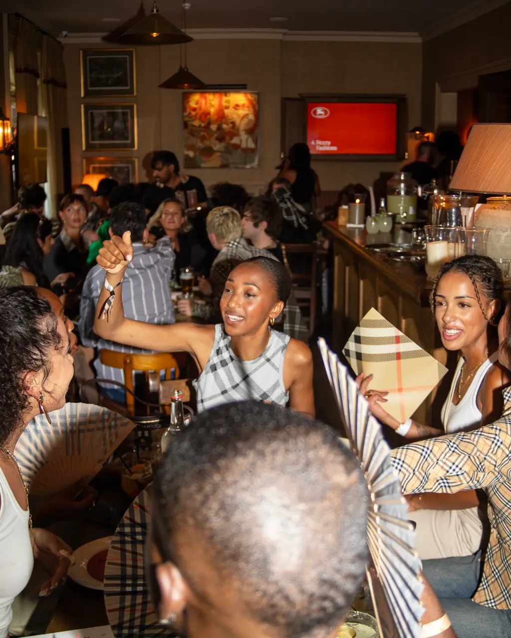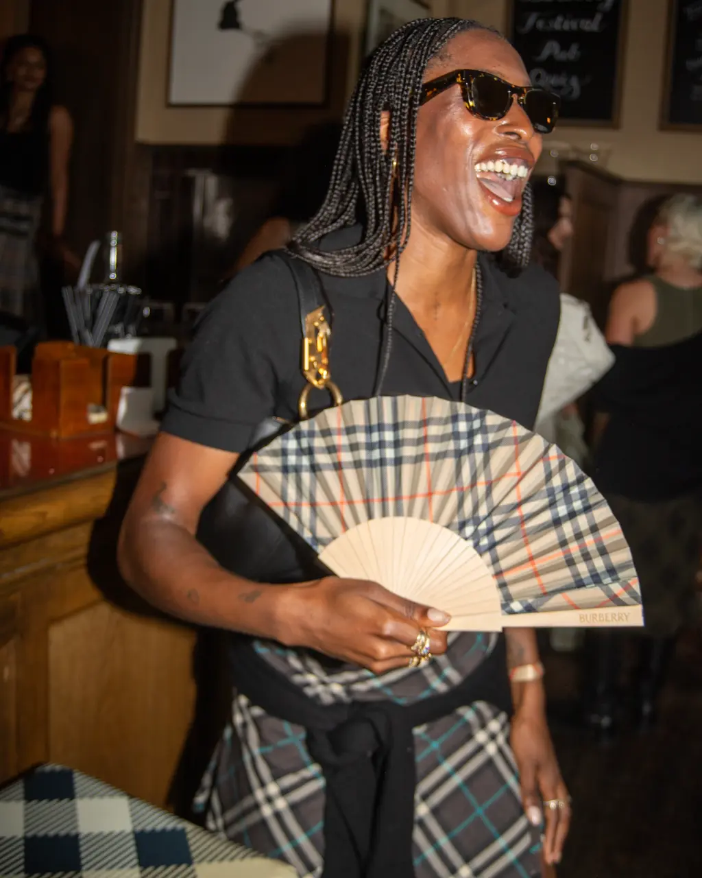 The Burberry Festival Pub Quiz wasn’t for the faint of heart. The smoking area was overflowing with A‑listers waiting for the next round of cocktail sausages, pint-covered tables were packed, and UK garage thumpers were spun by Goldie. All the while, Burberry checks covered every inch of Notting Hill’s Walmer Castle pub. Frankly, there was nowhere else I’d rather have been on a sweltering night in London.