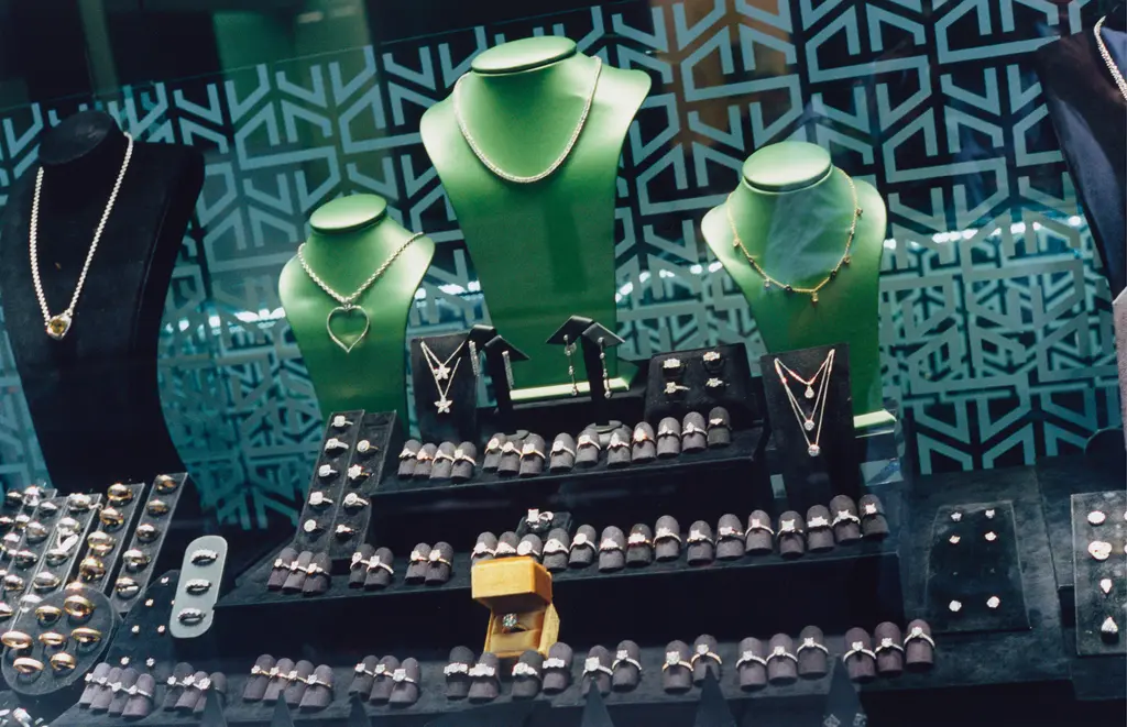 You can spot the new blood in Hatton Garden, and the buyers they chase, by the whoomph of their shopfront designs, which put their shabby old neighbours to shame. Frankie Mardell’s Trilogy is taut and restrained: a tunnel of black marble and brightly-lit watch bezels beckoning you toward the door and, just beyond that, to the foot of his long grey dealing desk. IceJewlz, another new addition two minutes up the street, is strewn from floor to ceiling with shimmering faux-bullion bricks. Instead of watches in the window, they have a gold-horned ram with diamonds for eyes, a giant necklace hung over a vista of Stonehenge and a purple mannequin leaning jauntily into the wall like a holiday photobomber.
