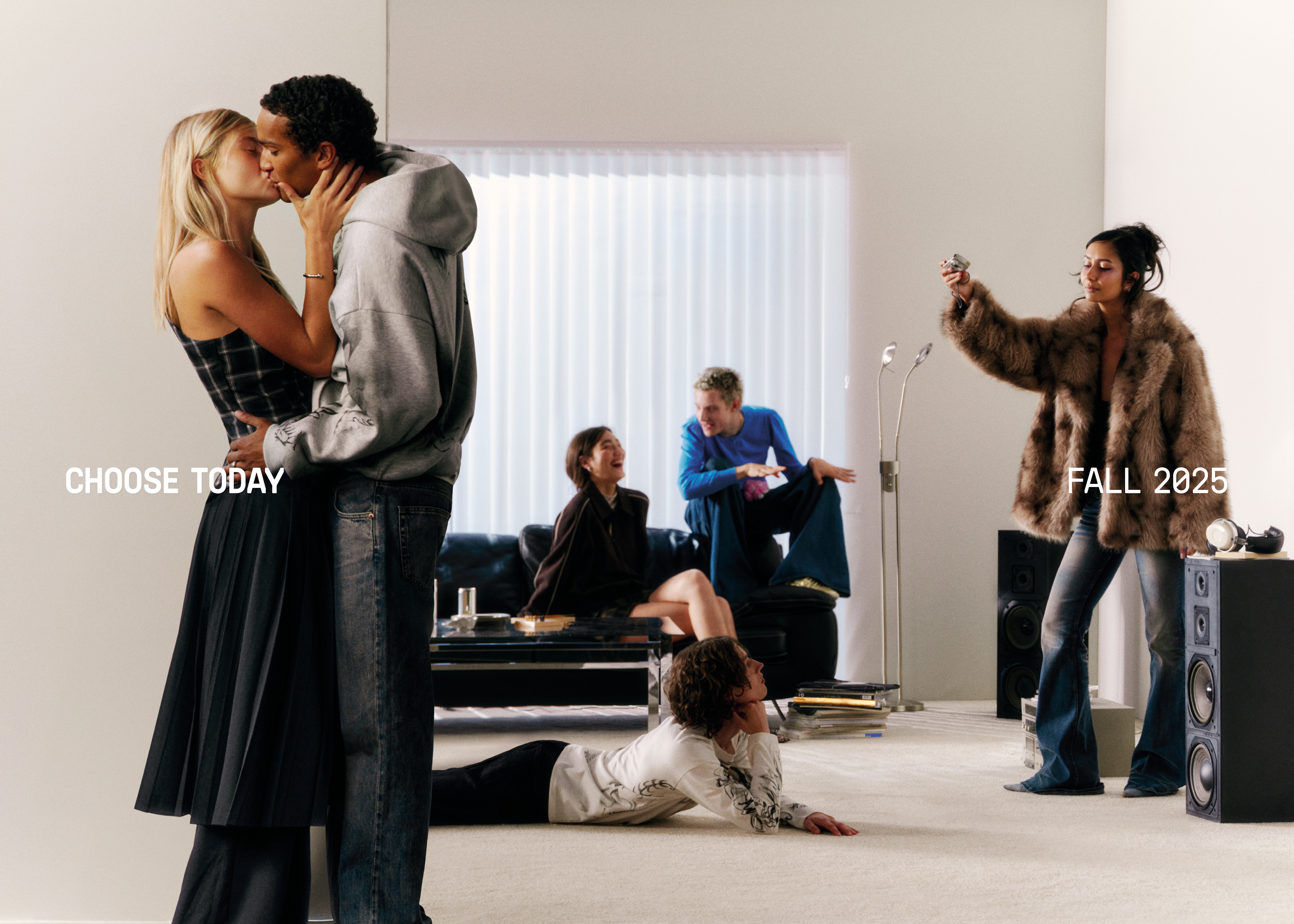 The campaign is no different. Scenes showcase models in uber-chic ’fits styled from the new collection living life on their terms. Choose to serve while holding a pizza. Choose to kiss at a house party. Choose to cause chaos at the office. Choose to wrestle your bros in a totally non-homoerotic way.