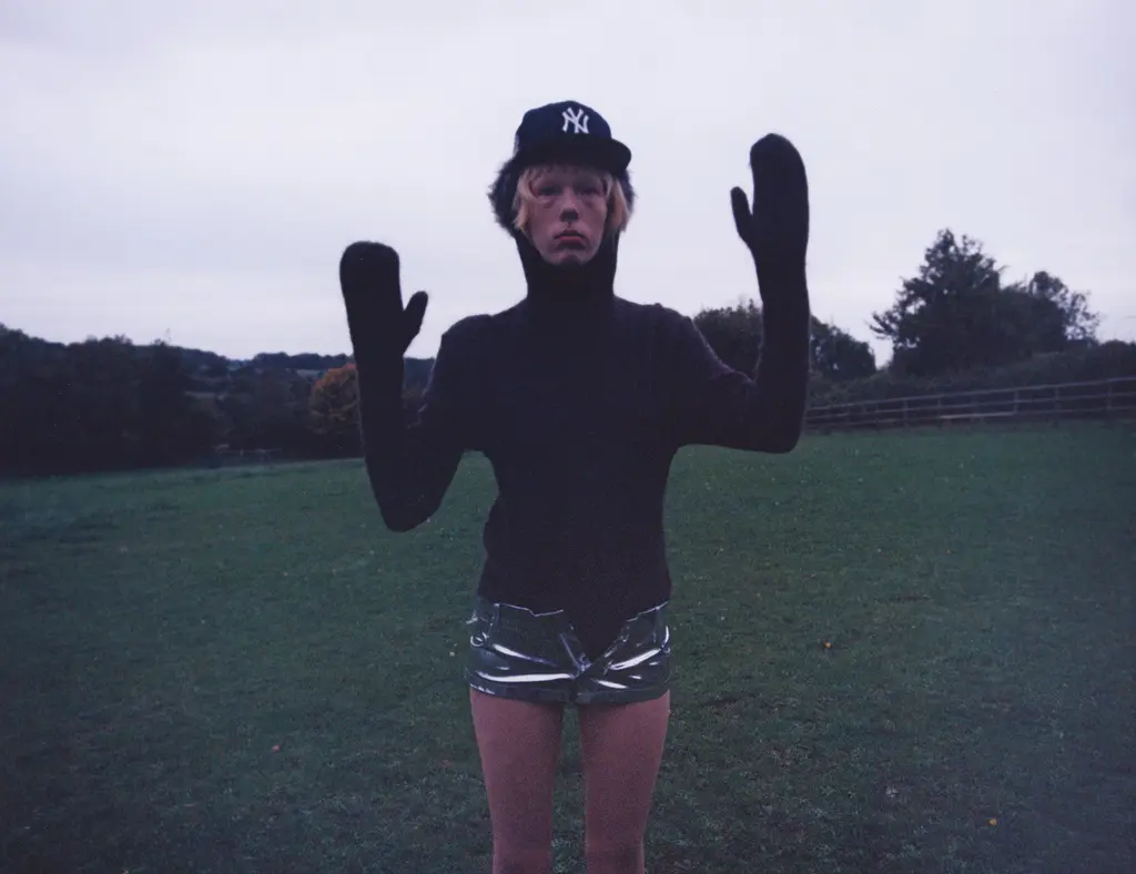Henri wears top HODAKOVA, leggings STEFAN COOKE, shoes archive courtesy of COSTUME STUDIO and hat ASHLEY WILLIAMS