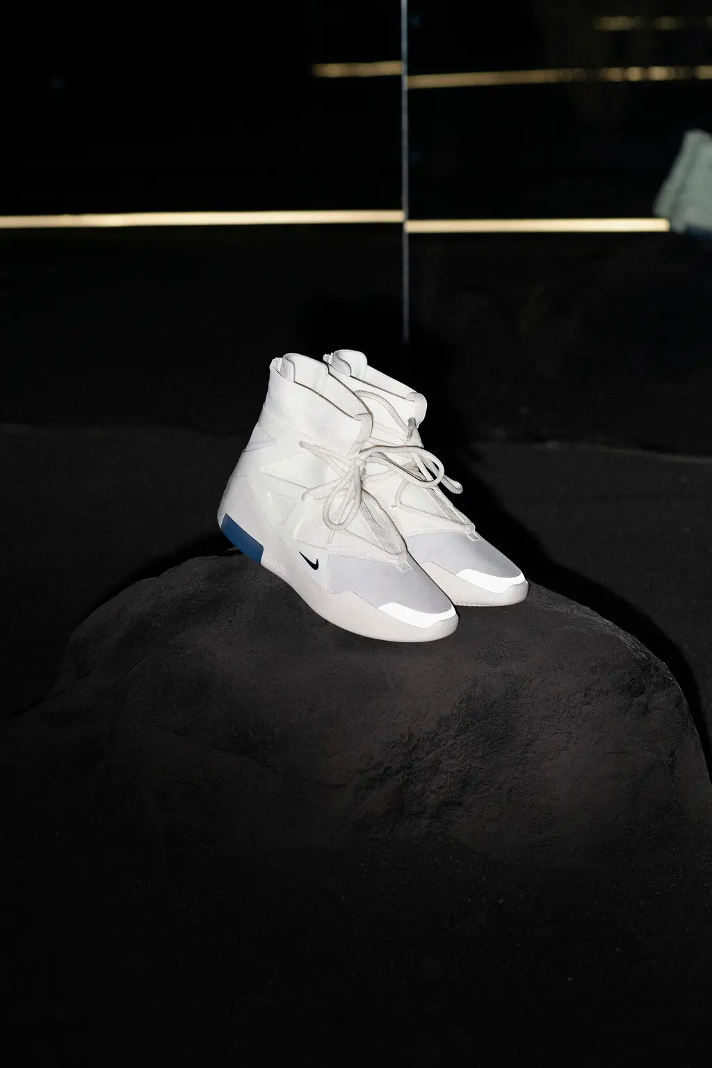 At the back of the room a doorway leads through to a more conventional retail space, bringing together pieces from the main Fear of God line, Lorenzo’s Essentials collection and his collaborations with Nike. Lorenzo, whose father Jerry Manuel was a major league baseball manager, is clearly inspired by sportswear but his clothes also show the influence of alternative style icons like Kurt Cobain. “There’s everything that went into influencing me as a kid growing up in this country,” he says. “It’s me being a college athlete but also the music that I listened to, the different subcultures from grunge to hip hop and rock. A kid that’s influenced by sports and grunge wants to express all of it. He doesn’t want to be boxed by one of those things. I think a lot of Fear of God is my point of view. It’s me trying to find how I can be a part of all the different subcultures that I’m a part of and still be myself. After years of trying to find that language it’s now coming out through clothing.”