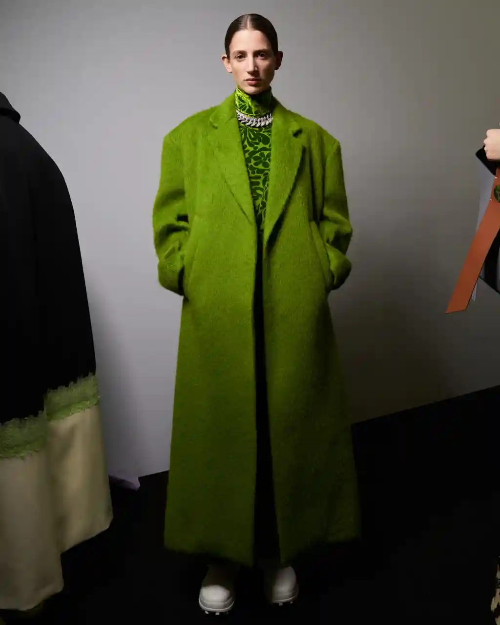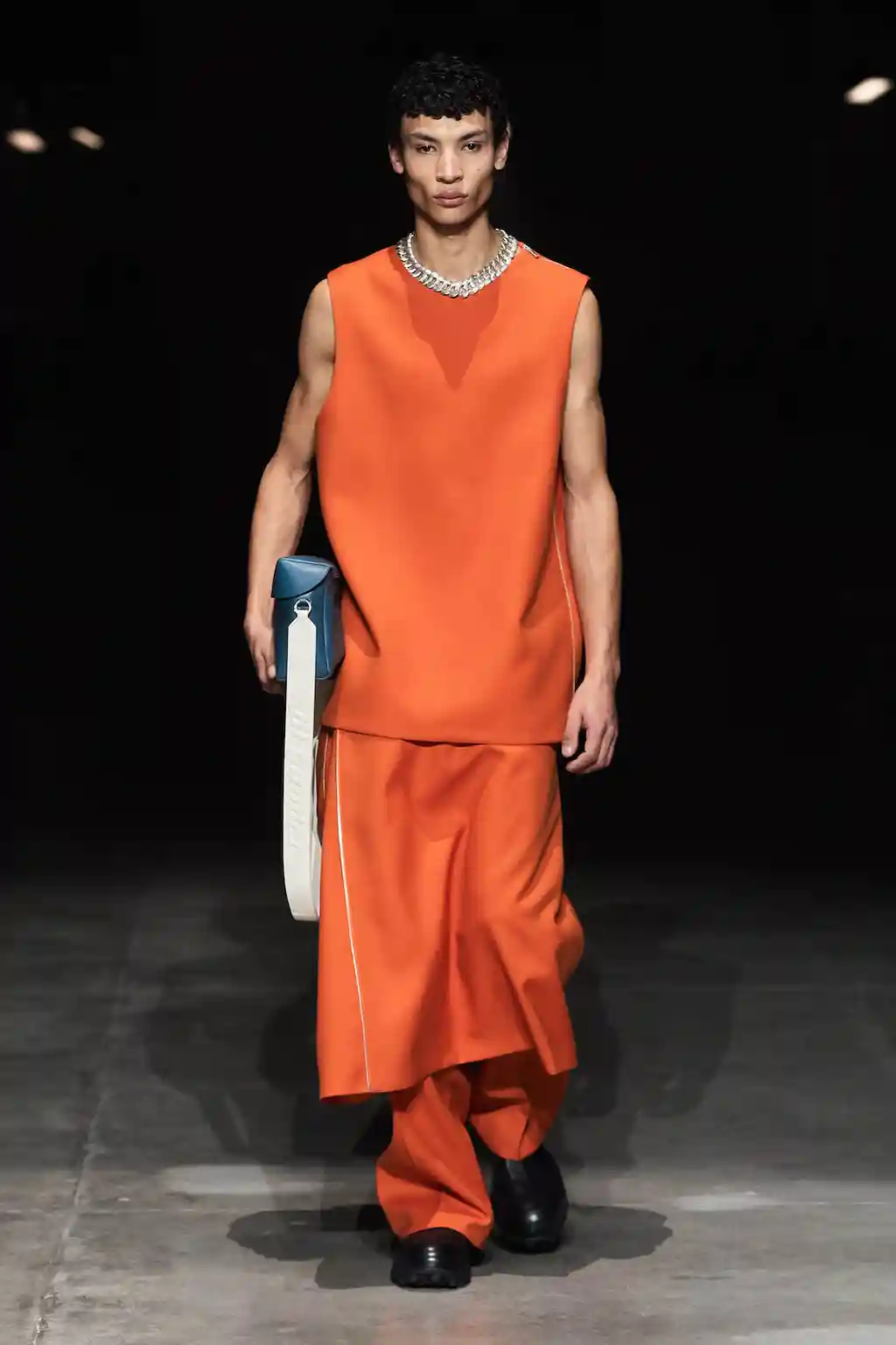 It’s a reference point many of their fellow designers have explored over the past few seasons: acid house, smutty slogan T‑shirts, and even skirts over jeans have made runway appearances. More than that, though, the ’90s have long been a curbside mainstay: Gen Z can’t get enough of pop colours, concert merchandise and baggy jeans.