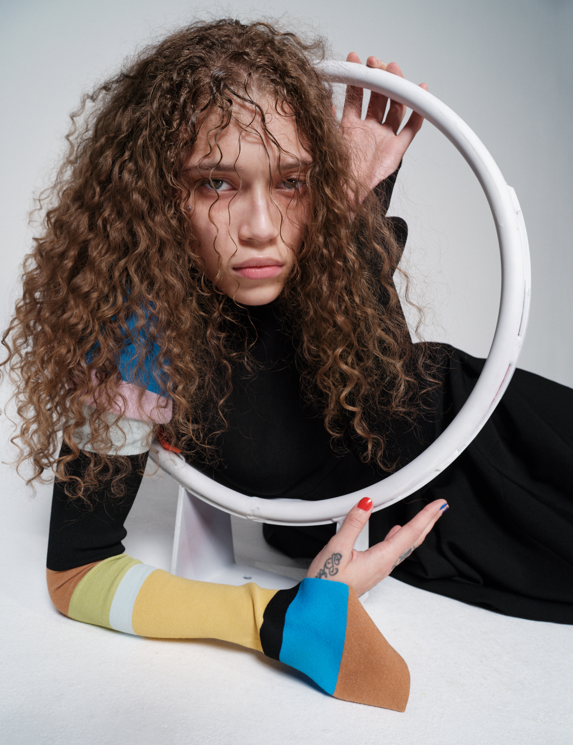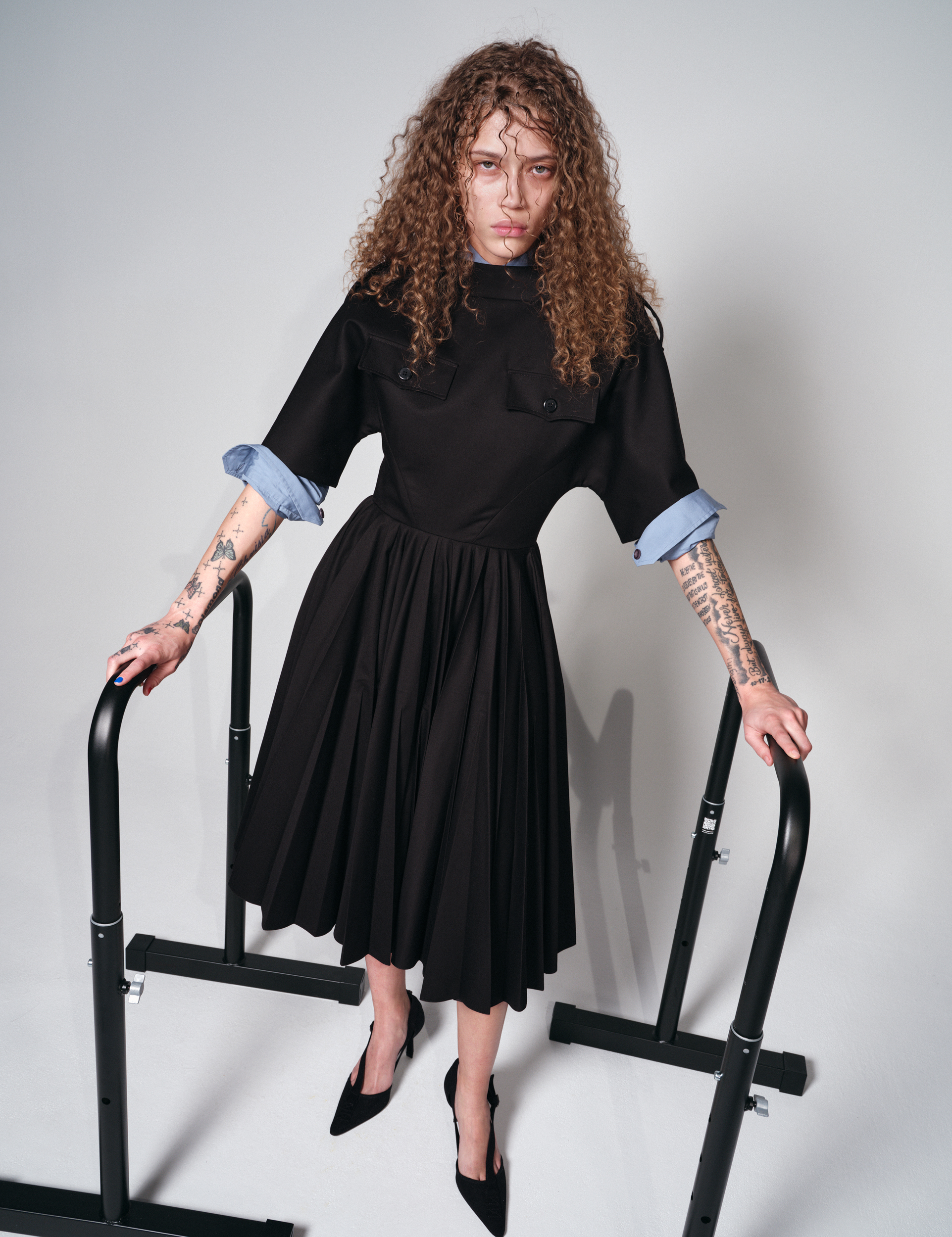 Nathalie wears top, high socks and shoes ALAÏA, gloves stylist’s own