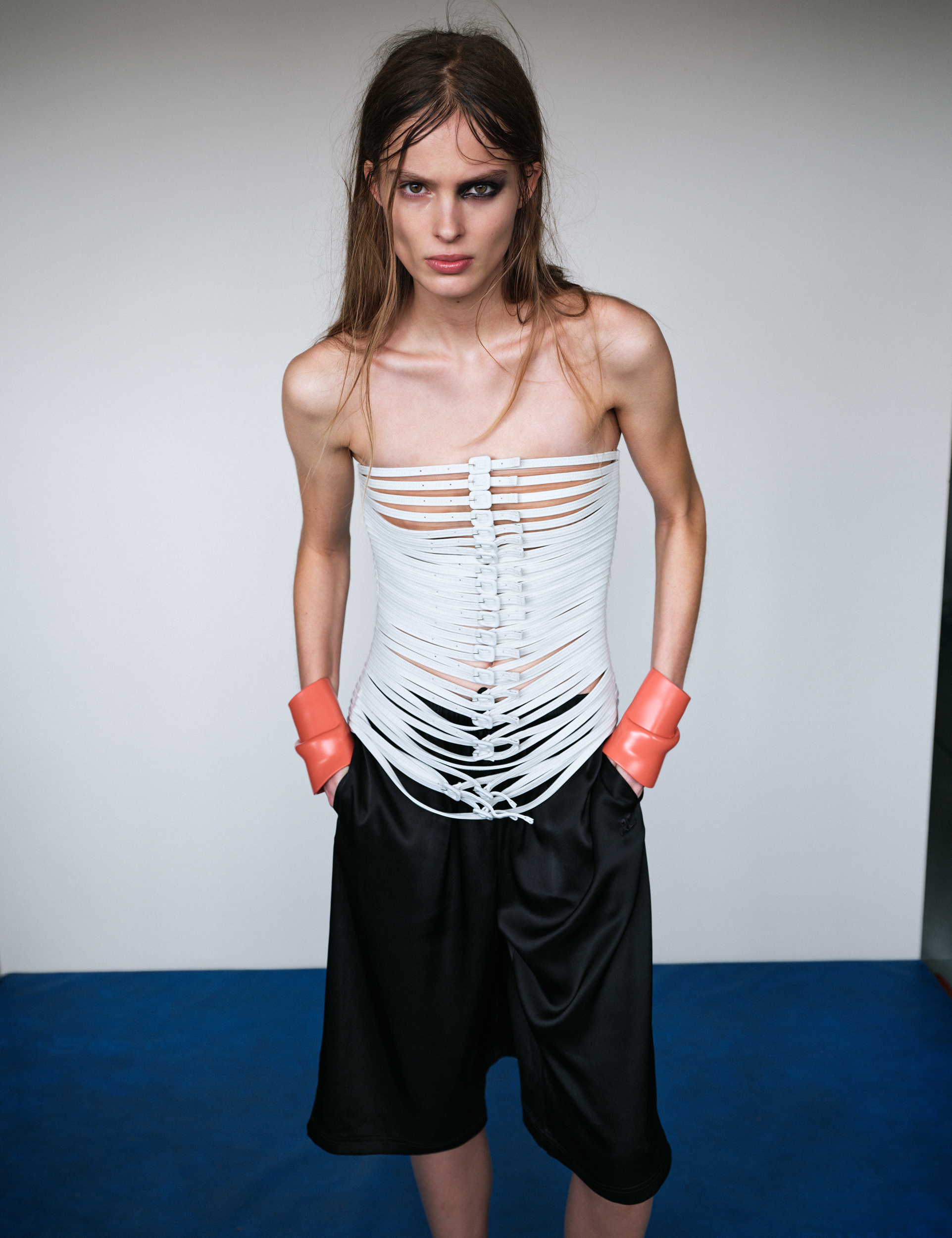 Olivia wears top, shorts and bracelets COURRÈGES