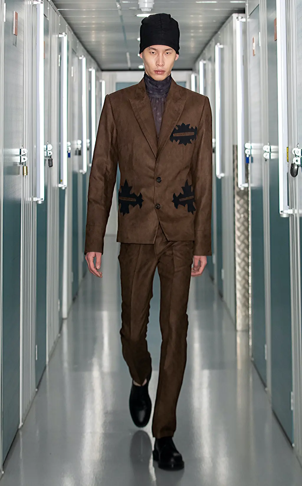 Marchetto made references to his hometown of Tyrol, Italy, by using cut out details on jacket pockets inspired by his dad’s best traditional Sunday suit. Previously, using this as a reference for his designs never came naturally to him, but this time leaning into his heritage meant reconnecting with home – a place Marchetto hasn’t been able to visit since the pandemic broke out early last year.