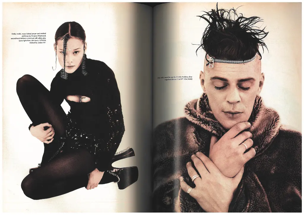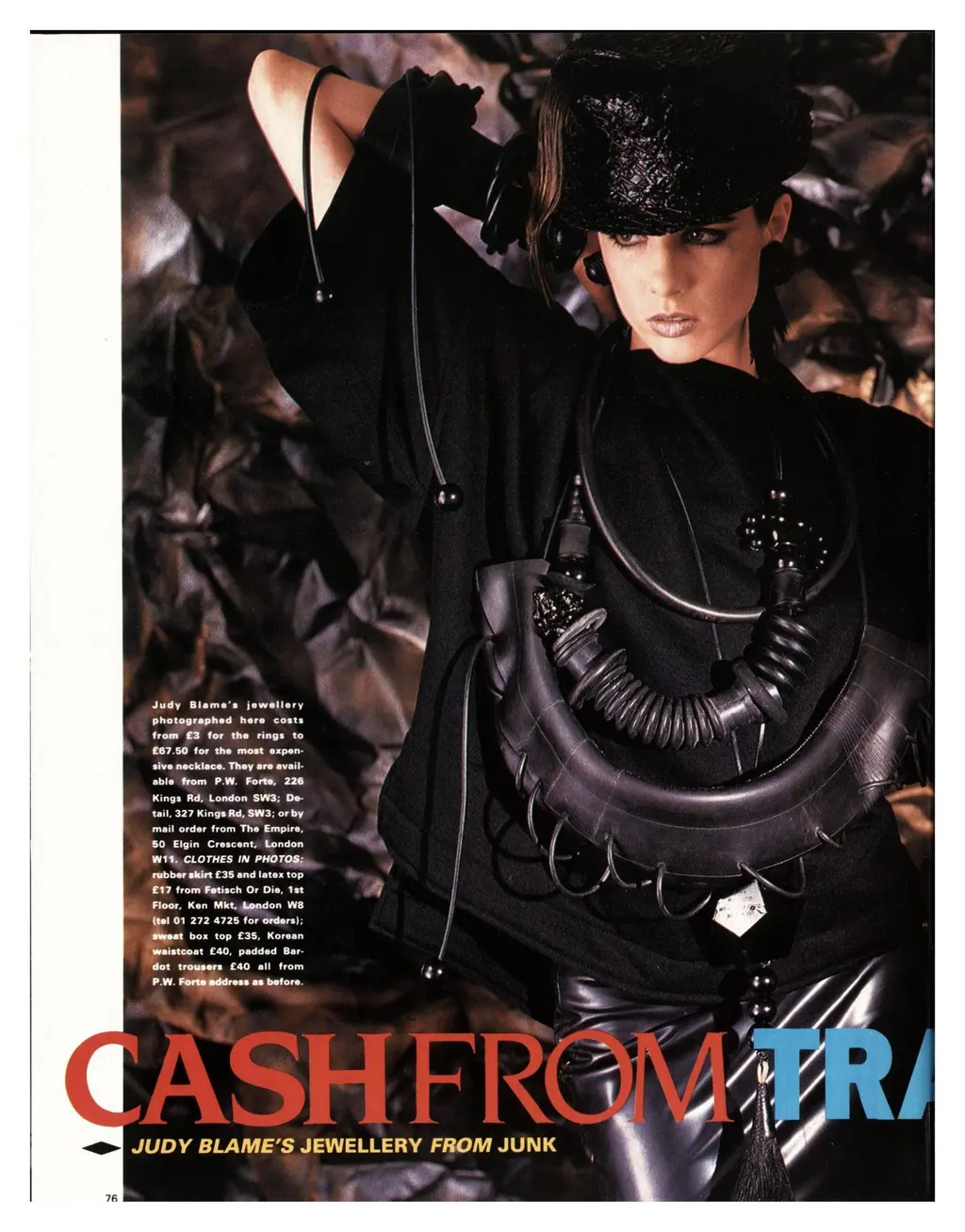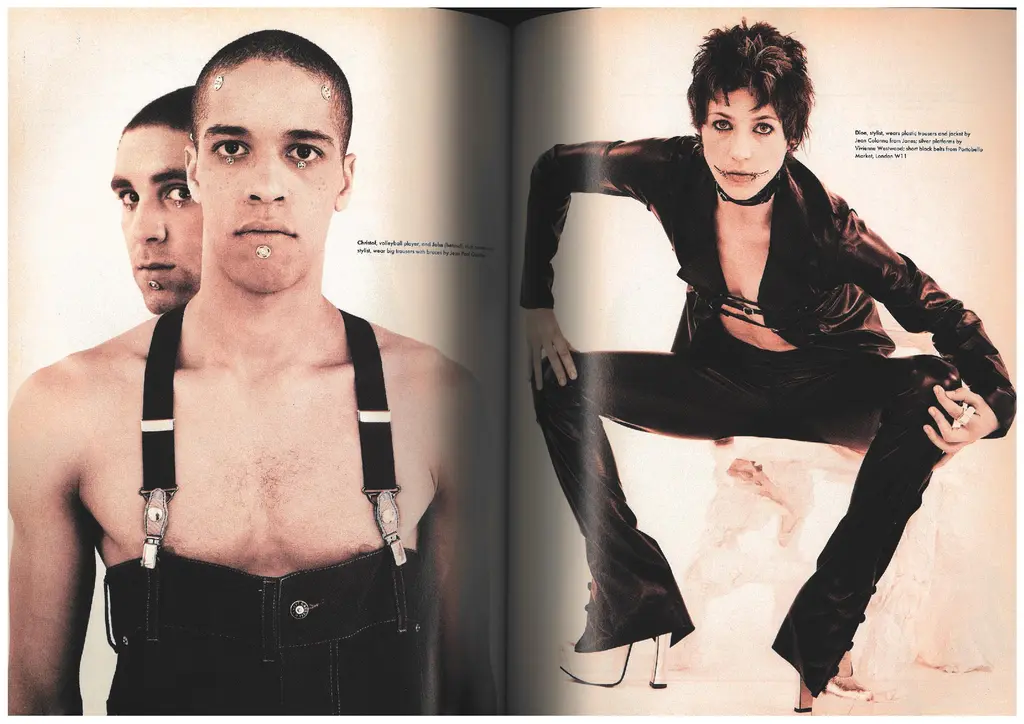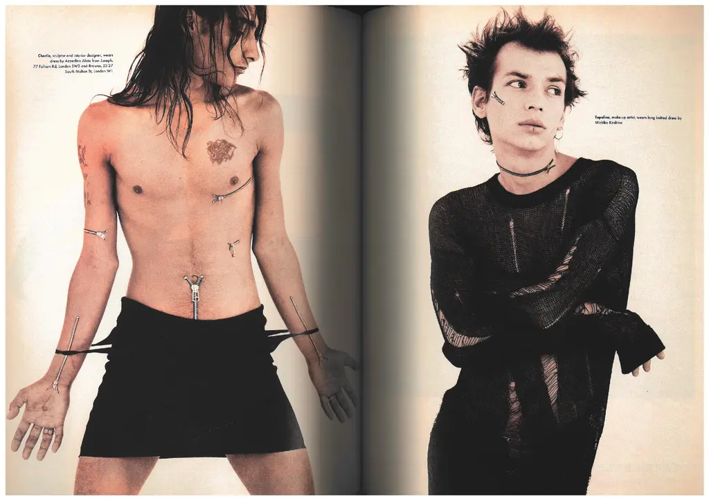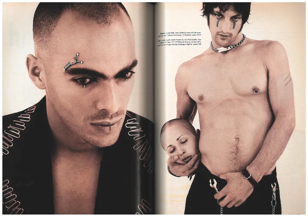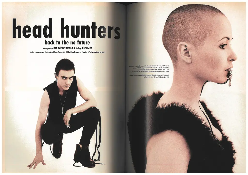 Blame’s no-boundary approach to fashion for The Face birthed many firsts and inspired generations to come. From a Jean-Baptiste Mondino-lensed story that saw a model carry his own head in the crook of his arm (see: Gucci’s AW18 cyborgs) and another with his face “unzipped, to a story titled Father Thames, featuring looks fabricated from pieces solely scavenged from the silted river bed of the Thames, Blame’s work was way ahead of its time.