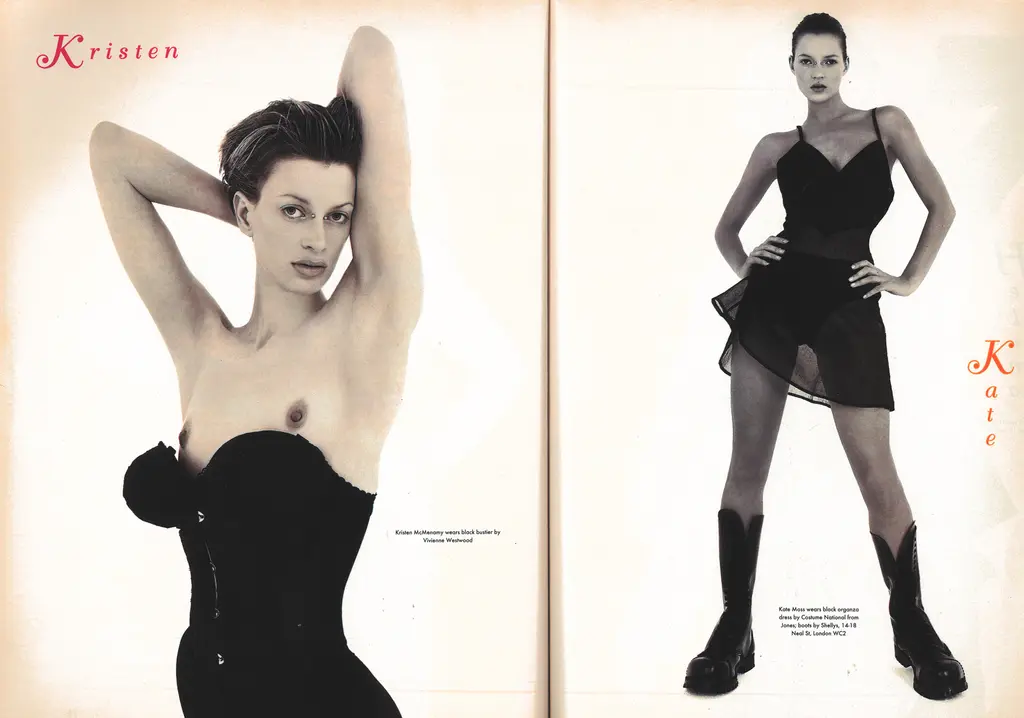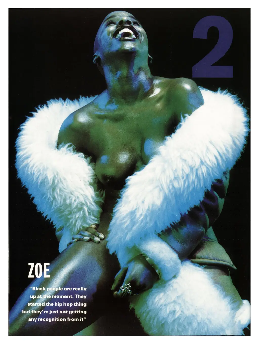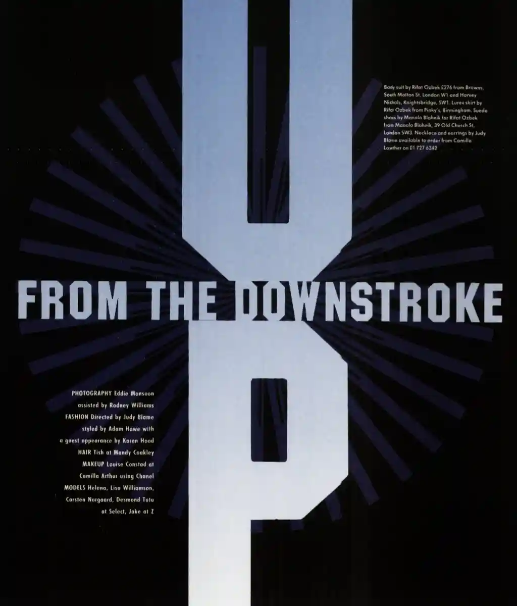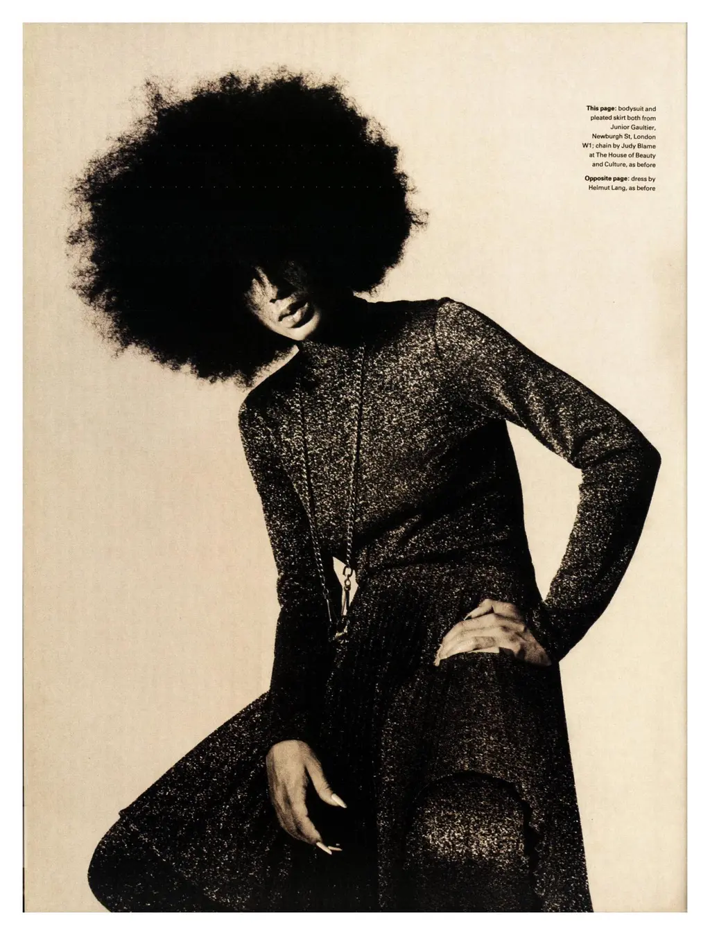 Blame’s no-boundary approach to fashion for The Face birthed many firsts and inspired generations to come. From a Jean-Baptiste Mondino-lensed story that saw a model carry his own head in the crook of his arm (see: Gucci’s AW18 cyborgs) and another with his face “unzipped, to a story titled Father Thames, featuring looks fabricated from pieces solely scavenged from the silted river bed of the Thames, Blame’s work was way ahead of its time.
