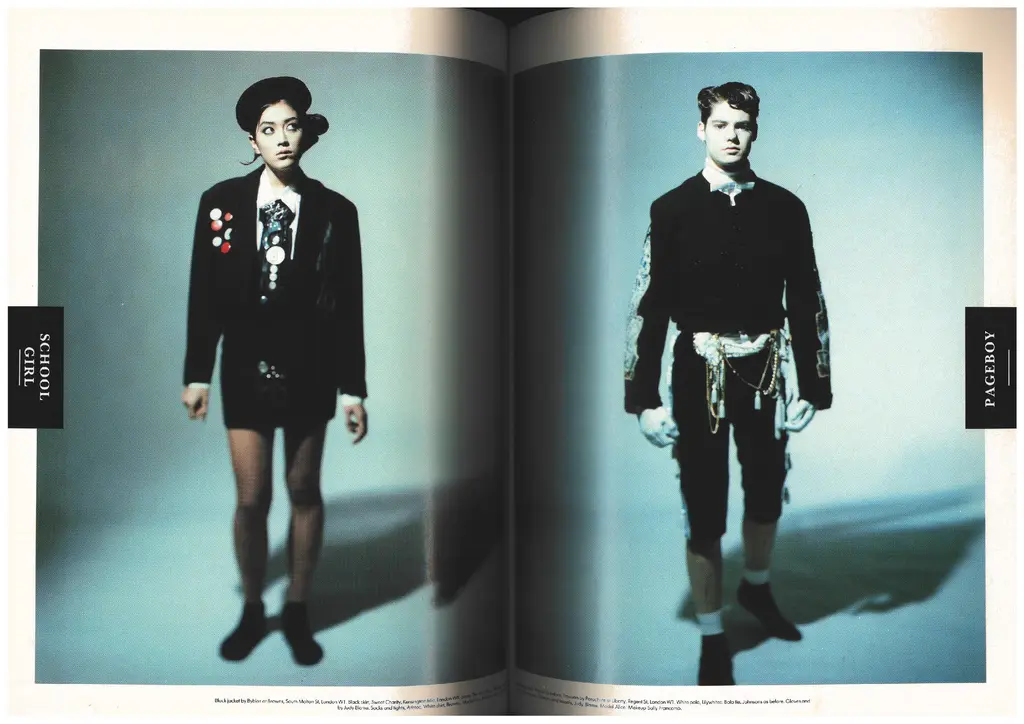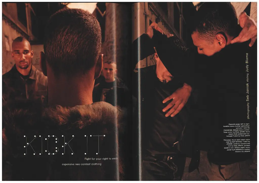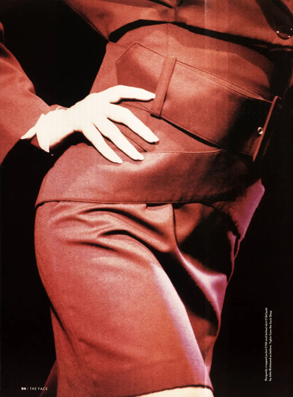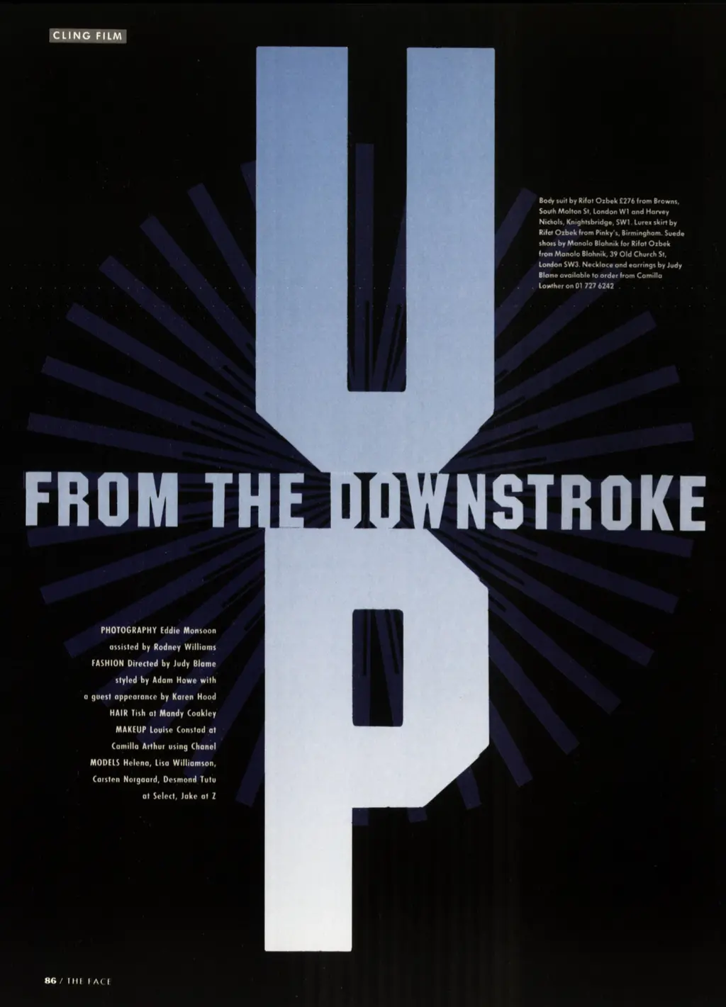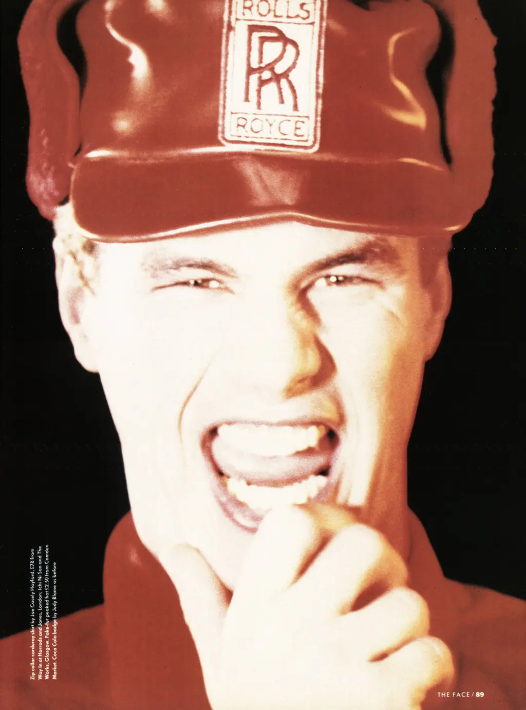 Two-tone bombers were worn with long leather and velveteen gloves (another Blame-ism) that ushered in a new, disruptive masculinity akin to the sense of irreverence pioneered by Blame in the ’80s within the pages of The Face. Scroll through a timeline of Blame’s revolutionary work for The Face below.
