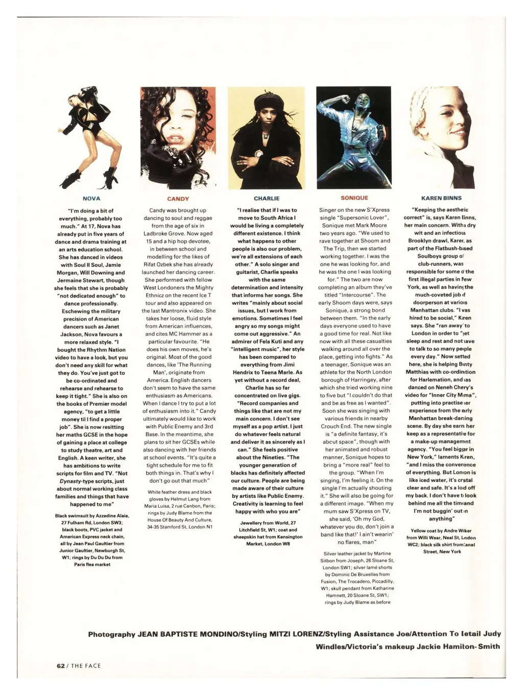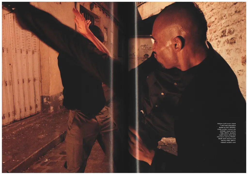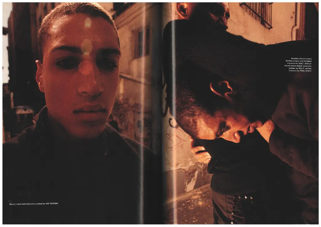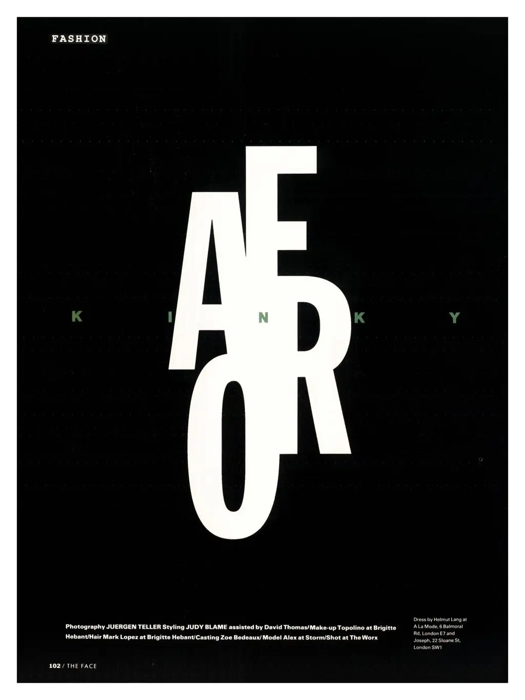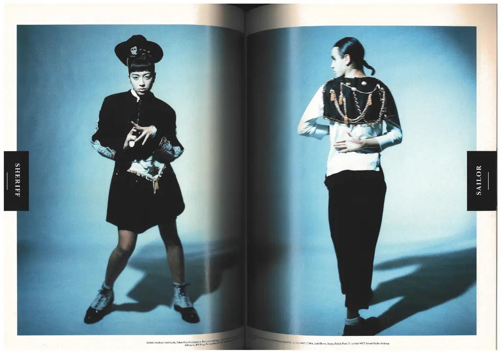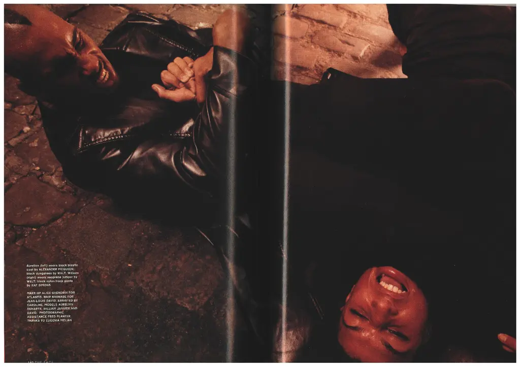 Two-tone bombers were worn with long leather and velveteen gloves (another Blame-ism) that ushered in a new, disruptive masculinity akin to the sense of irreverence pioneered by Blame in the ’80s within the pages of The Face. Scroll through a timeline of Blame’s revolutionary work for The Face below.