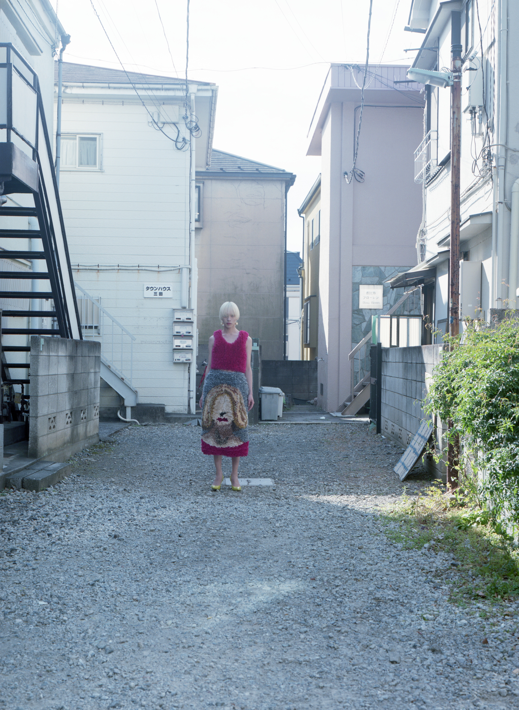Taito wears top, skirt, earrings and shoes UNDERCOVER