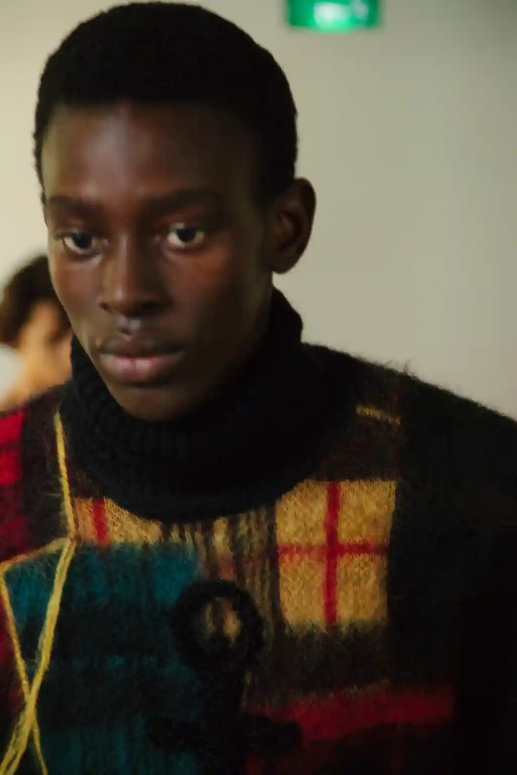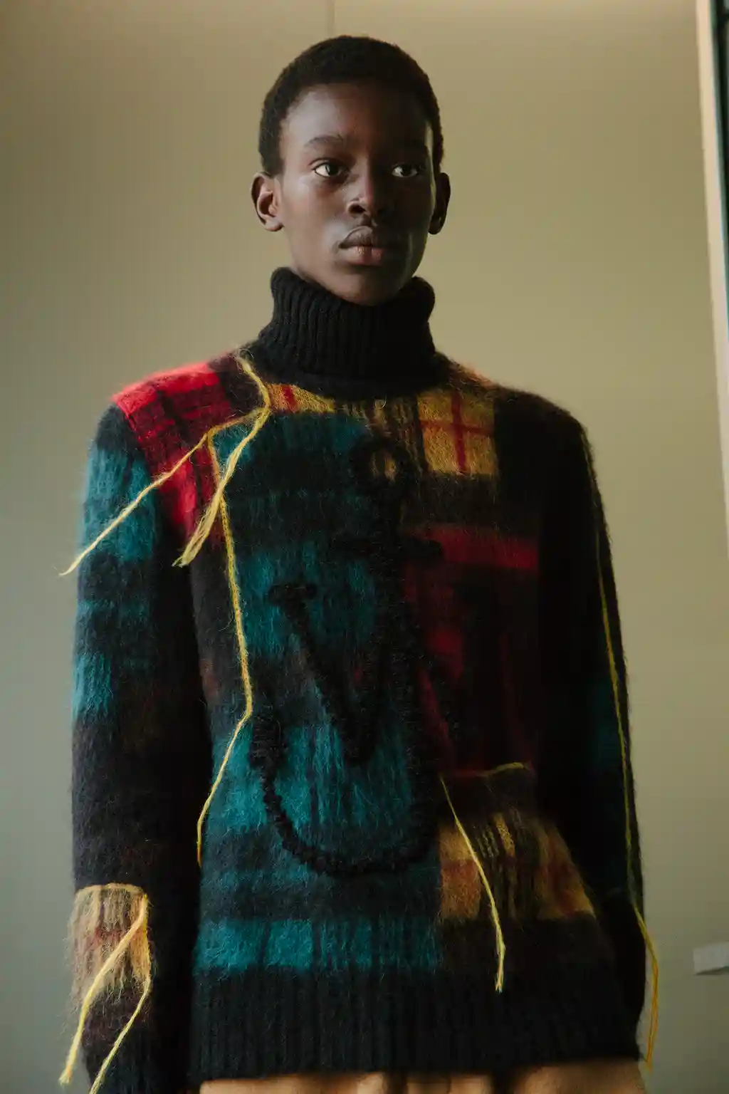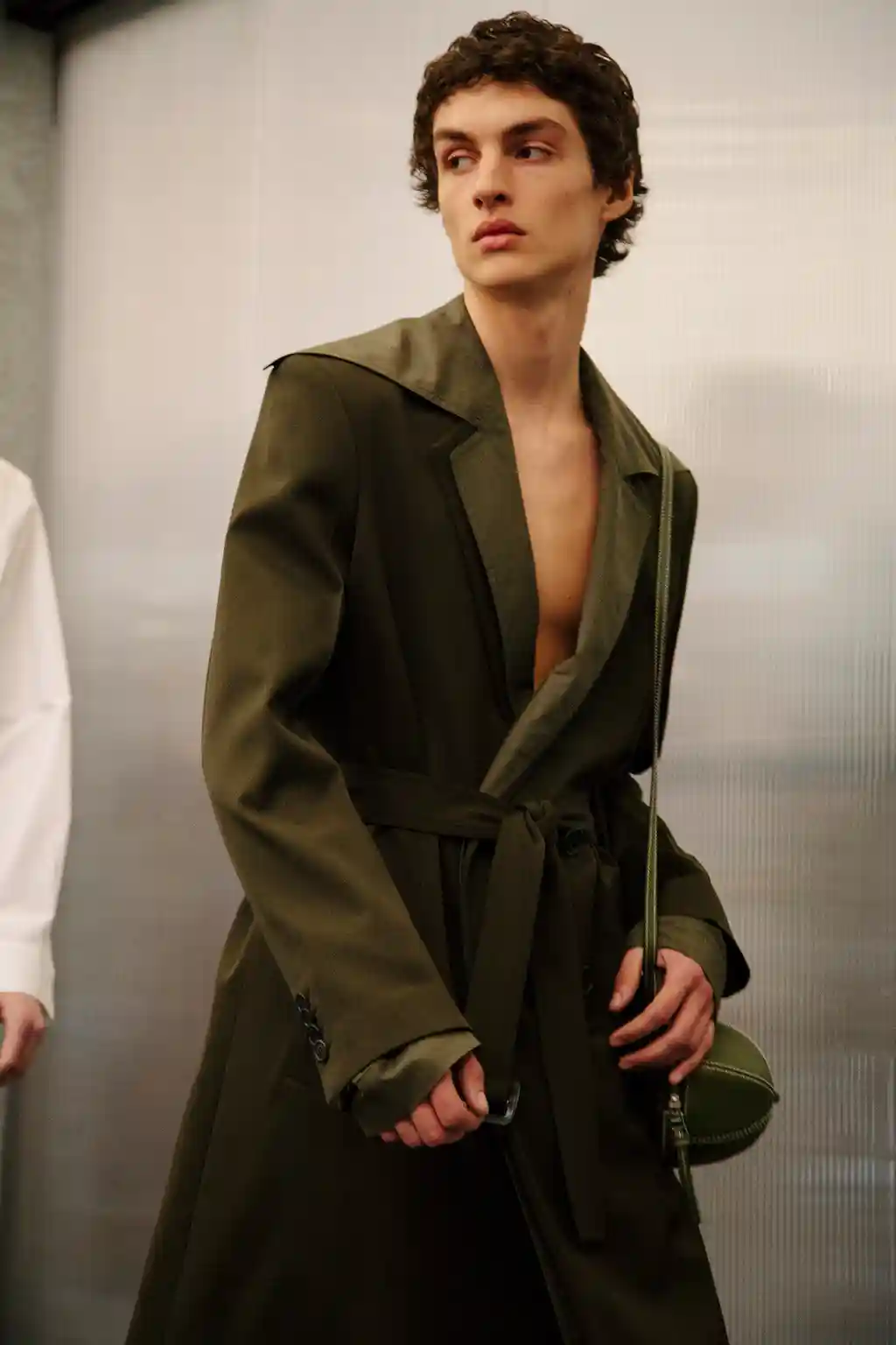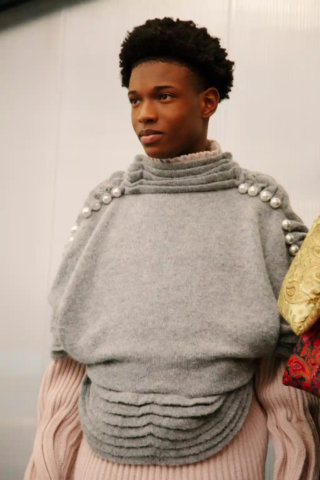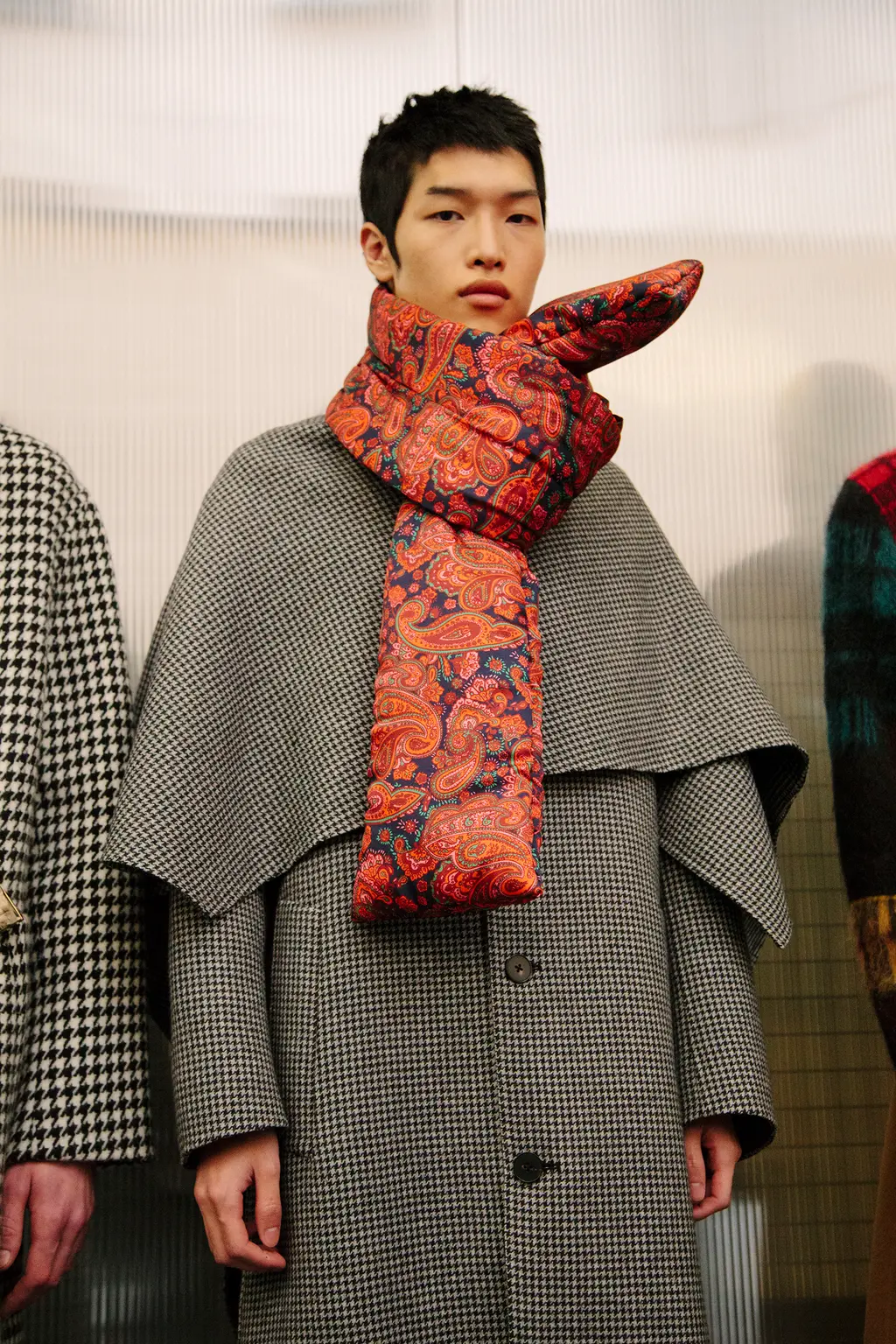 There was a heavy sense of classicism and romance, albeit one that retained a foot very much in the underground. The heavily featured paisley, for instance – which was once such an integral part of the JW Anderson brand – returned in abstraction; blown up and purposefully worn out, like a photocopy or a graffiti artist’s stencil. Heavy gold chains featured prominently – not least in the rather bling black loafers – and there was, perhaps, a nod to the most literal reading of the burning house in the sustainability of the silhouettes.