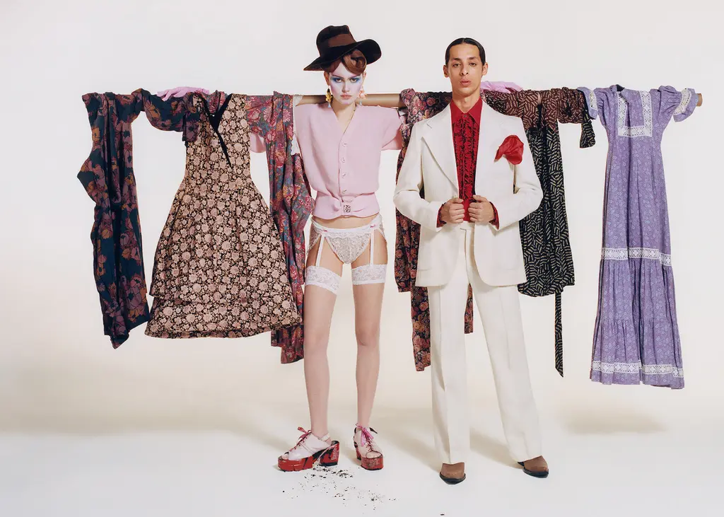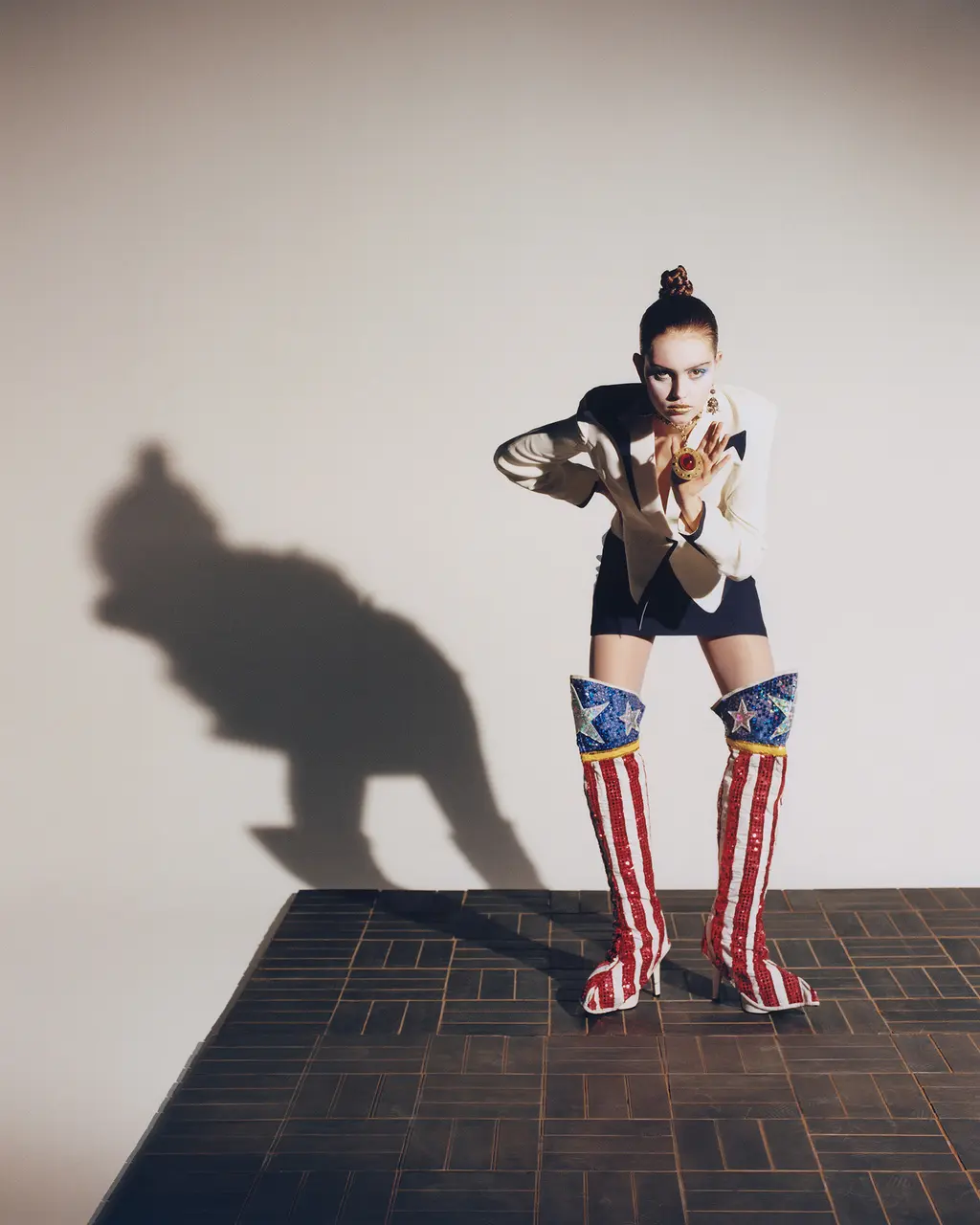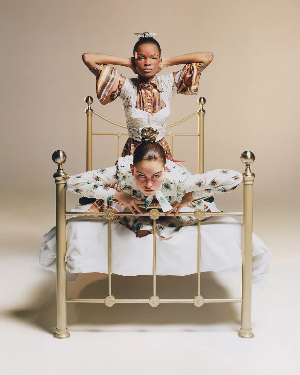 Hair Soichi Inagaki at Art Partner, Makeup Daniel Sallstrom at M+A using Pat McGrath Labs, Set designer Amy Stickland at Webber, Production LG Studio, Production team Carly Nijini, Casting director Lisa Dymph Megens at Industry Art, Models Grace Guane at Next, Caroline Reuter at Premier, Adam and Betty. Photography assistants Ed Aked and Barney Curren, Styling assistance Charlie Murray, Set design assistance Harry Stayt, Post production ink. With special thanks to Emily Grant, Crazy Clothes Connection and Alva East Studios.