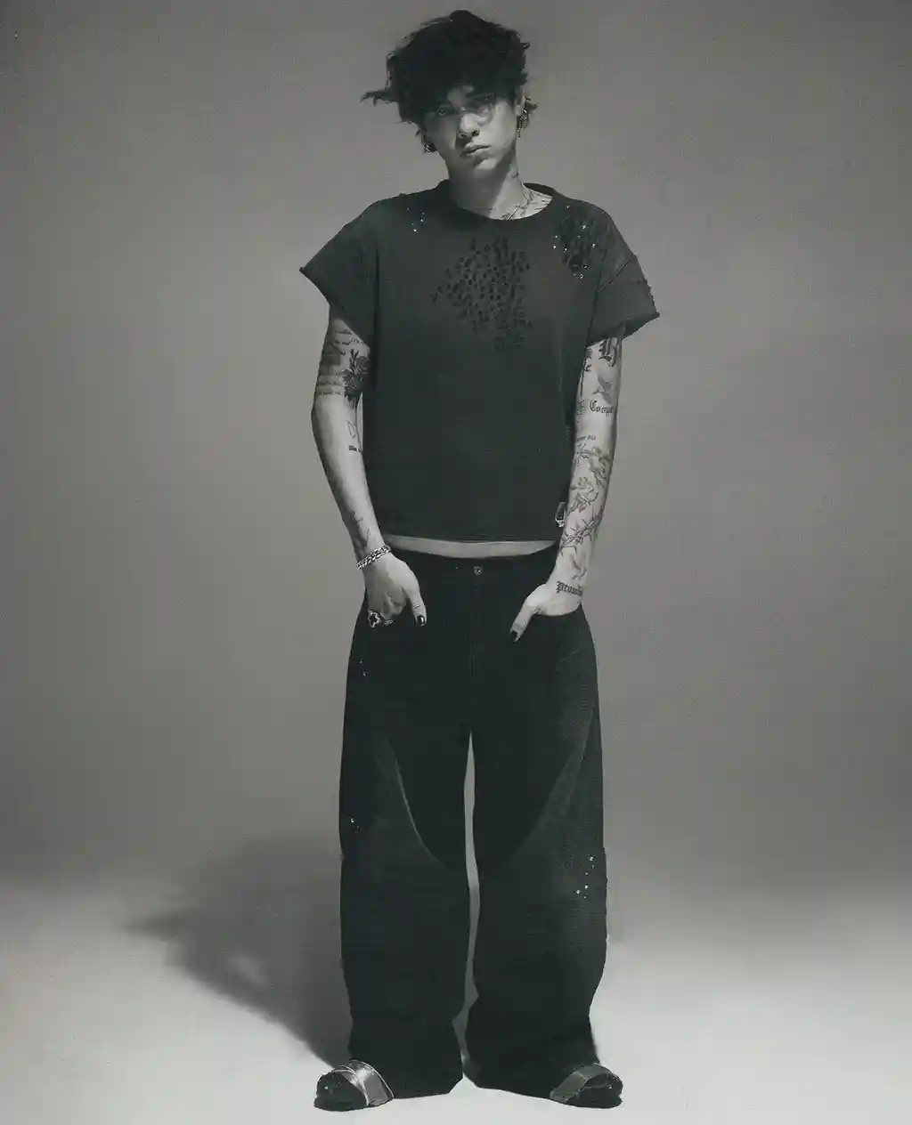 In fact, the label is one close to his own early fashion experiments. “Honestly, I grew up on Cheap Monday – the spray-on skinny jeans bleached to death,” he says. “I wanted them to be as tight as possible. That DIY punk energy is what inspires me.”