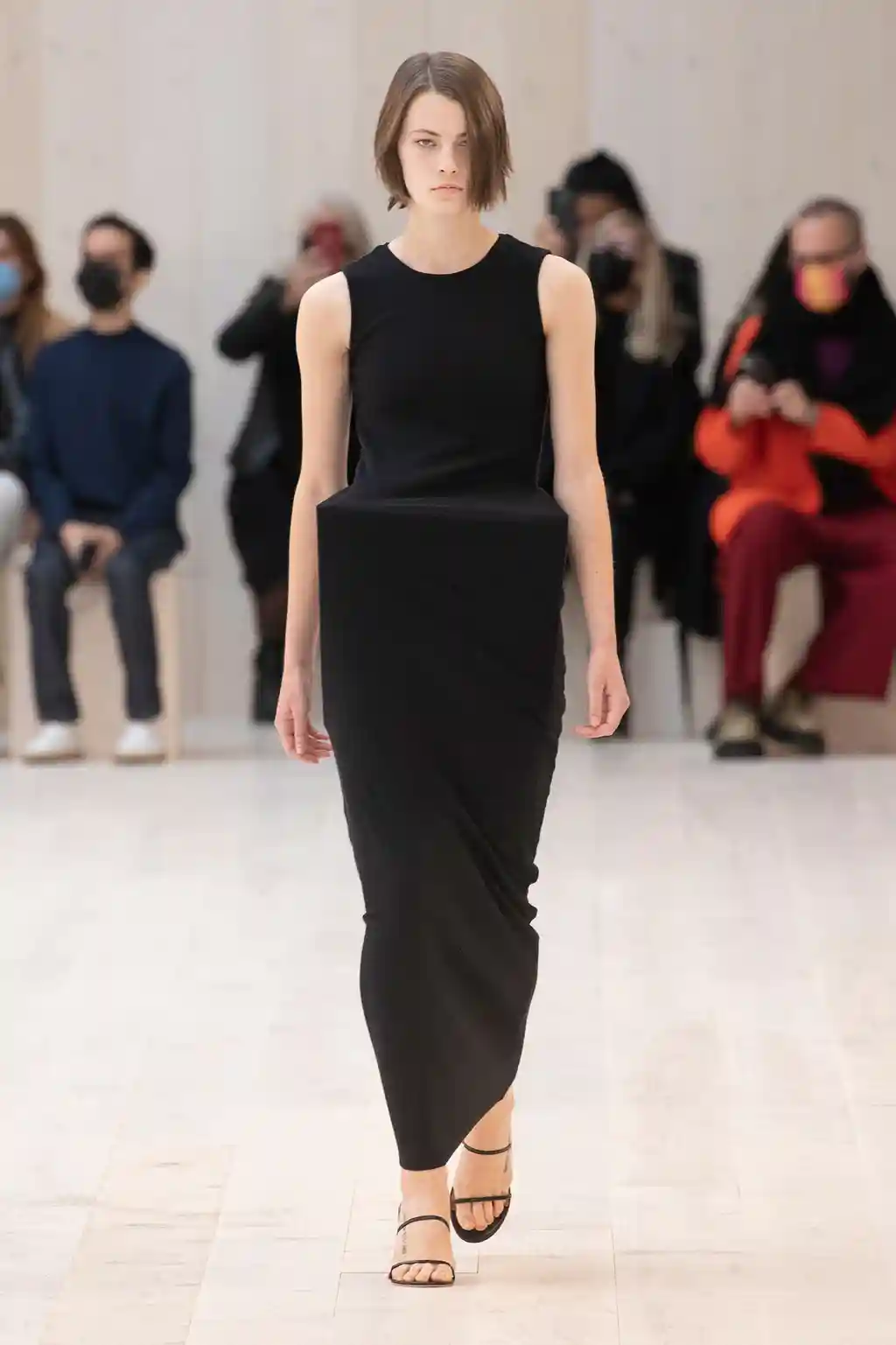 Disturbing the clean lines of Loewe’s past, Anderson twisted and contorted the body. In a dramatic opening, as the first model walked, literally, out of the floor (through a hidden staircase, chill out), the tone was set, a long black dress protruding in the mid-section. Unexpected and a little weird, it was soon followed by more lumps and bumps coming out of the hips, shoulders and legs.