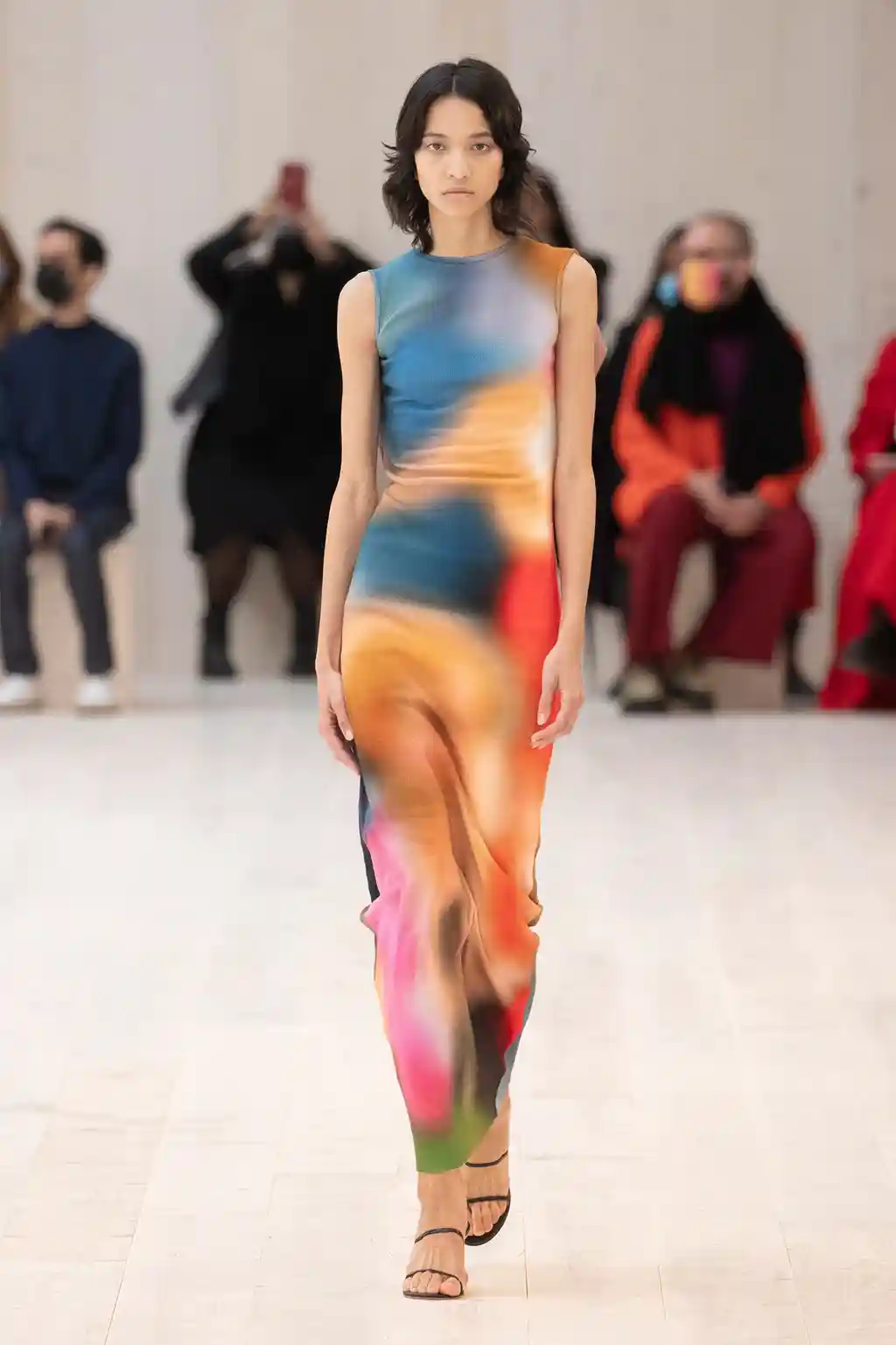 We’re not quite sure what a bar of soap, an egg, birthday candles and red nail varnish have in common, but opening Loewe’s SS22 collection today, an old TV showed a video montage of, well, that. And a car racing through a bright city, water flushing down a sink and a skunk running down a wall. It was “neurotic, psychedelic, completely hysterical,” according to creative director Jonathan Anderson.