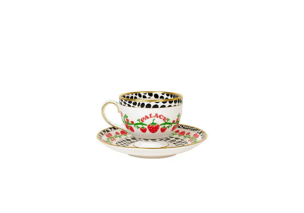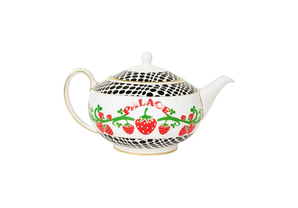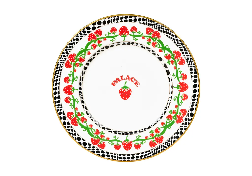 The latest in the neverending conveyor belt of Palace collabs: a collection with crockery legends Wedgewood. Including a teapot, plate, cup and saucer, all made from Wedgewood’s fine bone china, the unlikely link-up features a colourful strawberry graphic pattern from Palace’s archive that takes its cues from Wedgwood’s famous wild strawberry and vine pattern.