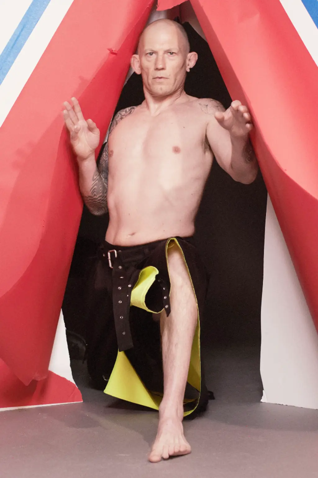 And it’s a message of hope, one that Anderson takes from the absence of intimacy and human touch over the past year. The designer looked at the work of New York-based artist Florian Kewer, whose paintings capture segments of dancefloor movement through a personal narrative. They’re freeing, vulnerable and chaotic, much like Loewe’s sexual appetite this season.