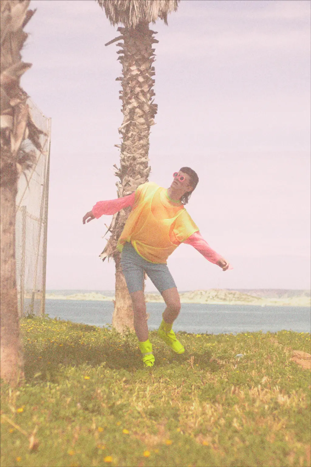 If colour therapy defined Loewe’s blocked-out AW21 womenswear collection in March – clothes to get inordinately high on – this season, creative director Jonathan Anderson continues on his path to feel good. For the Spanish house’s SS22 men’s collection, though, Anderson goes all-out escapism: an abstract, effervescent ode to the dancefloor in saturated rave shades and BDSM cuts found in darkened corridors of Berlin’s gay bars.
