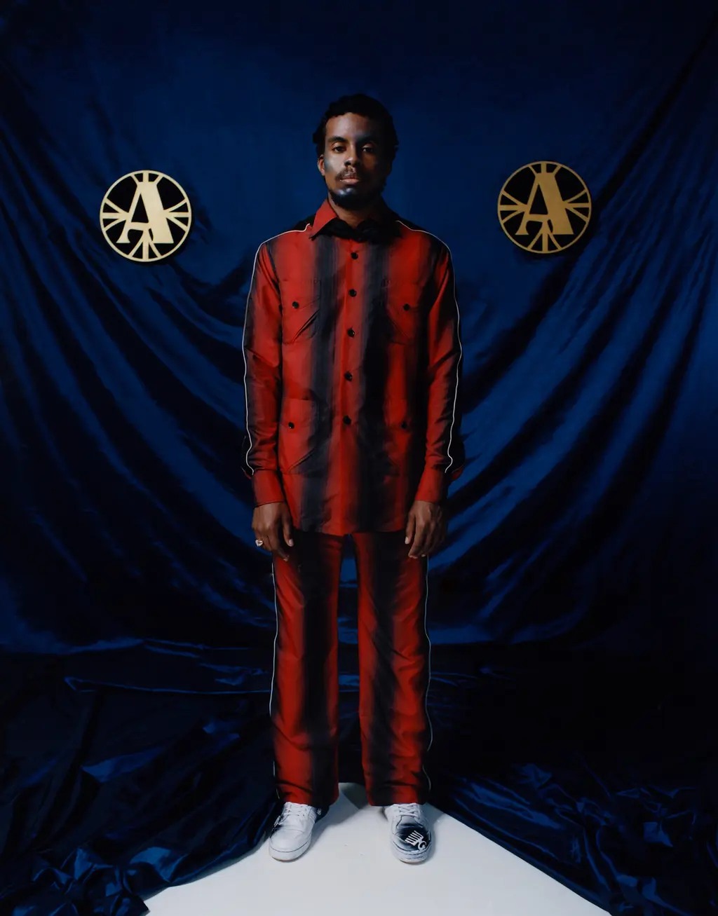 Ahluwalia’s intrinsically sustainable DNA is present throughout. Heavy stripes and decadent prints are achieved using organic, non-toxic dyes stamped onto repurposed deadstock materials. She’s recently found a “top secret” supplier with Italian-quality deadstock fabrics leftover from factory runs, allowing the designer to offer garments made from one succinct material for the first time. “Sustainability underpins everything I do,” she assures. “It won’t be going away anytime soon.”