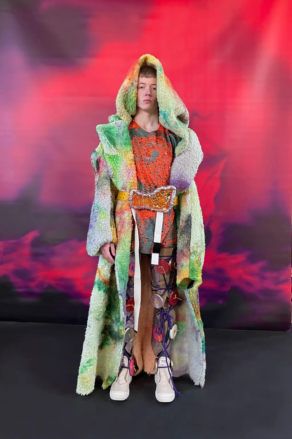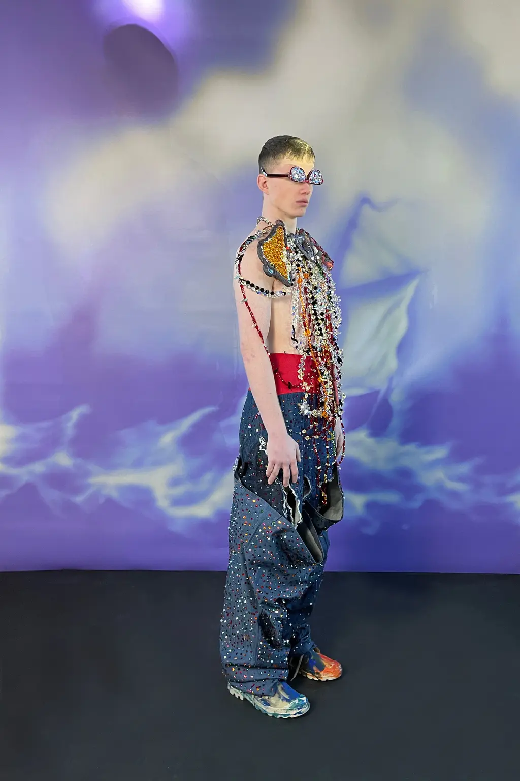 With models quite literally emerging from a cloud of dark into a not-so-distant light, this is Art School’s most conceptually-grounded collection so far. Now, Loweth is keen to shake (some) aspects of the club kid association they’ve carried since their very first show in 2019 – an intention for the title, Ascension, itself.