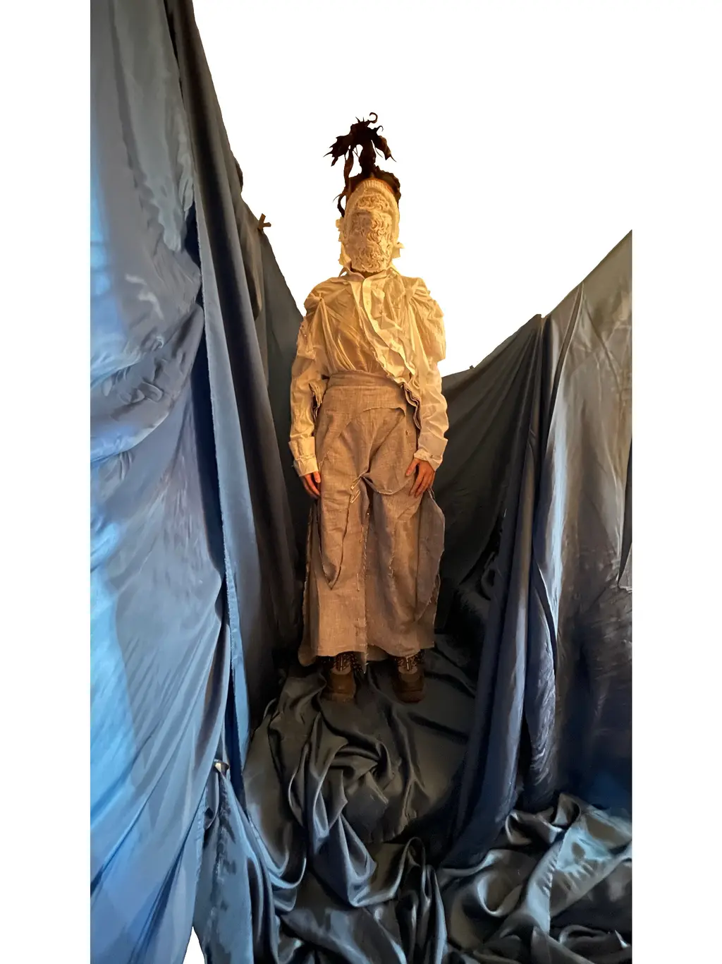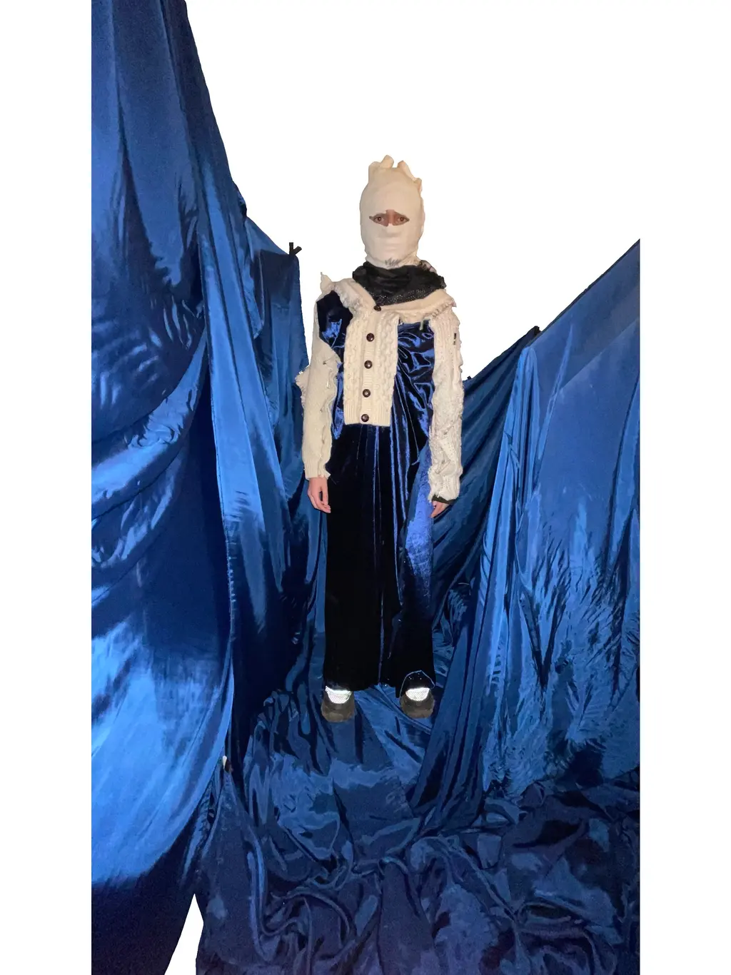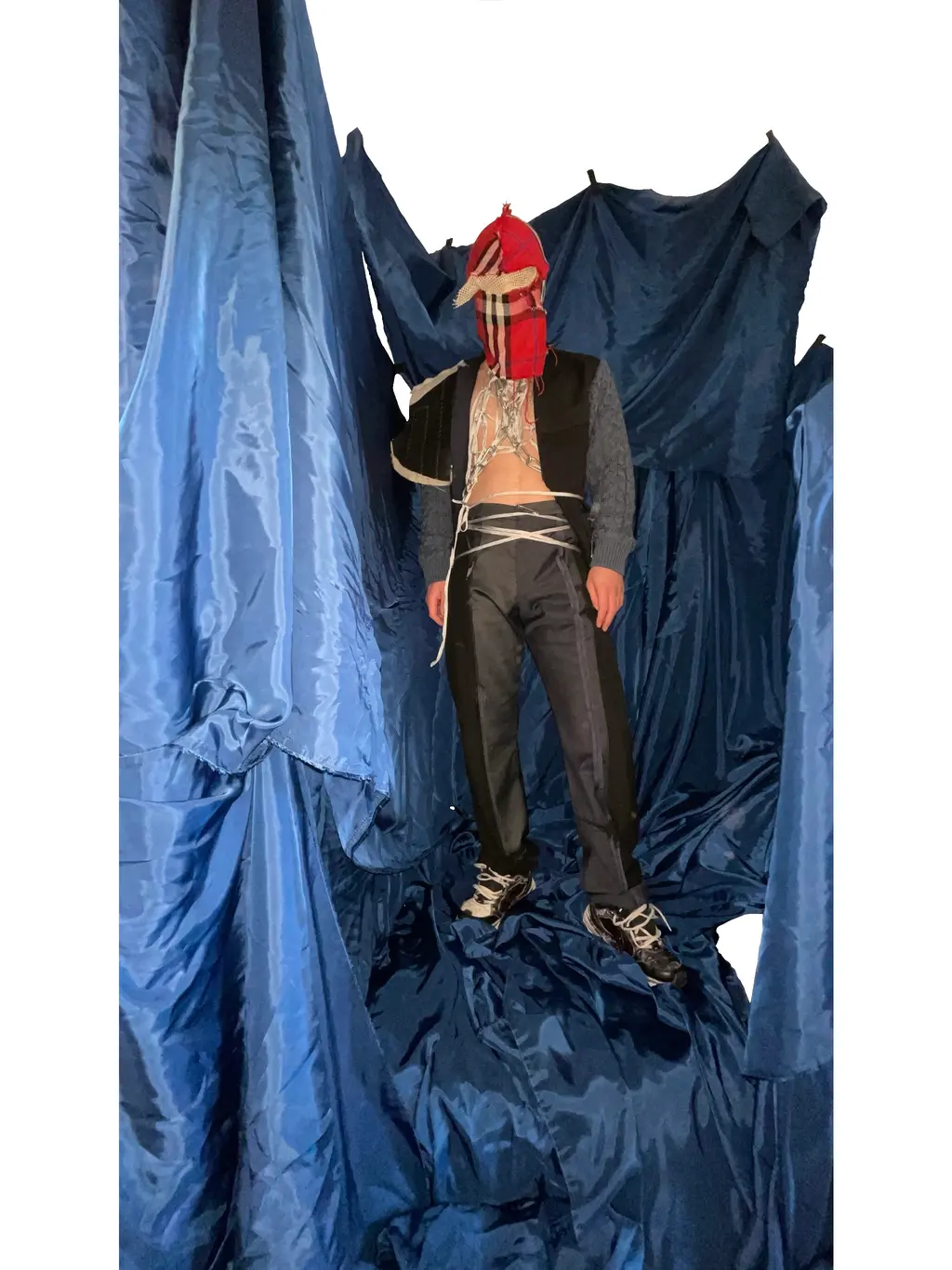 Compelled to work with what he had to hand, and moved by the negative impacts of wasteful fashion on the environment, Daniel took a“zero cost” approach to his graduate collection last year, creating strikingly sculptural garments from repurposed second-hand items, fabric offcuts and materials like wire and cardboard. And his AW21 collection is similarly thrifty.“All the fabric has been donated or deconstructed from my old clothes, or taken from old collections,” he explains ahead of its unveiling.