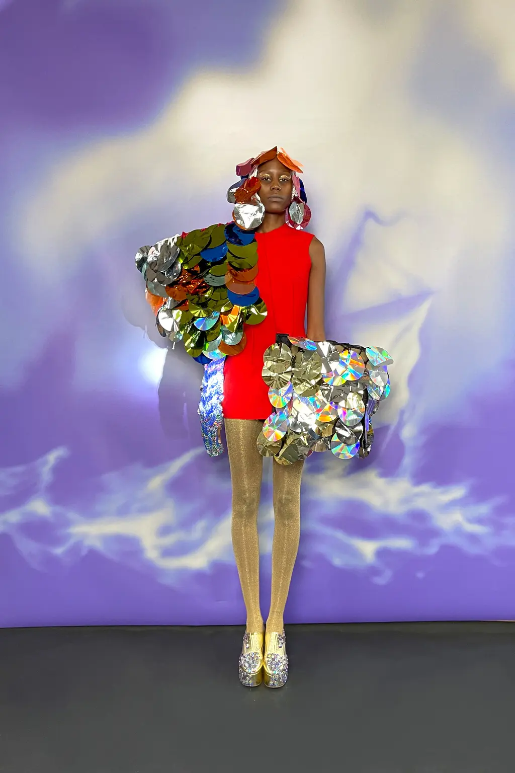 Torishéju Dumi crafted playful patchwork shoes and a sculptural “bag within a bag”, inspired by the work of Murano glass artist Fulvio Bianconi and the Italian cubist Gino Severini. While Andrej Gronau took German punk pioneer Nina Hagen as his muse and created an eye-popping range of footwear, including covetable platform Gomminos, and boldly embellished handbags (given the seal of approval by his mentor, Simone Rocha).