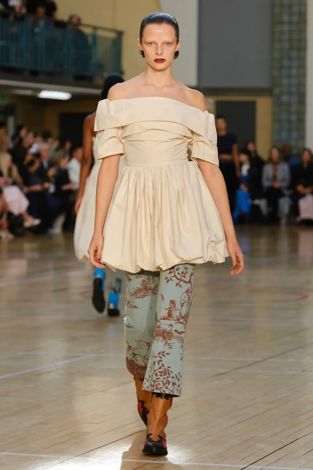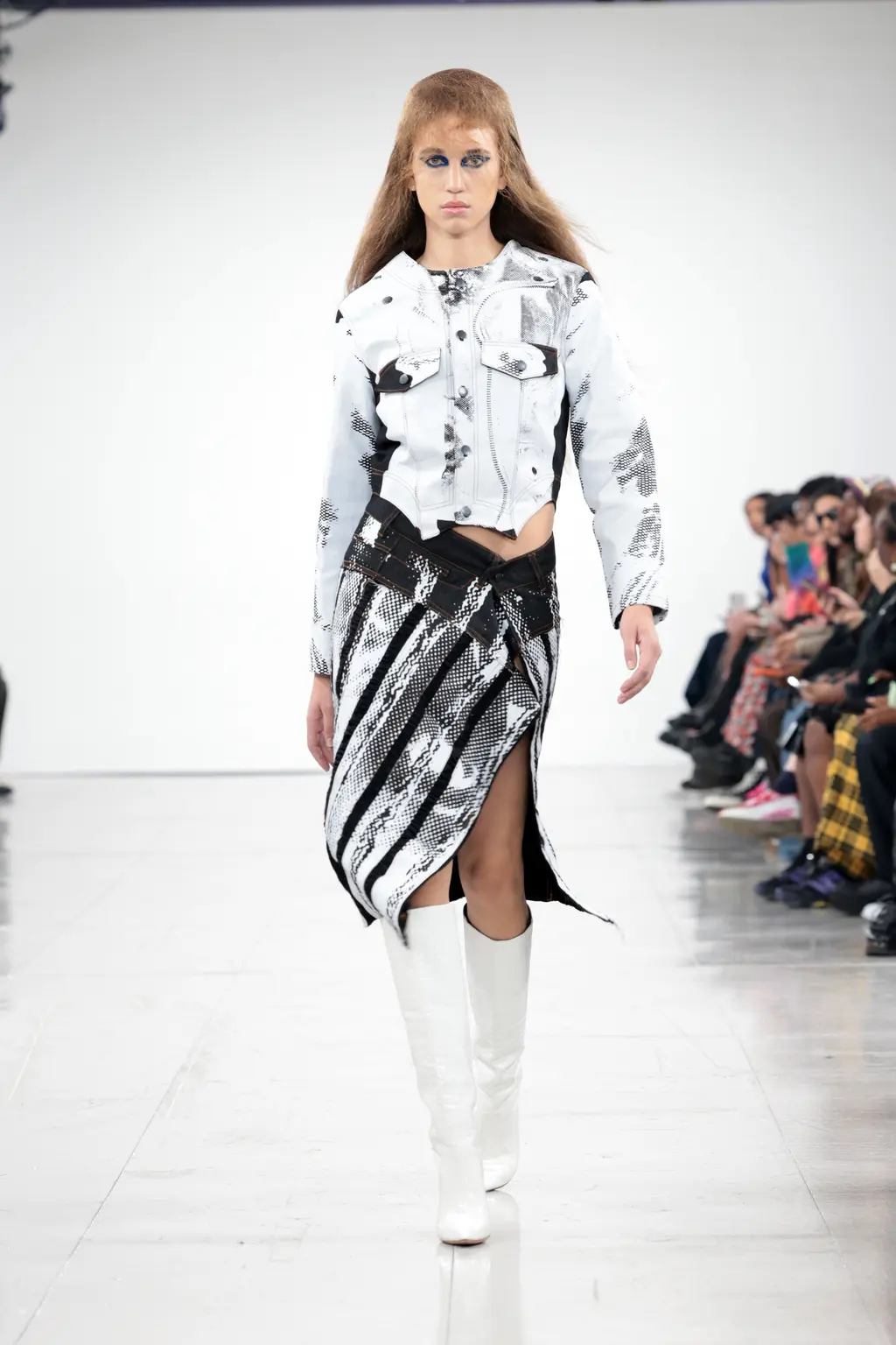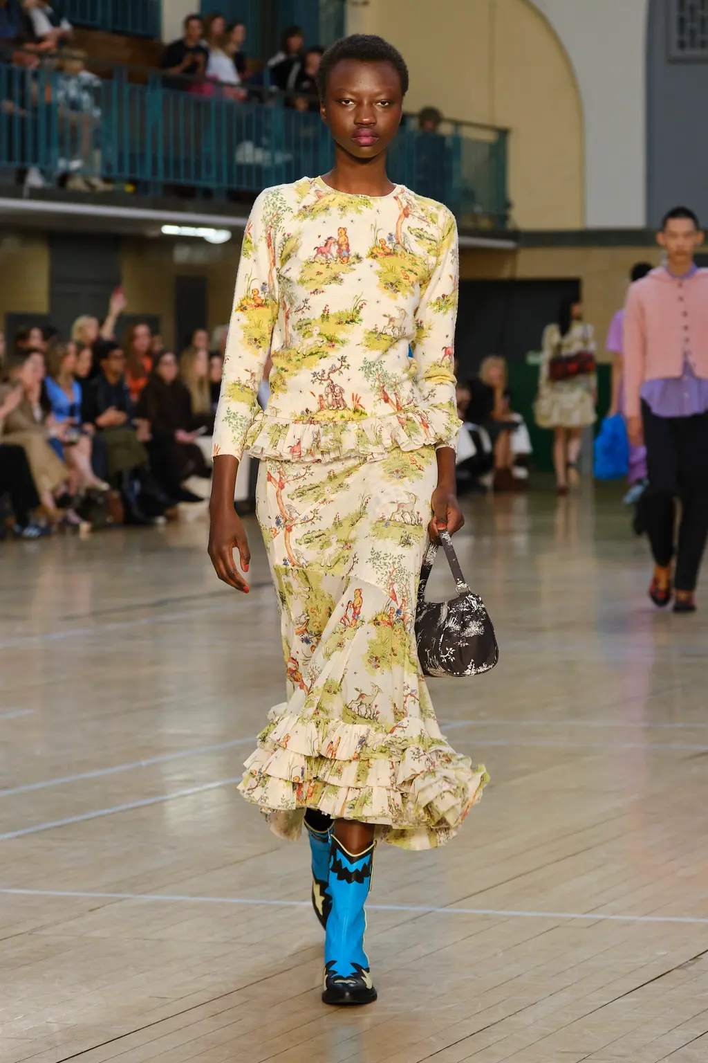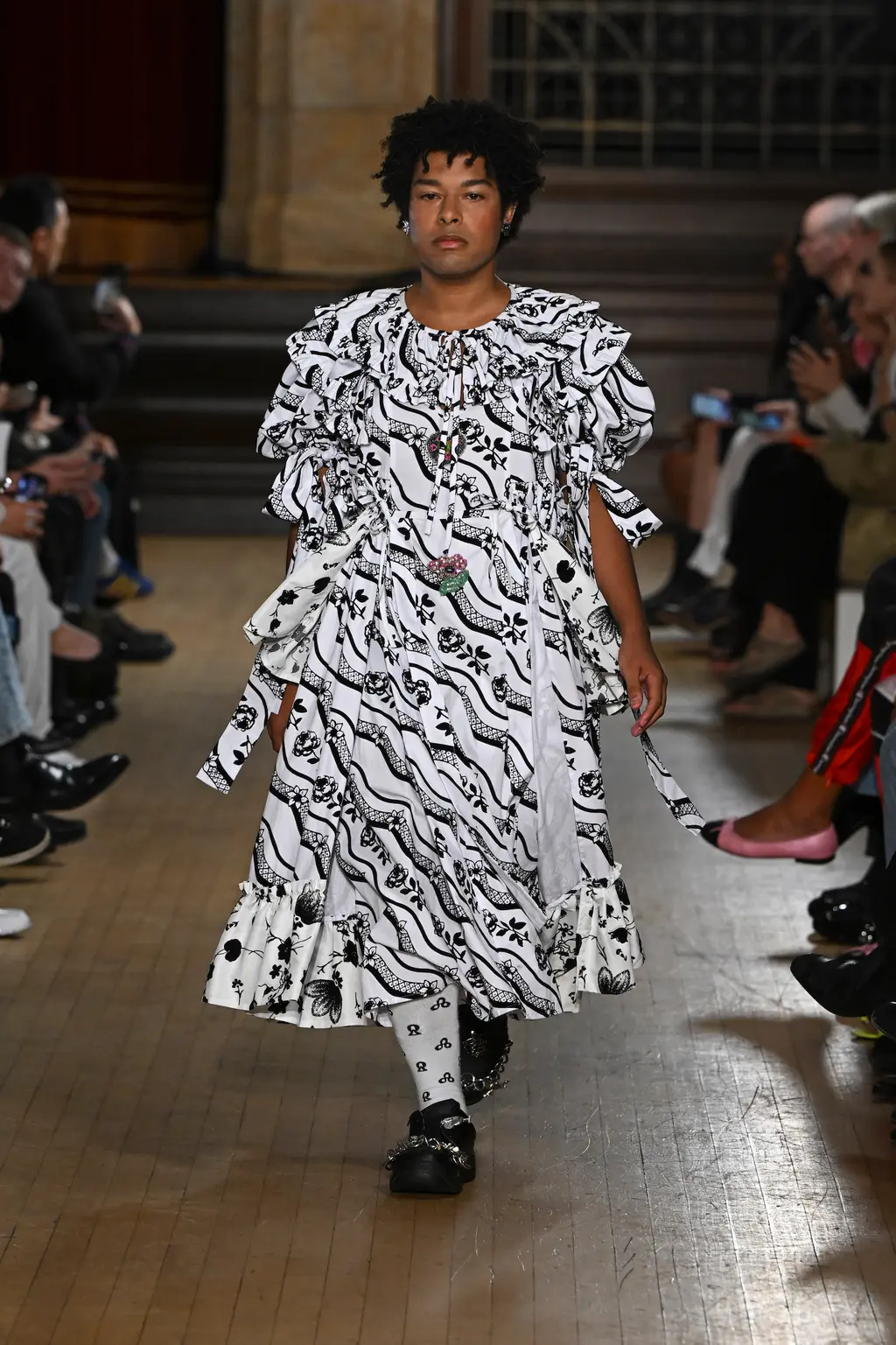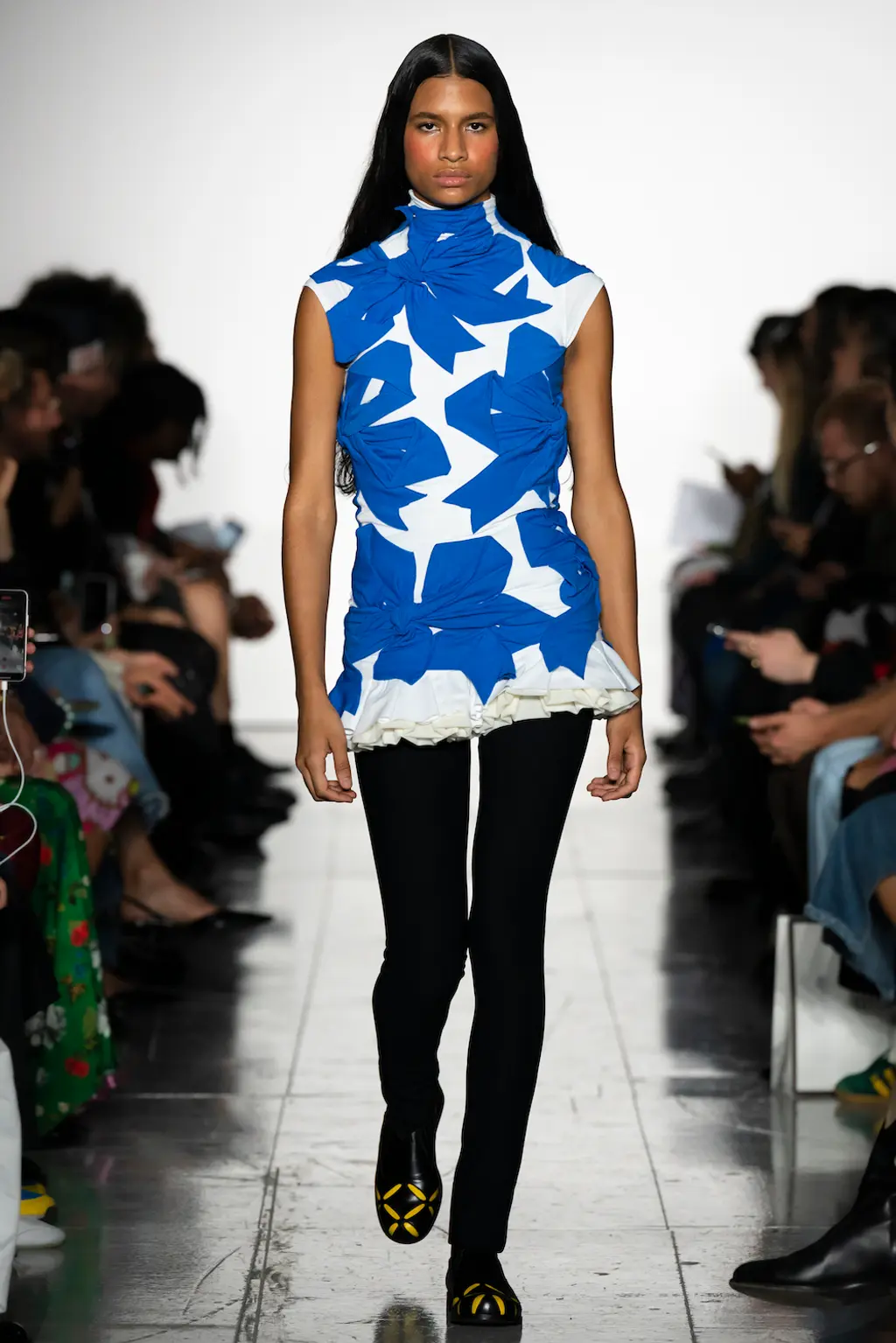 The mood? Punk, irreverent and upbeat – qualities that exemplify London Fashion Week at its best. The casting was on point, too: size inclusive and starring a number of faces from Chopova Lowena’s community, the rest of whom were sat in the audience to celebrate a fashion week debut. BM