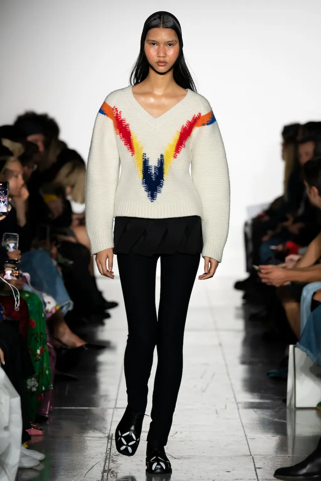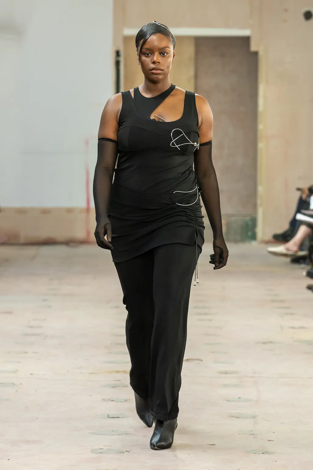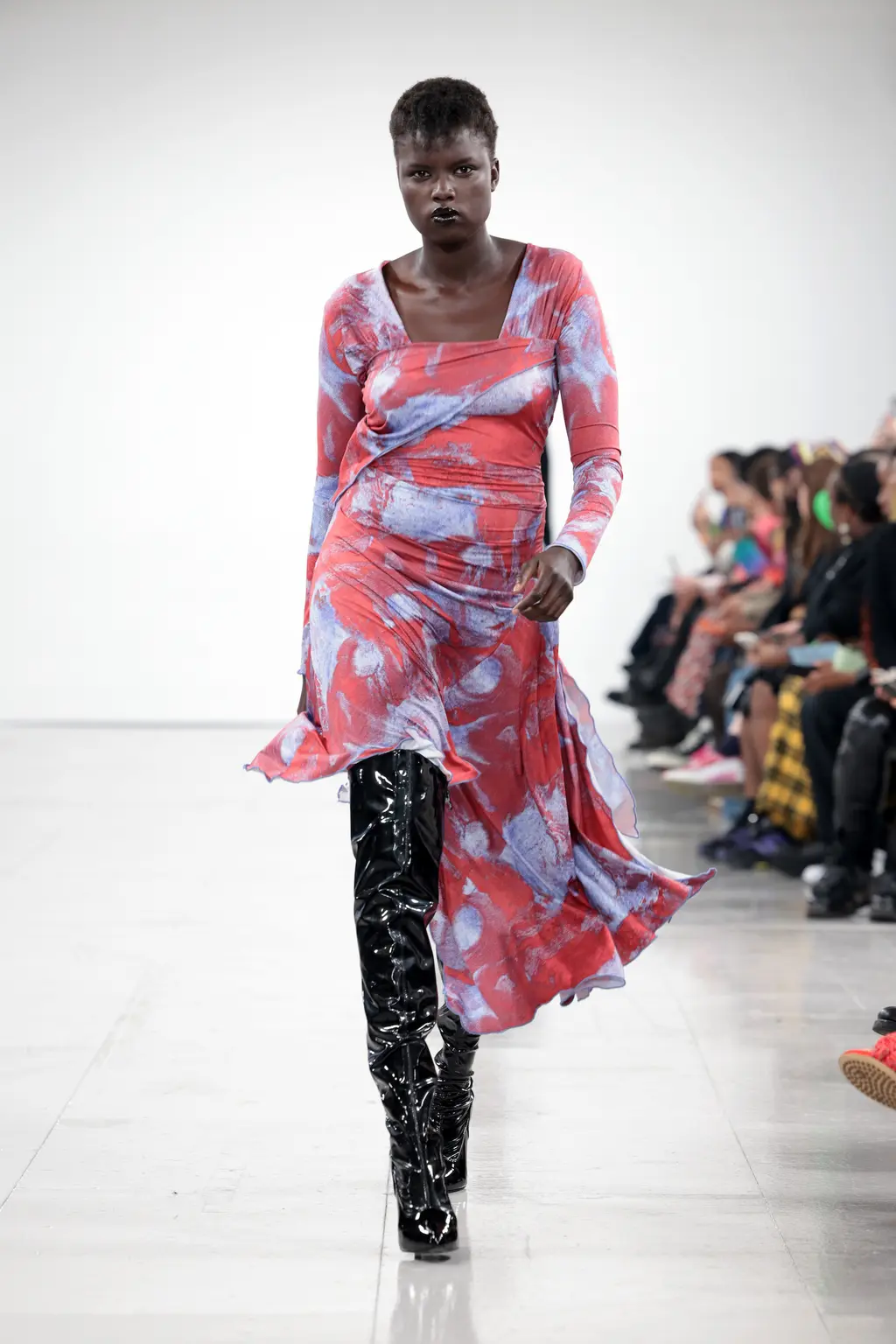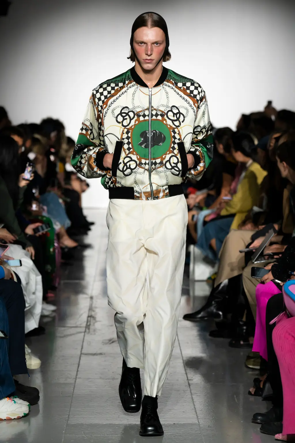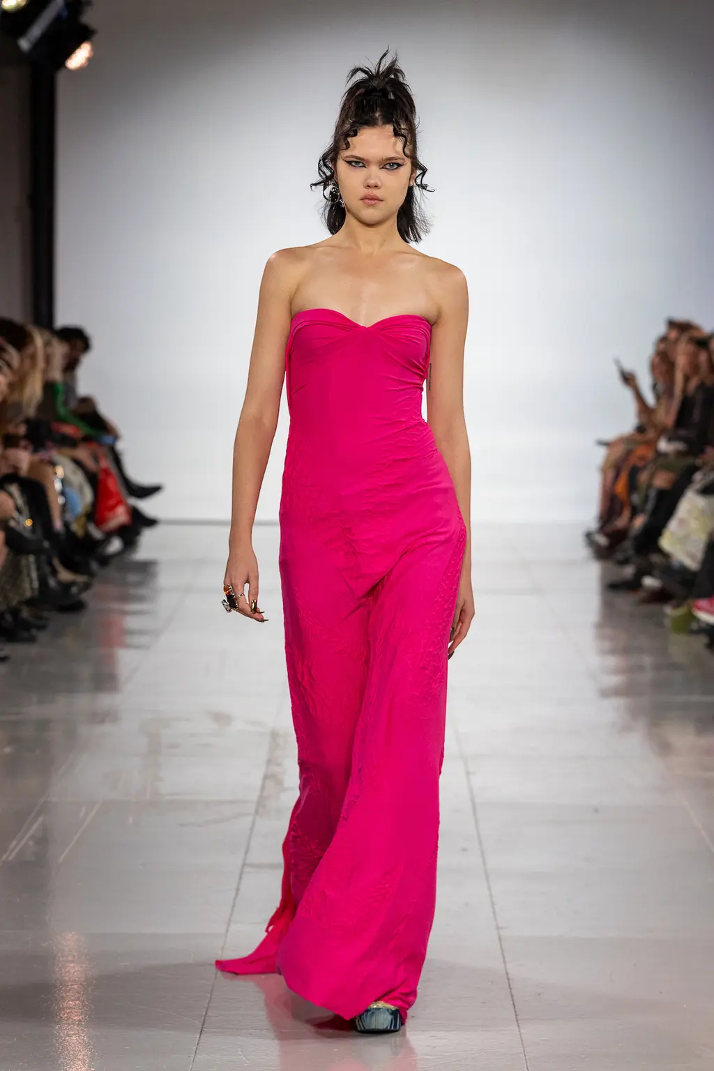 The mood? Punk, irreverent and upbeat – qualities that exemplify London Fashion Week at its best. The casting was on point, too: size inclusive and starring a number of faces from Chopova Lowena’s community, the rest of whom were sat in the audience to celebrate a fashion week debut. BM