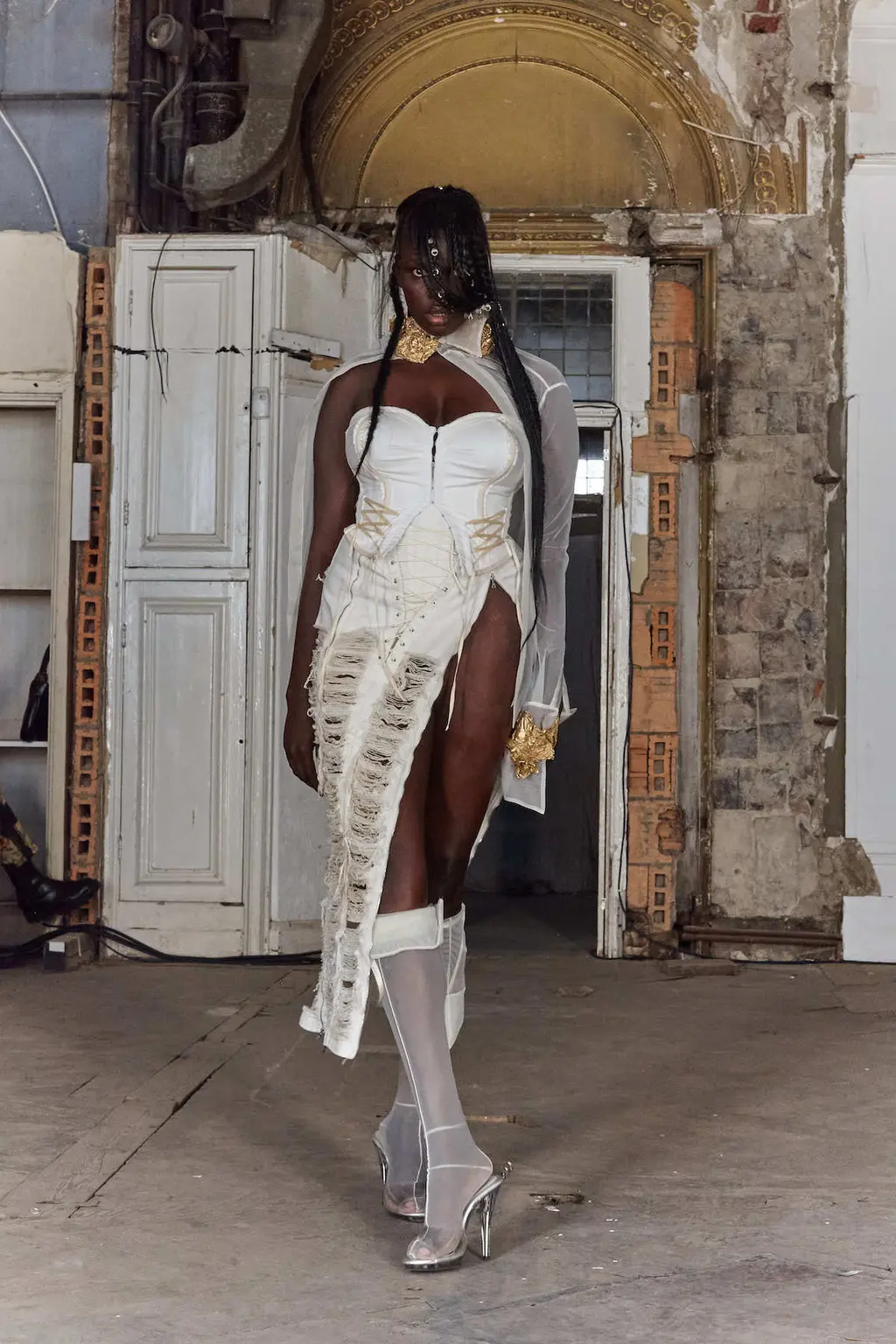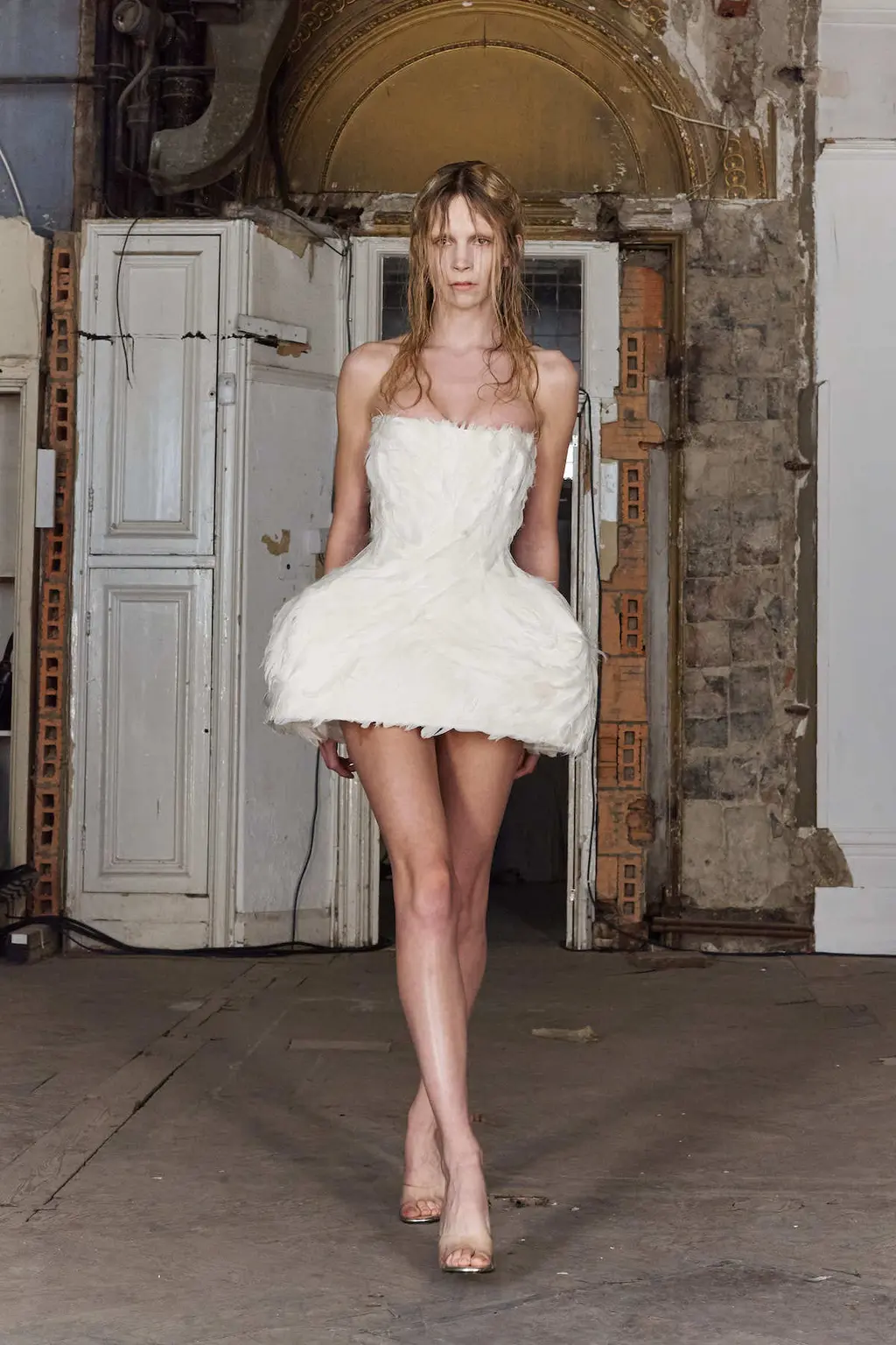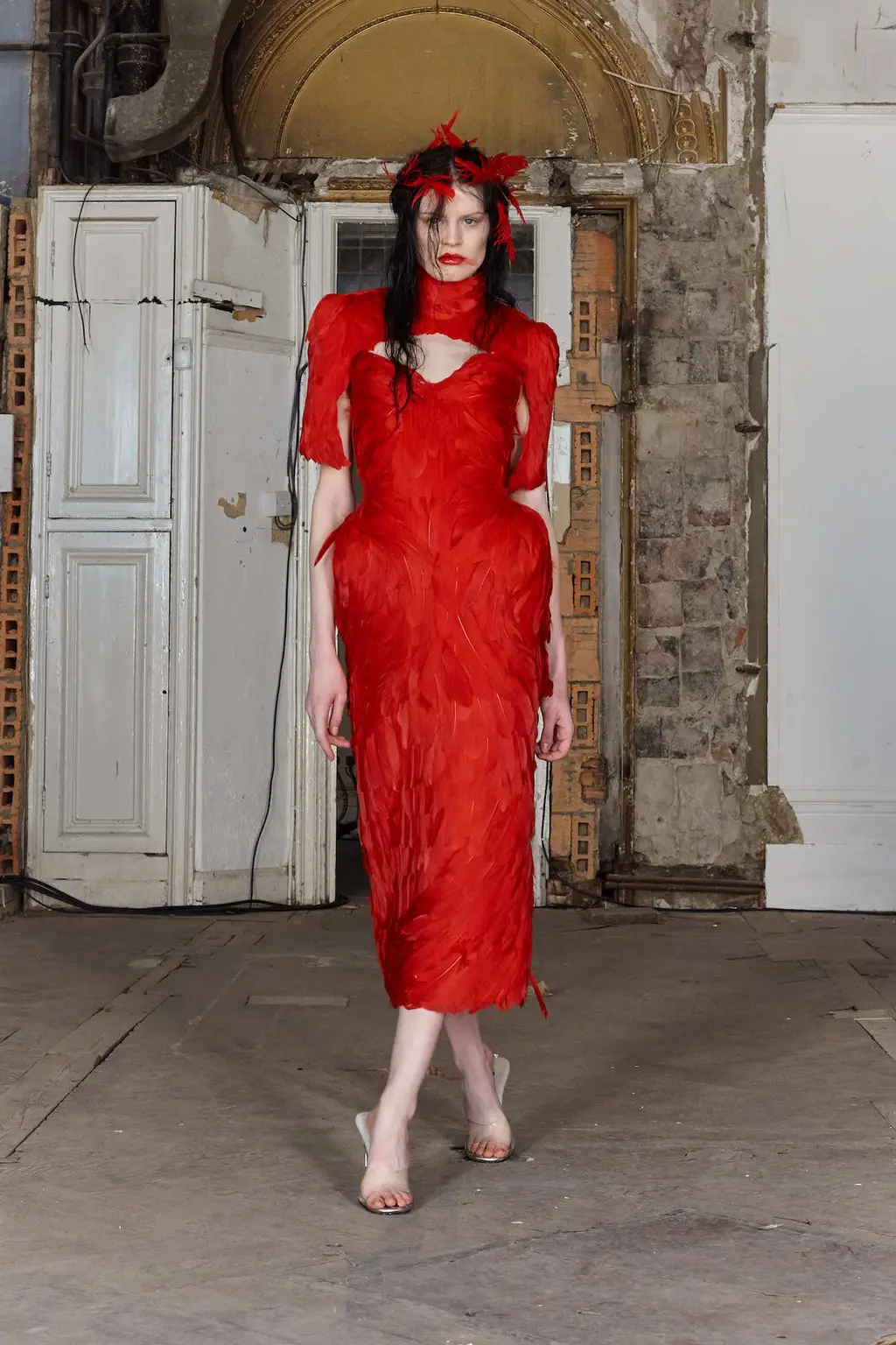 Detailed pieces like boned corsets, sweeping gowns and embroidered sheer skirts were beautifully constructed, while more conceptual additions – such as a waistcoat made of peacock feathers and a transparent dress without arm holes – were pure wicked imagination.