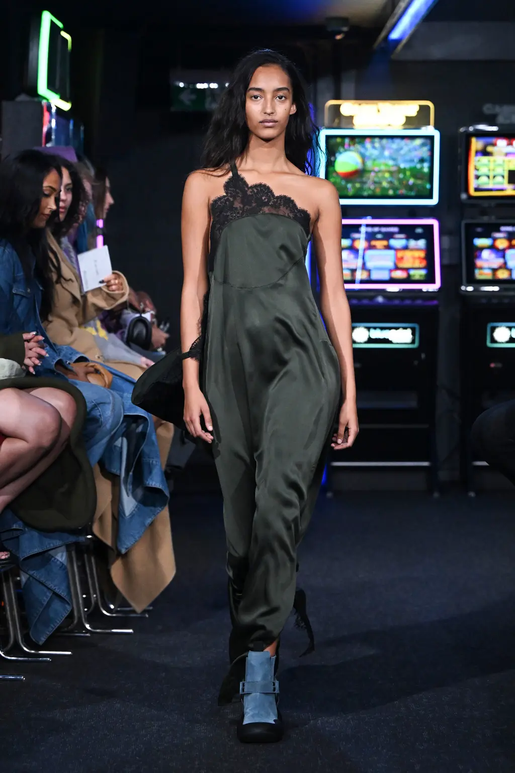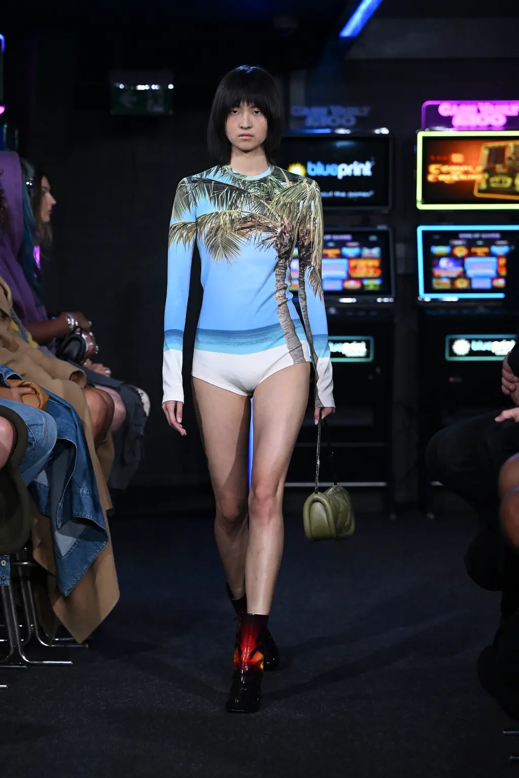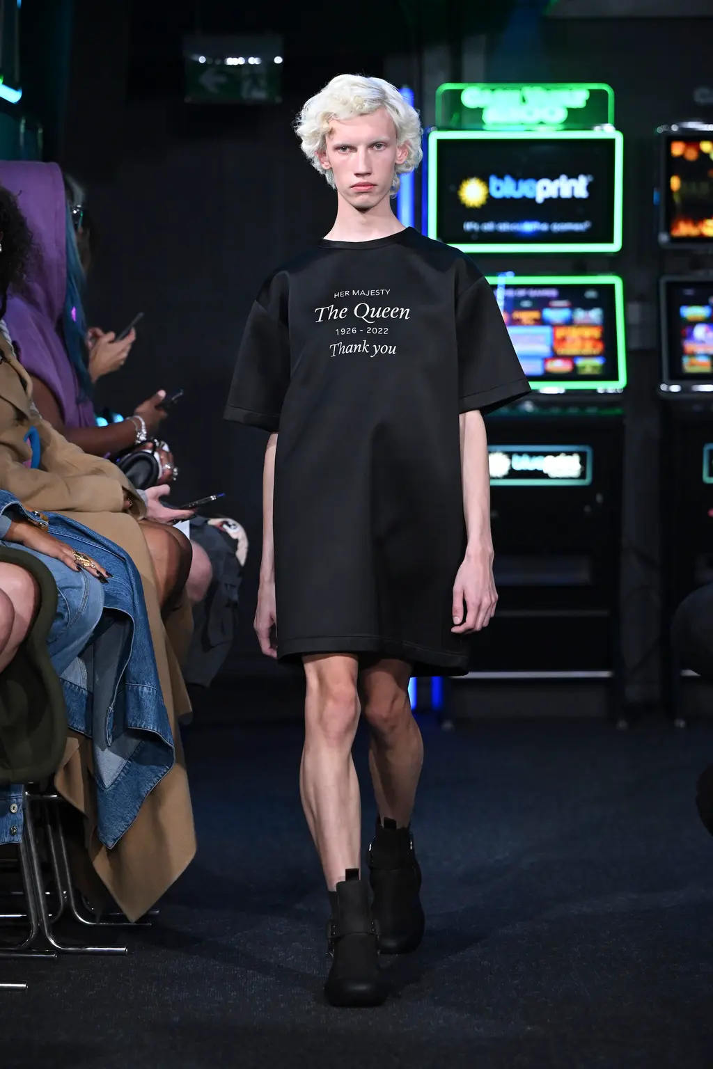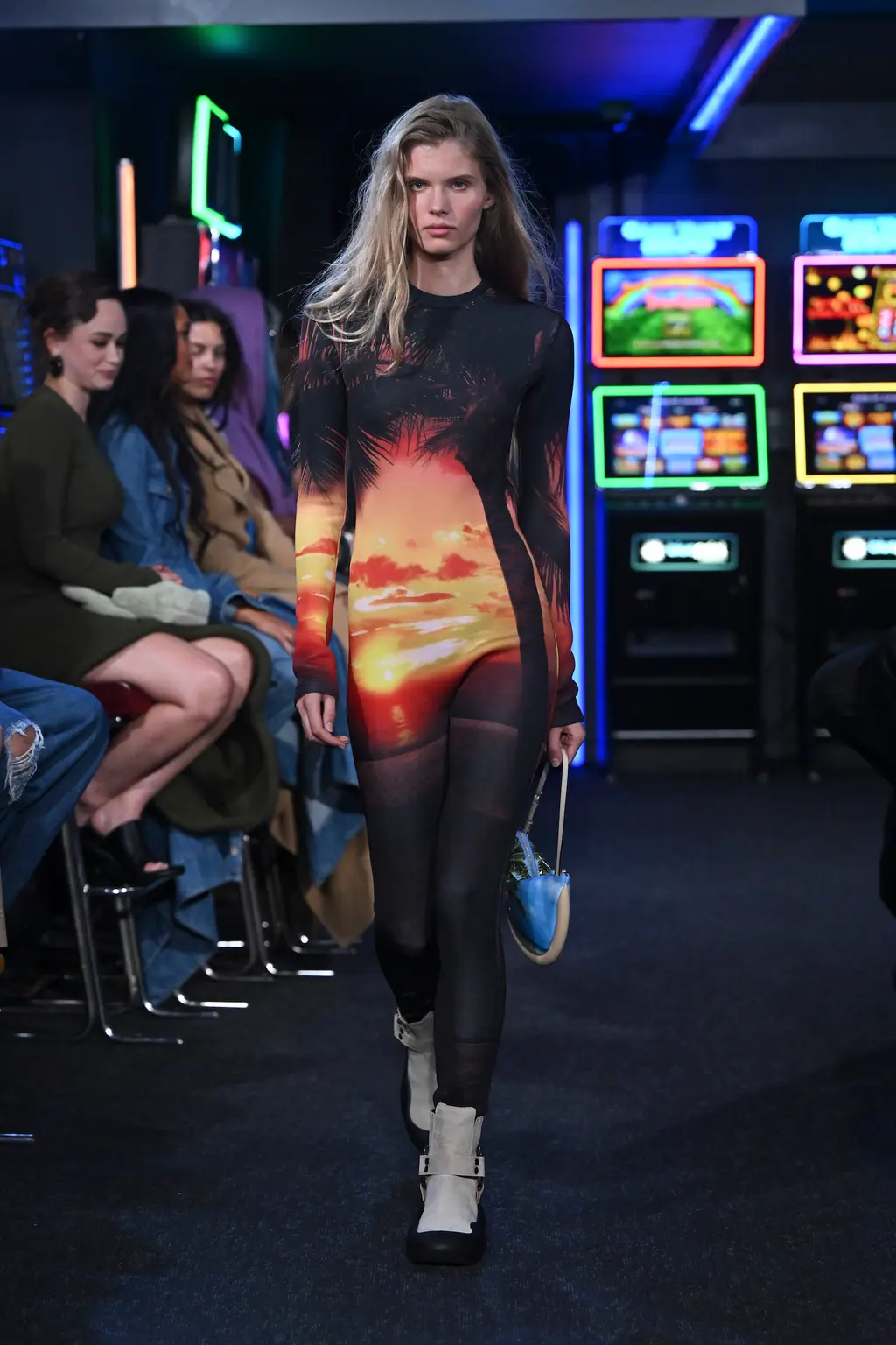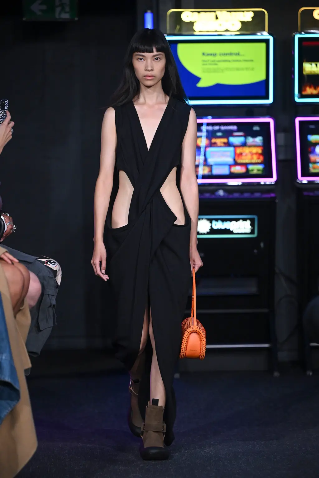 Considering it took place inside a literal arcade, the venue for JW Anderson’s SS23 collection wasn’t too much of a gamble. It was, after all, next door to the designer’s London boutique (a mere 62 metre walk according to Google Maps). Filled with shoot ’em ups and driving machines, the gaming setting felt fitting for a show that explored ideas of other worlds. “Are we falling into the screens? Are we becoming our phones? Is this interesting? Is it art??” asked a fairly existential Jonathan Anderson backstage.