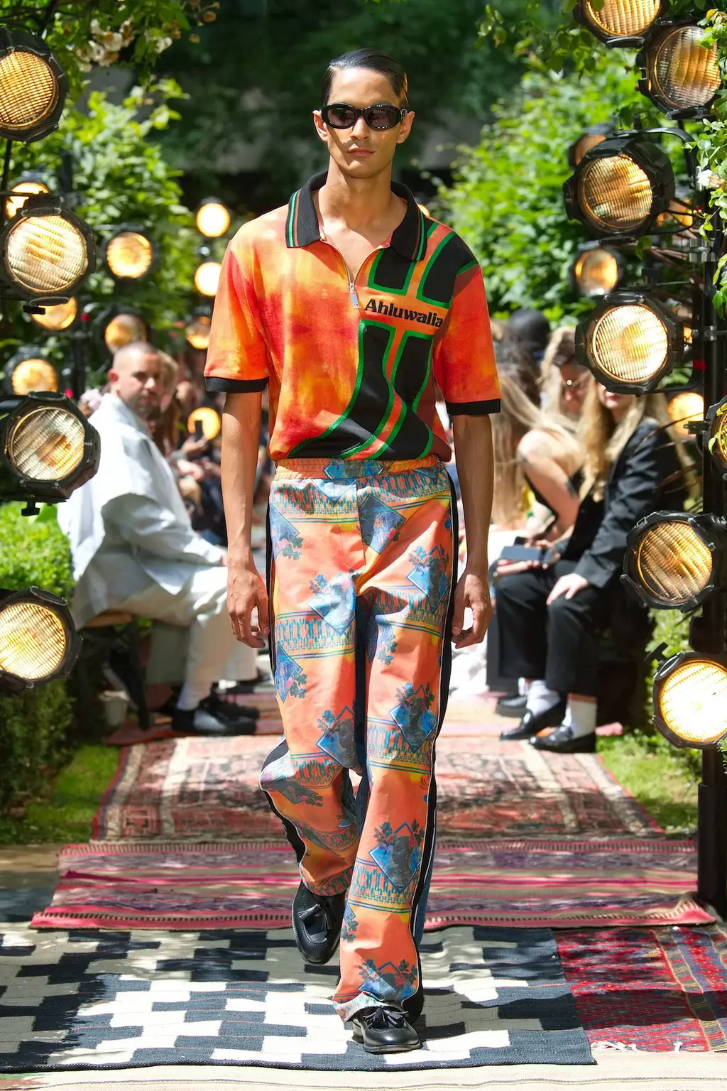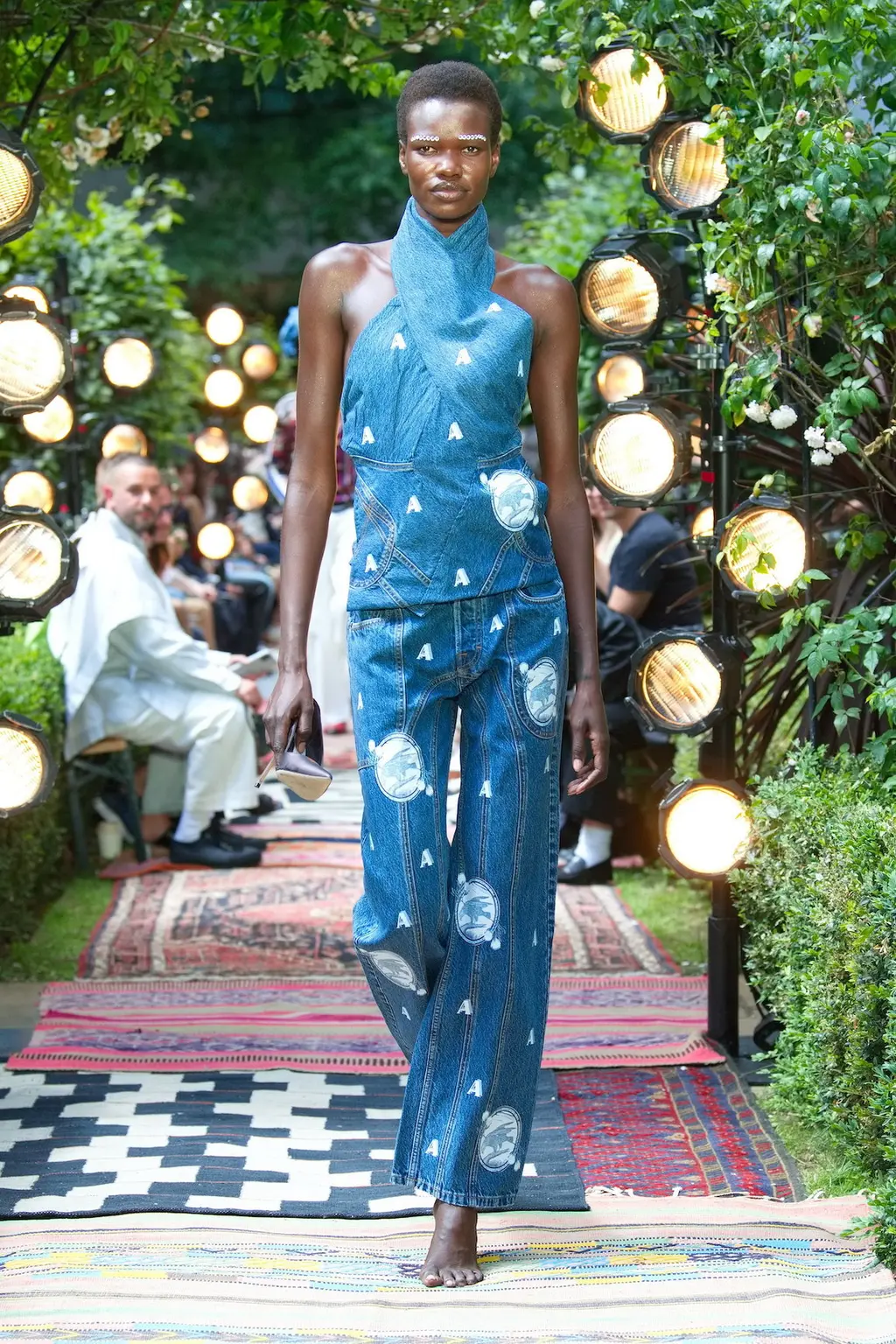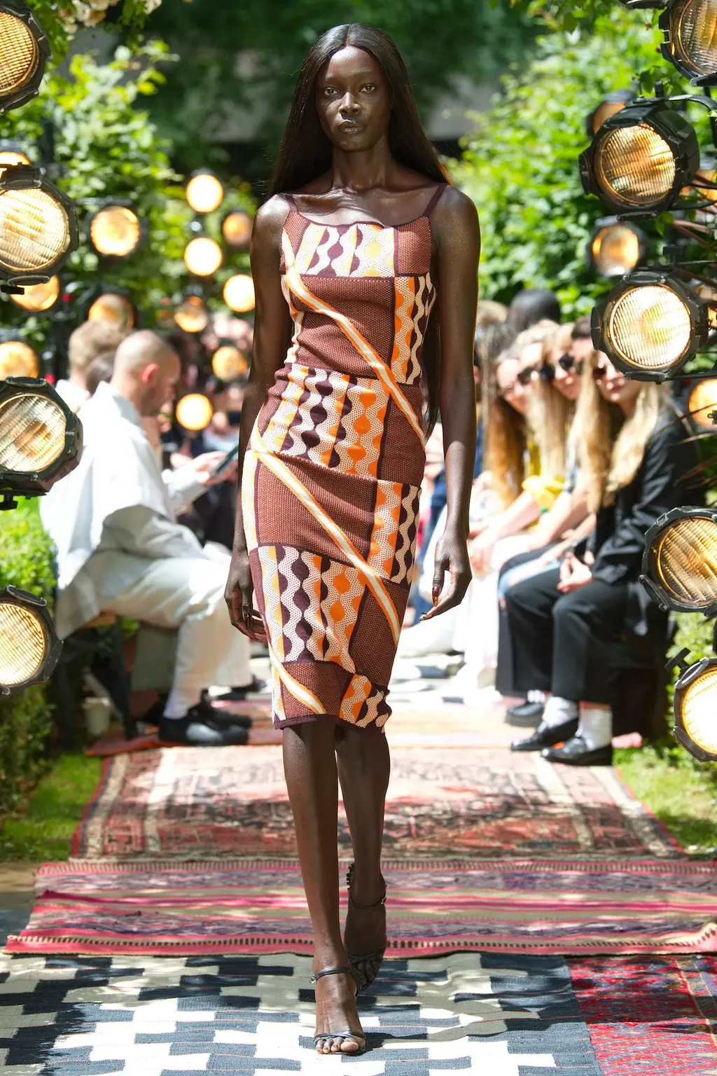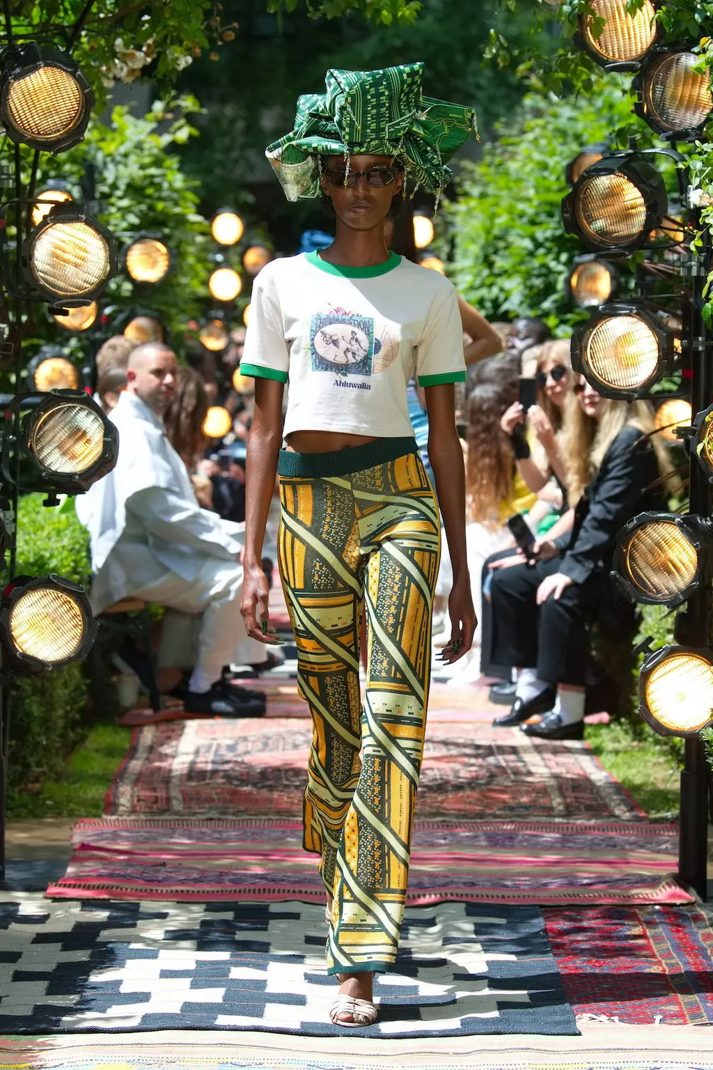 Where Priya Ahluwalia’s eponymous brand typically references a hybrid of her Nigerian and Indian heritage, this season was a deep-dive into Africa – a beautiful retelling of the continent’s many cultures, the magnificence of its landscapes and the rich history of its influence in film, music and style. Africa is Limitless was Ahluwalia’s love letter to the continent’s diverse thinkers, teachers and its outward-facing future. The collection was optimistic, as the creative director interpreted a wealth of research: the beaded elements from Kenyan and Rwandan cultures; the technicolour palettes of the Sapeurs subculture in The Congo’s Brazzaville and Kinshasa cities; the vibrant album covers of musicians from Côte d’Ivoire; the heady patterns found in traditional Tunisian blankets. The SS23 collection fluidly crossed the continent, with patterned jersey dresses, high-octane pops of orange and pink, sultry ombre effects and traditional headdresses. Here, Ahluwalia recontextualizes Africa, away from the mass media’s often misinformed narratives, and ends up with a trans-continental patchwork of cultural influences.