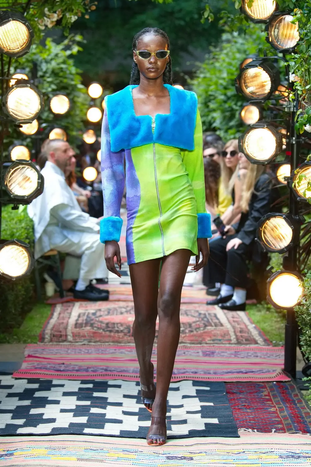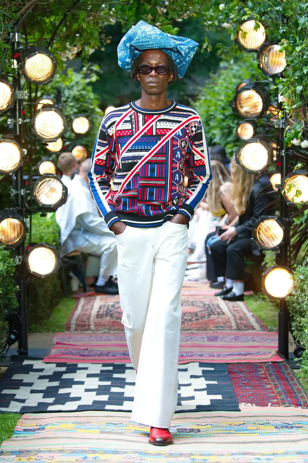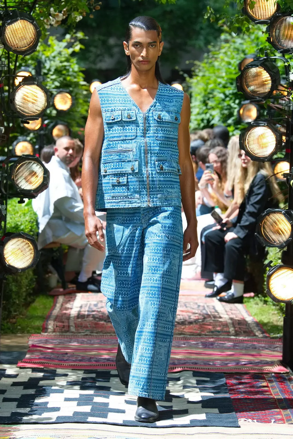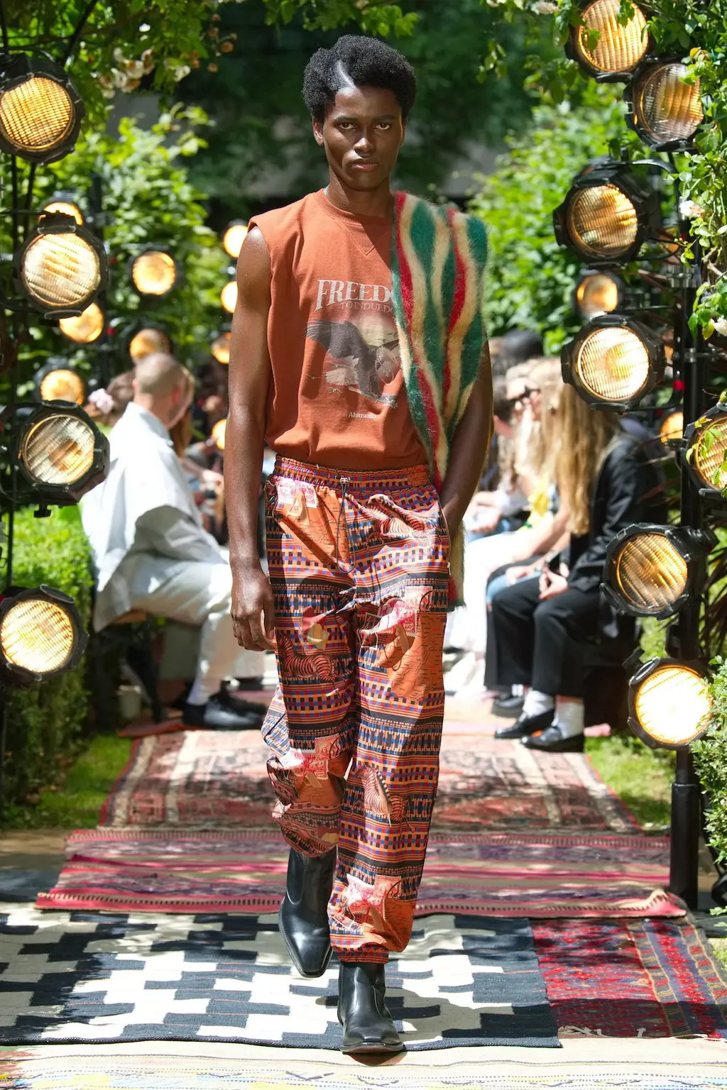 Where Priya Ahluwalia’s eponymous brand typically references a hybrid of her Nigerian and Indian heritage, this season was a deep-dive into Africa – a beautiful retelling of the continent’s many cultures, the magnificence of its landscapes and the rich history of its influence in film, music and style. Africa is Limitless was Ahluwalia’s love letter to the continent’s diverse thinkers, teachers and its outward-facing future. The collection was optimistic, as the creative director interpreted a wealth of research: the beaded elements from Kenyan and Rwandan cultures; the technicolour palettes of the Sapeurs subculture in The Congo’s Brazzaville and Kinshasa cities; the vibrant album covers of musicians from Côte d’Ivoire; the heady patterns found in traditional Tunisian blankets. The SS23 collection fluidly crossed the continent, with patterned jersey dresses, high-octane pops of orange and pink, sultry ombre effects and traditional headdresses. Here, Ahluwalia recontextualizes Africa, away from the mass media’s often misinformed narratives, and ends up with a trans-continental patchwork of cultural influences.