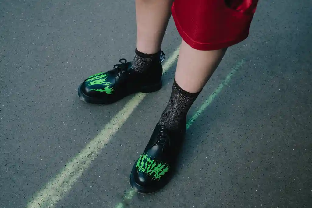 Dr. Martens and NTS have joined forces for a limited edition collection, designed for music lovers. The boot and music makers are both on a mission to do things differently, and this hookup sees Dr. Martens cult classic 1461 Smooth Leather Oxford shoe undergo a bold, acid-bright refresh, led by NTS’ “Don’t Assume” slogan, which appears on the shoes in gothic lettering.