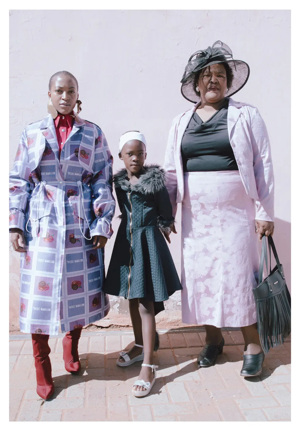 For AW20, Magugu harnessed his love for his hometown and the setting that shaped him. The collection was titled IPOPENG EXT. Anthro 1 after the township he grew up in, while one of the photographs displayed in the presentation was shot in his mother’s living room. Another featured his uncle on a motorbike. “All this sort of funnels into the collection: as references and prints and cues,” he said.