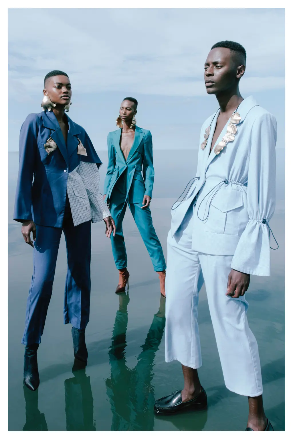 While effectively homegrown and low-maintenance, Magugu has also integrated a cutting-edge tech component into each piece. Every garment is chipped, which – via an app – provides complete access to pragmatic details: the composition of materials, the address of the supplier, biographies of the people who sewed the garment. It also reveals a more elaborate personal narrative (including essays penned by Magugu, who is fond of writing) and companion “recommended reading” lists that informed the designers research. Transparency is of the essence to him, and the chip works as a communication channel.