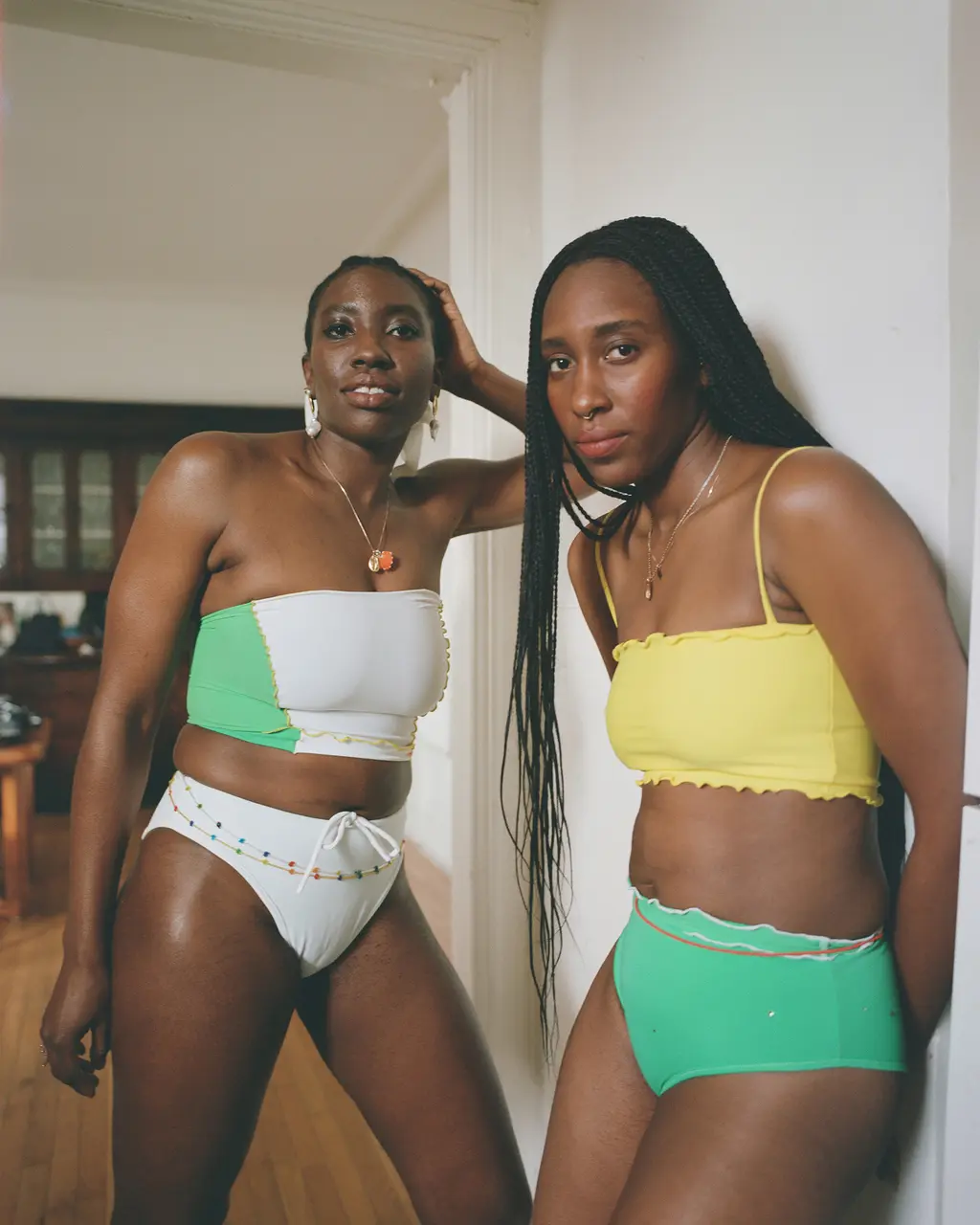 Each of her collections are made up of playful, well-crafted pieces boasting intricate patchwork patterns and versatile shapes (halter-necks, bustiers, asymmetric necklines, you name it) in vibrant blues, greens and yellows. She even found a fan in TikTok’s Addison Rae two months ago.