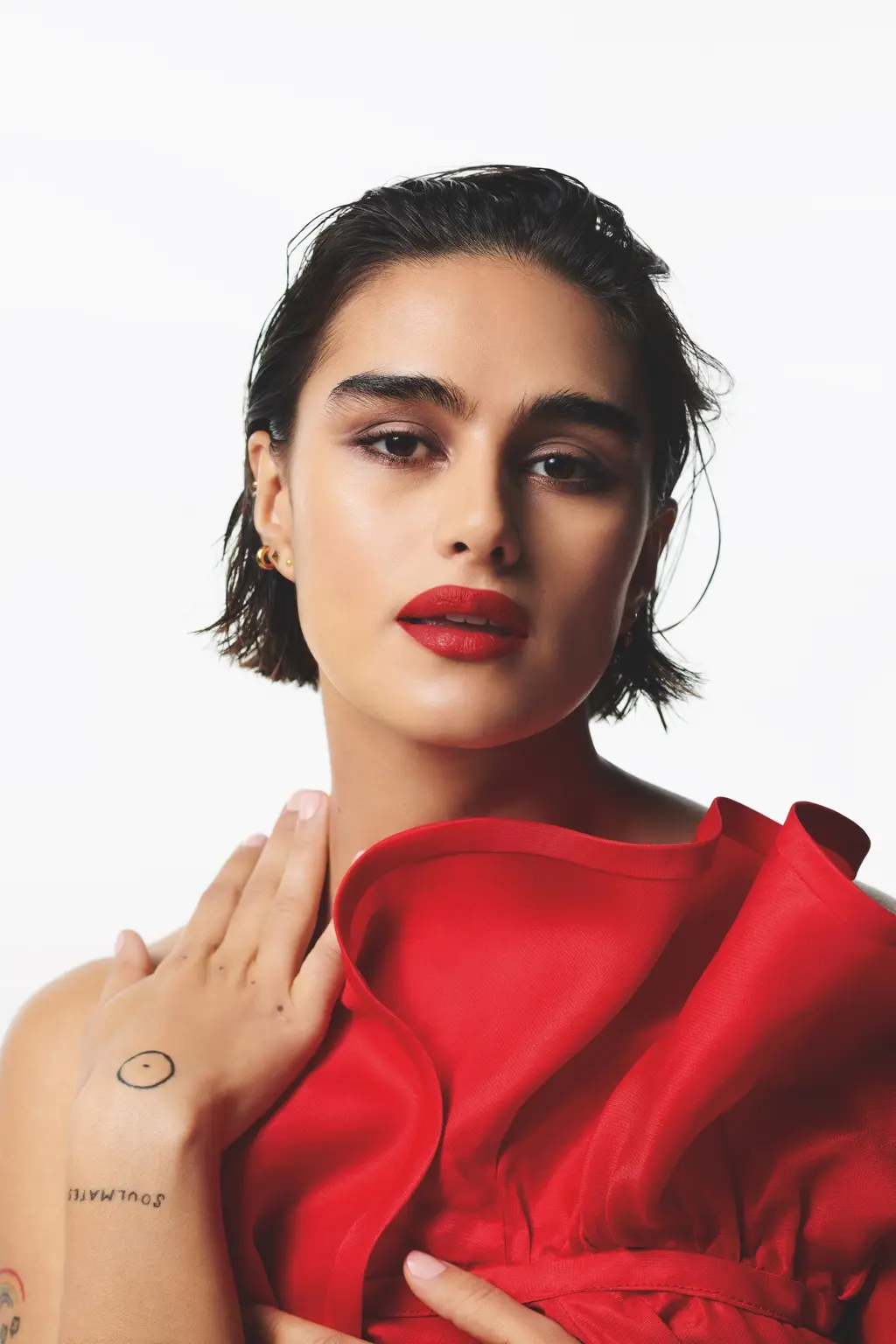Ask Alejandre how the collaboration came about and he’ll assure you it was kismet: “I totally manifested it. It was unexpected but it was also at a point in my life when I was living my most authentic self.” Existing on your own terms is at the core of both Valentino makeup and Alejandre’s output. The makeup is there to be played with and adapted according to the user. “The brow trio, specifically the ink-sided, is great for mapping out your eyeliner, creating faux freckles and filling in your brows” explains Alejandre. “[With] the eye to cheek – I’ve never seen colours like this – the pay off is incredible. It’s just about using the product instinctively and amplifying people’s characters.”