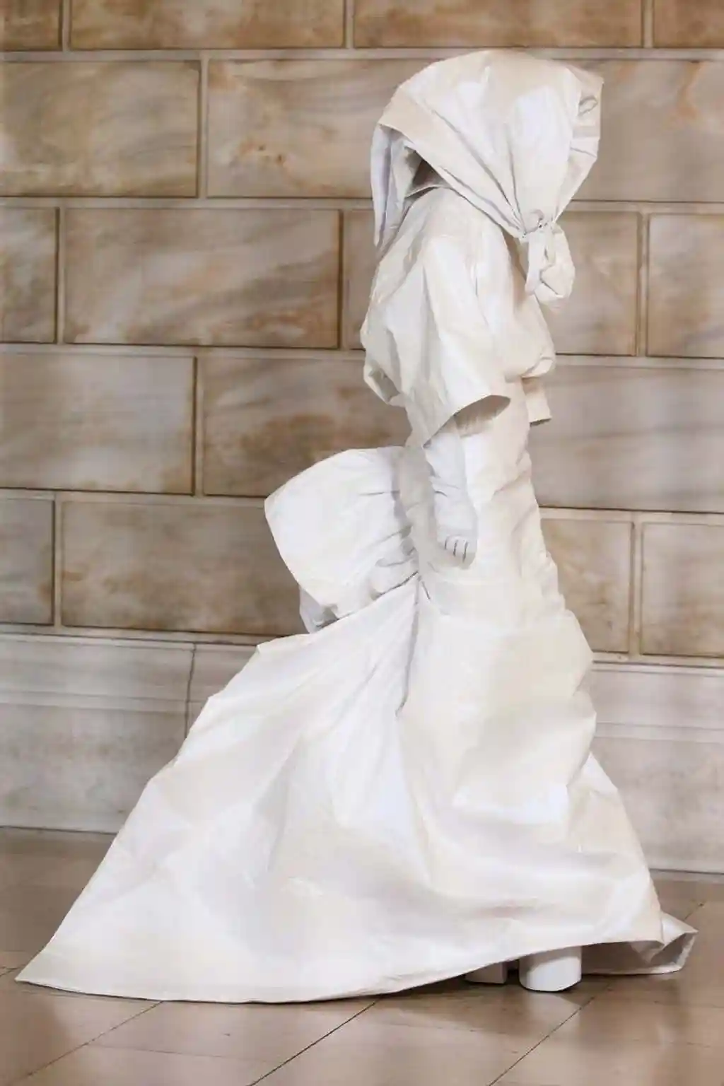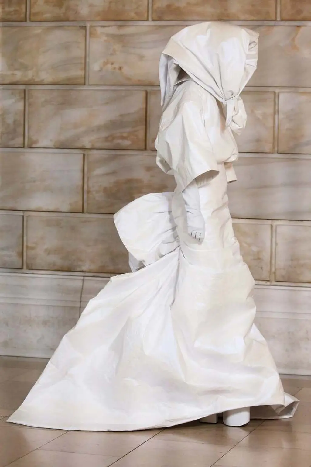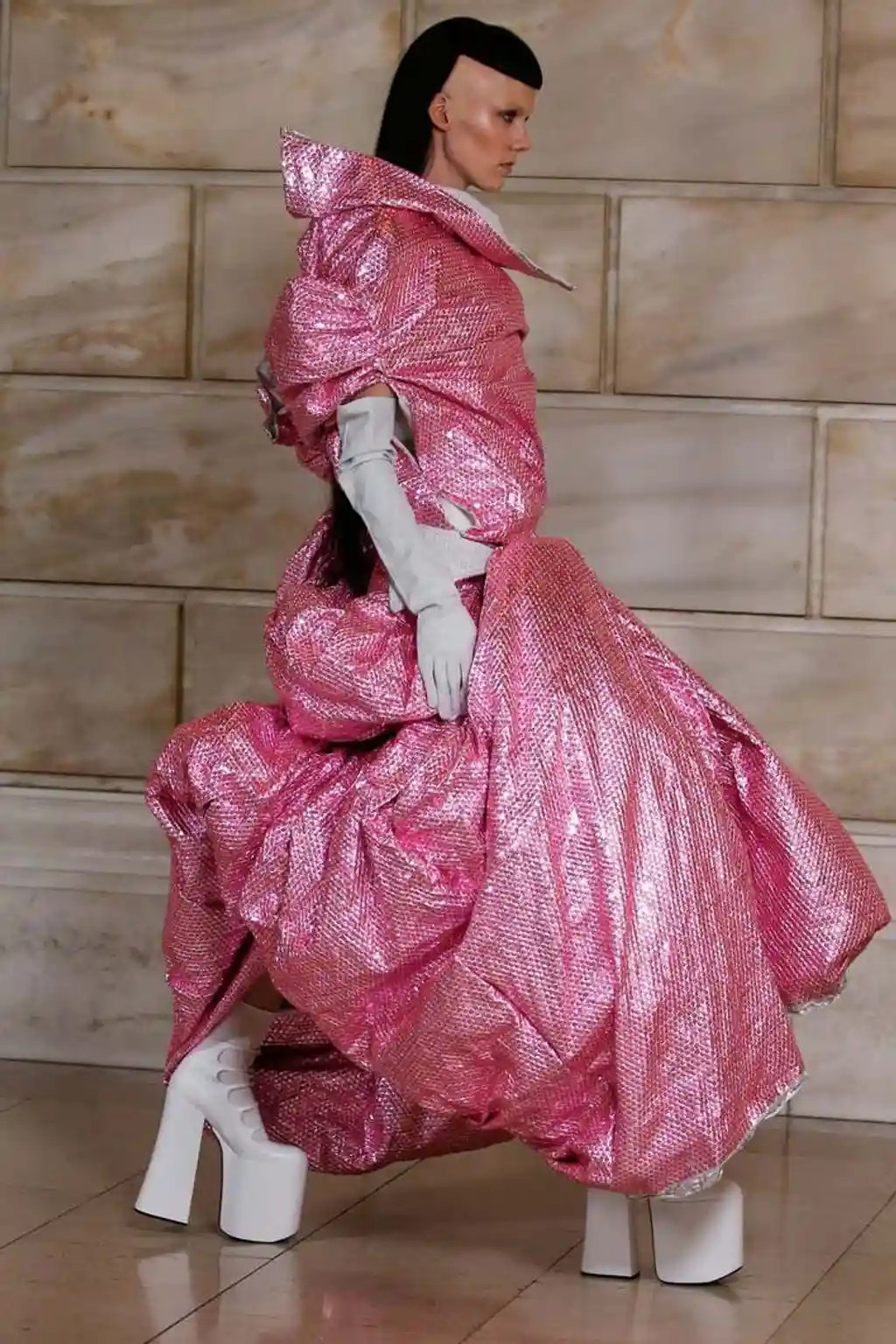 The ever-energetic designer used foil, glass, plaster, vinyl, and paint to create blown-up silhouettes for his AW22 show, celebrating the power of collective imagination.