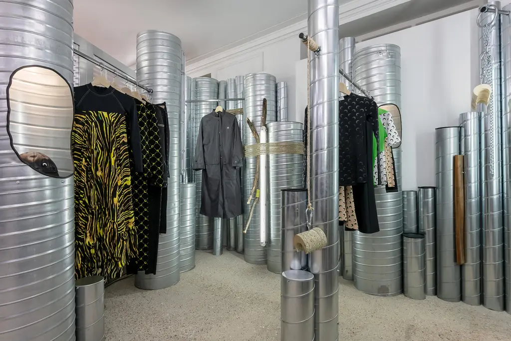 “There aren’t a lot of retailers that let you express yourself like this,” notes Serre approvingly. “I make my installations the same way that I make my garments: it’s good for the planet and it really makes me think further. You transform an object once by putting it in the show, then you transform it again.” It’s really challenging but, for her, wholly worth it.