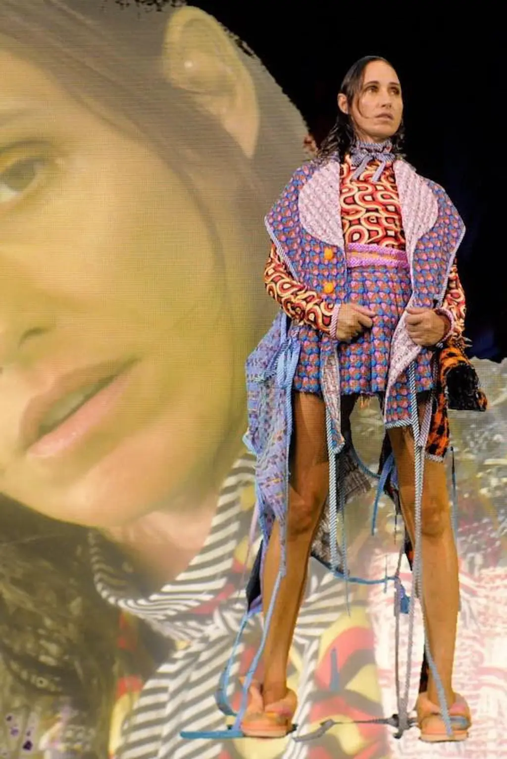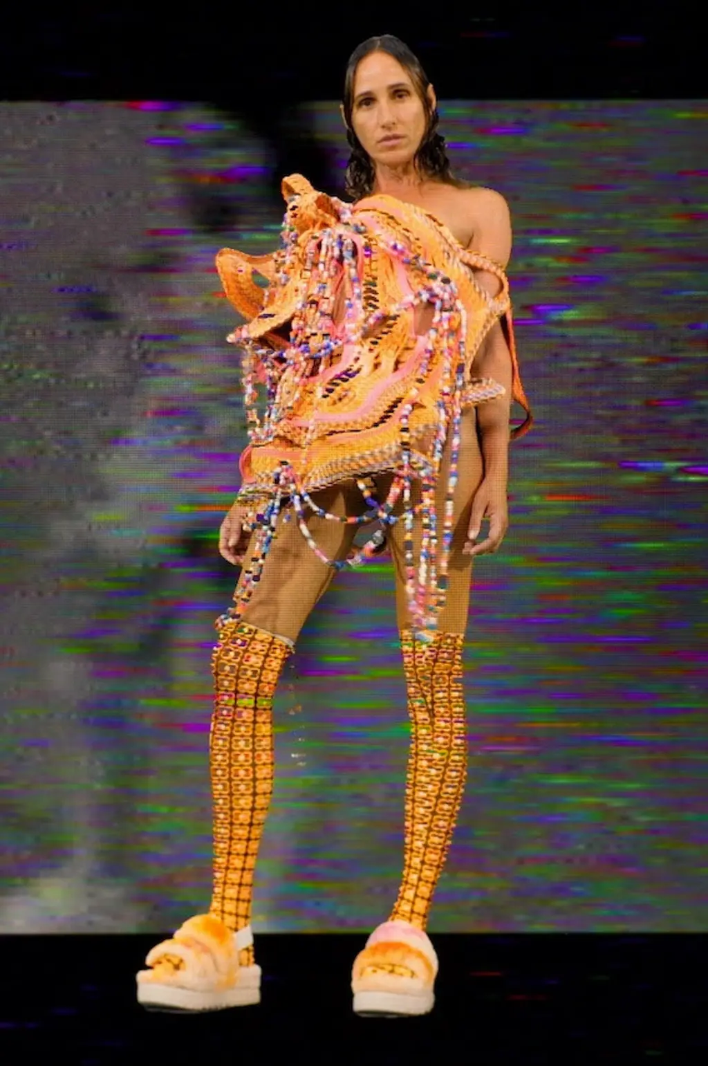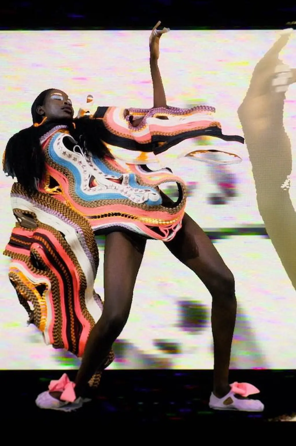 Less never has been more for Bovan, and this collection took that ethos to its highest heights. Shapes were distorted, contorted and bent around, prints were garishly loud, and XXL looks were crafted from sewn paracord ropes and UGGs slashed into slippers. Bovan used his own family photos – one of his mum as a teenager (who looks as brilliantly outlandish as Bovan) and another of three generations of the Bovan clan together – screen printed onto textiles.