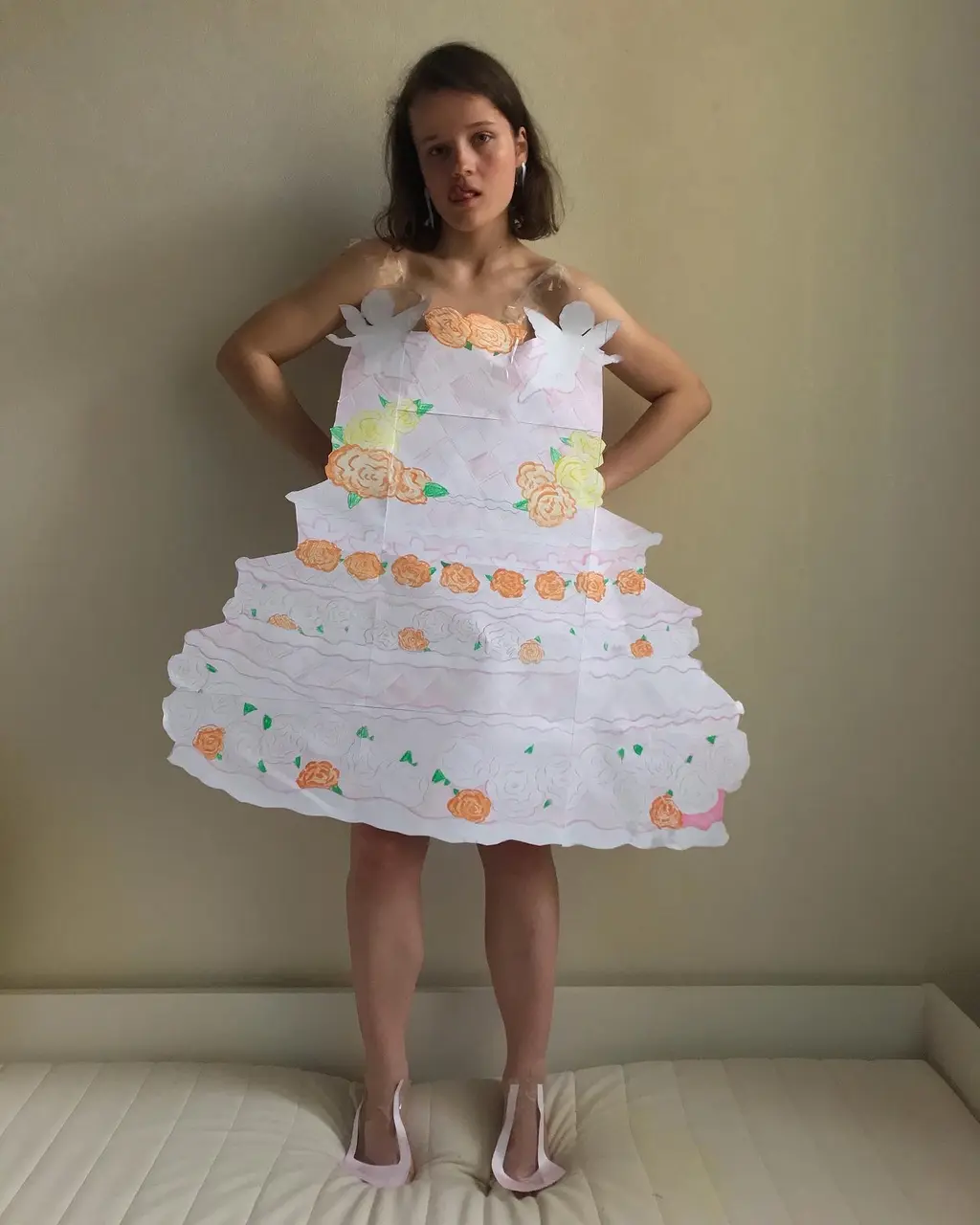 The Russian designer-cum-photographer fashions everyday objects into weird and wonderful outfits. Here, she makes AW20’s most memorable looks out of paper — including one of Moschino’s mega three-tier cakes — exclusively for The Face.