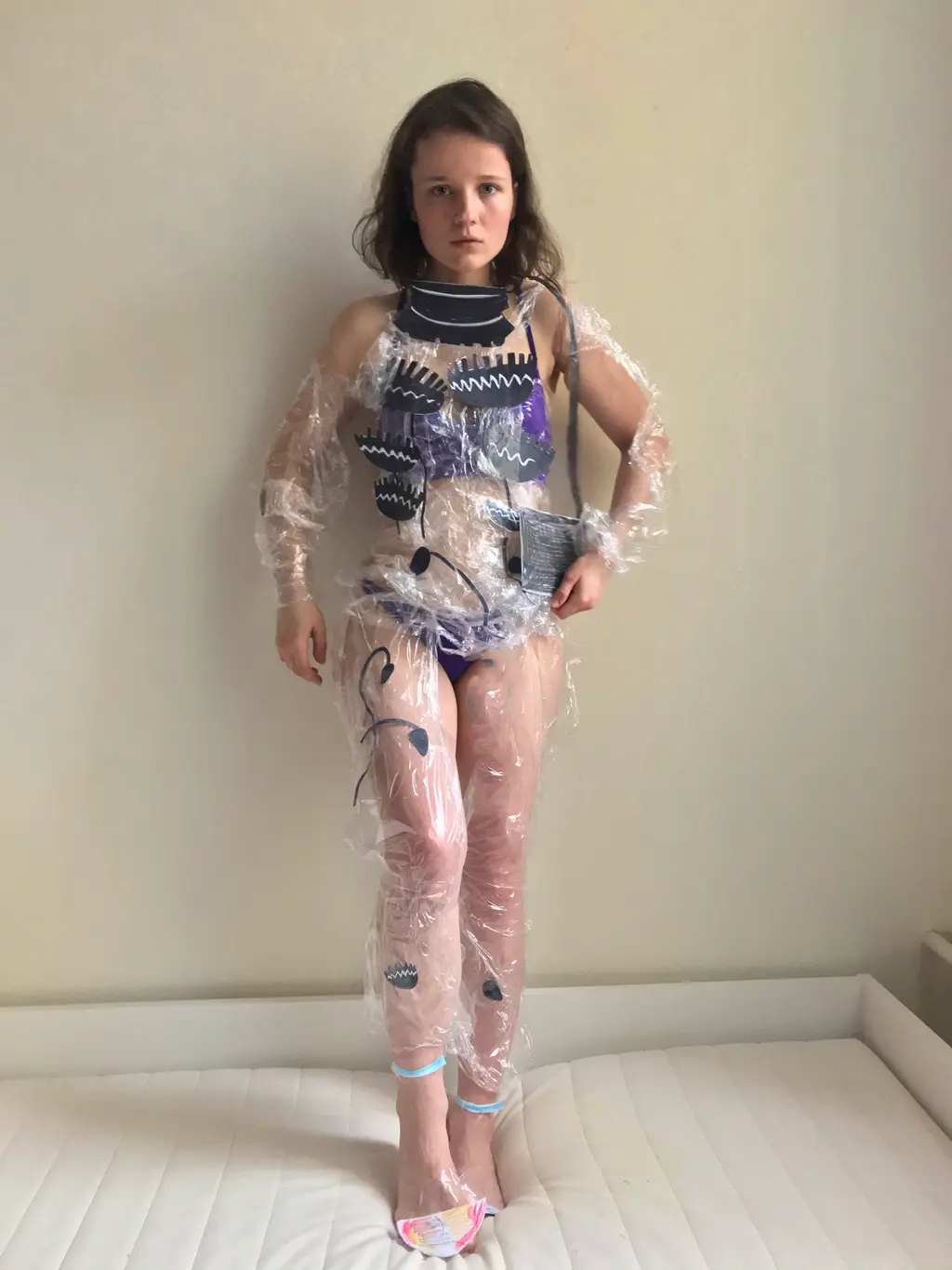 Maya Golyshkina crafts clothes from food, paper, paint and other household objects that some might consider mundane. Think: a pasta shell two-piece (her “new hungry outfit”), a toilet roll holder top (topical), a pair of knickers fashioned from bread (tasty?), and a bikini made out of Play-Doh (a little dangerous, perhaps?). The Russian designer-cum-photographer creates and self-shoots each upcycled look on herself before uploading it to her Instagram account.