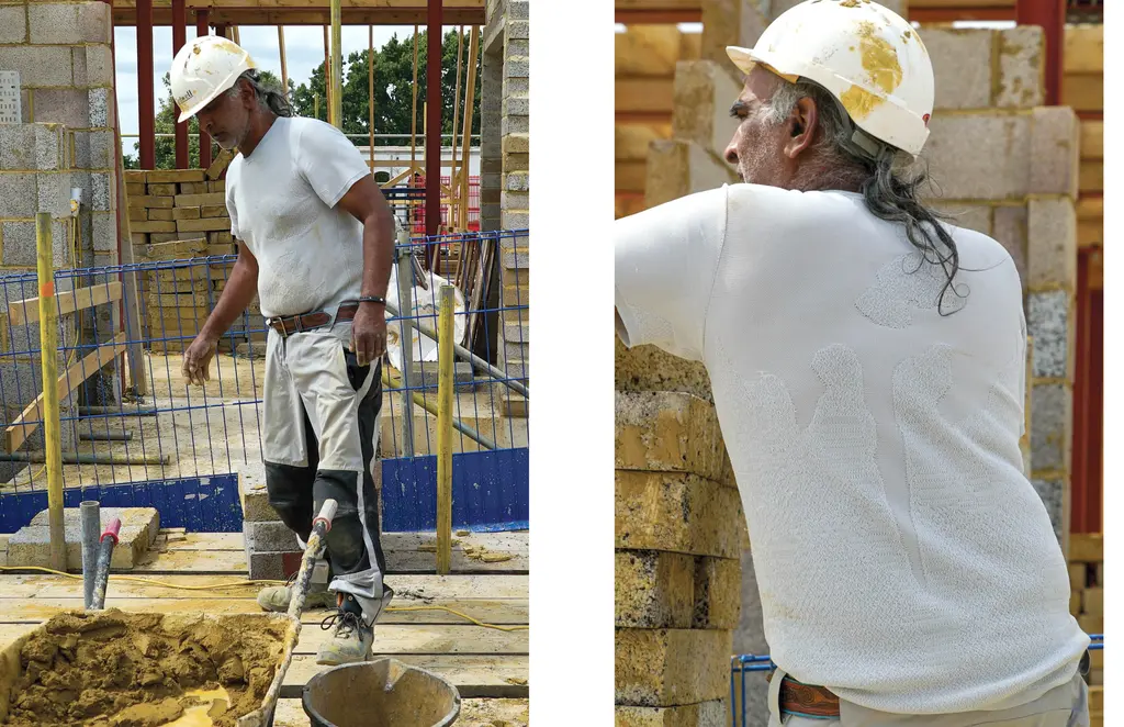 “I seek to usher in a new era in the fashion and workwear industry,” says 26-year-ol Tsang who was born in Hong Kong, but now resides in London. “My investigation included studying the movements of [the bricklayer’s] bodies during work, their working environment and worn-in work garments.”
