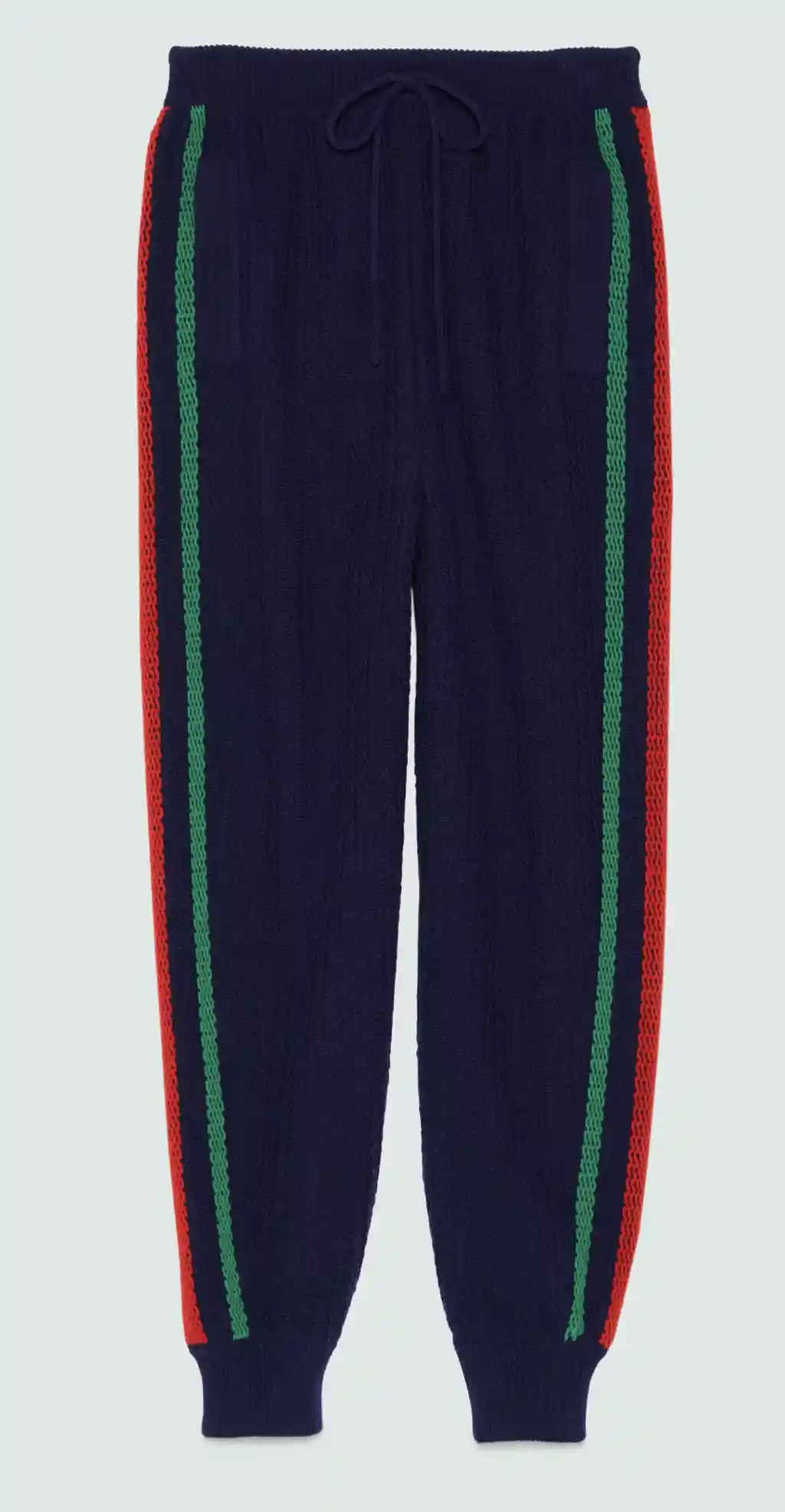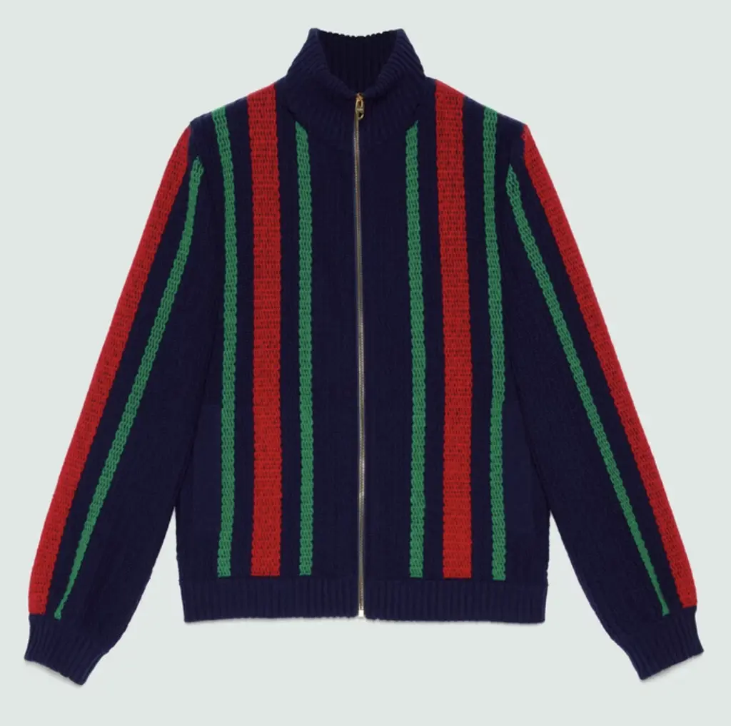 Gucci takes tracksuits very seriously and this saucy two-piece is a solid example. Made from 100 per cent wool, the jacket is designed like a bomber, while the slightly ballooned, cable-knit bottoms pull no punches when it comes to comfort. The references to previous creative director Alessandro Michele are all there: a bit of sleaze, a bit of ’70s and a whole lot of sex appeal that could only be amped up with a cigar, pinky ring and stellar pair of loafers.