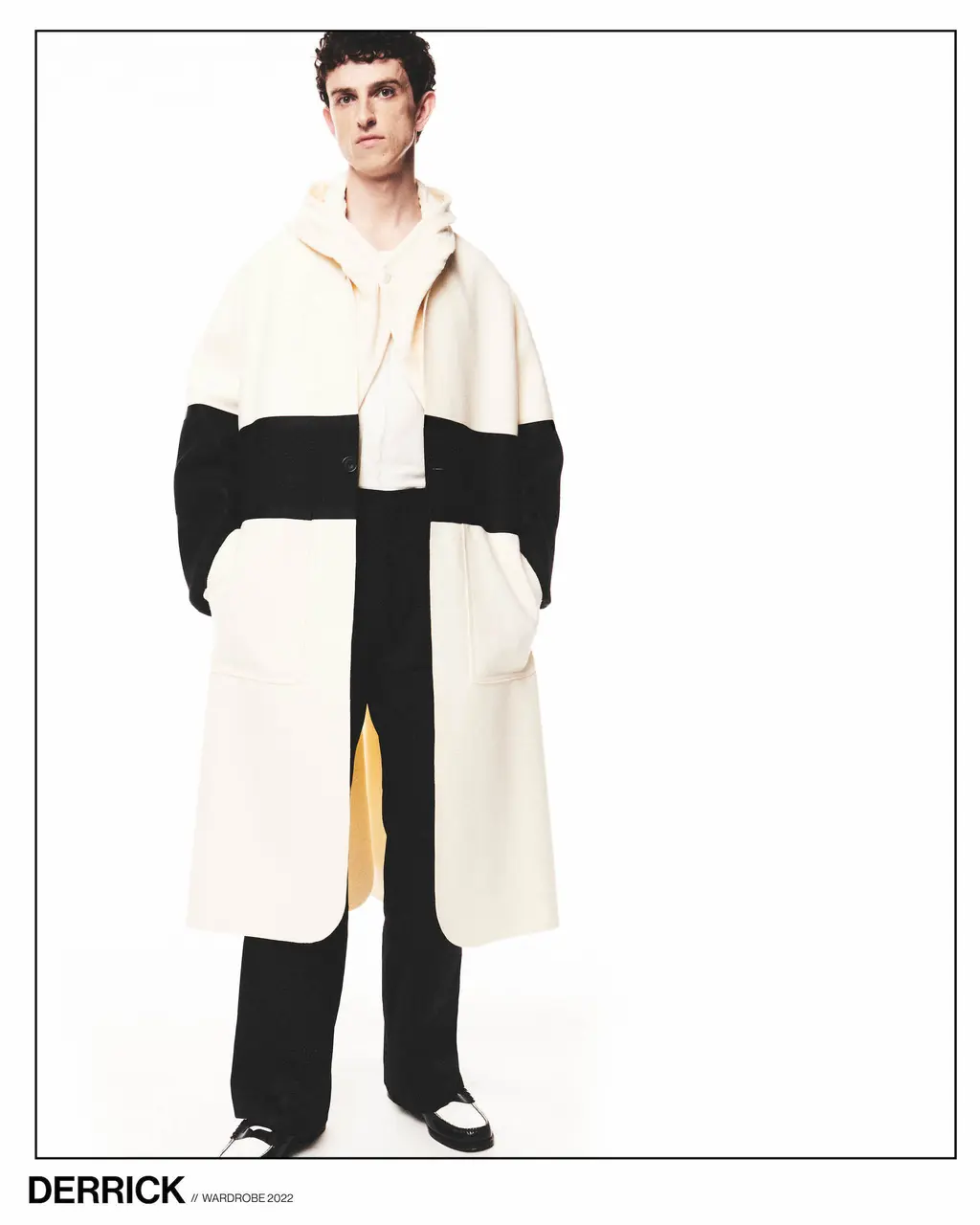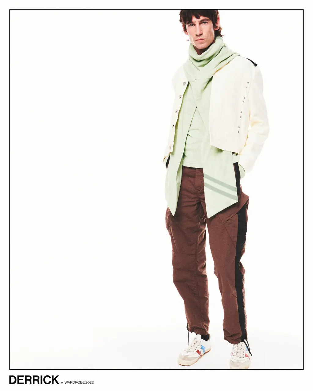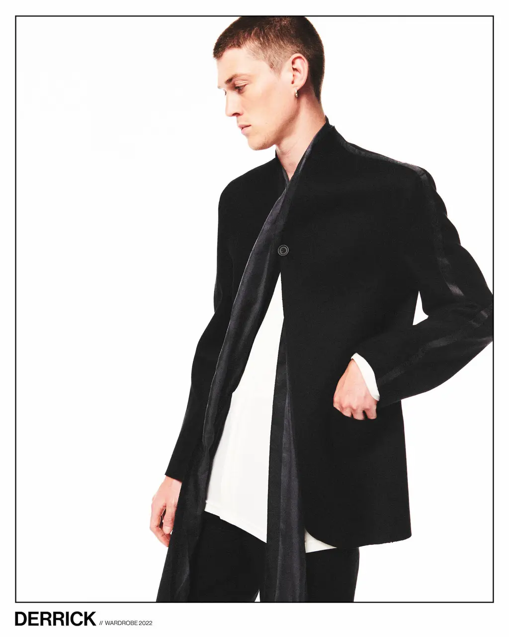 “Who is that ‘urban guy’ today? Maybe he’s creative, probably likes Tarantino… It’s about creating clothes that blur across those different expectations of dress codes,” Derrick says. “You could wear something that you would want to loaf around in, not have time to change, but go out in it anyway. ‘Getting away with it’ dressing is what I’m enjoying exploring with my stuff at the moment.”