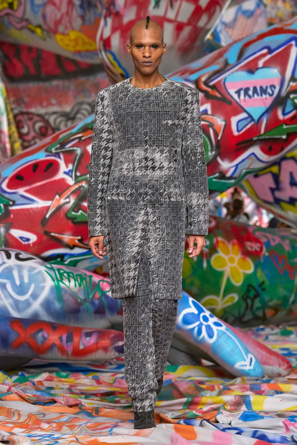 Glenn Martens is a man spinning many plates, one of which happens to be helming Diesel, of course. As we said post-show, Glenn surely has his hands full working on his debut Maison Margiela collection, but Diesel is now his proverbial firstborn (RIP, Y/Project). Glenn spared no theatrics and hauled guests to a graffiti-ridden space which included the sprawlings of over 7,000 people and an inflatable that made the Guinness Book of World Records. Subtle, then.
