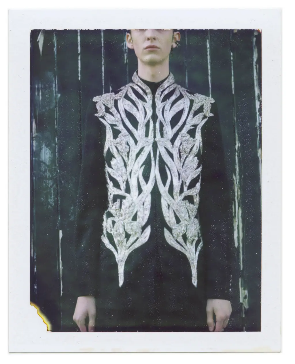 3. A future-forward silver moiré suit (which changes to gold if turned upside down).