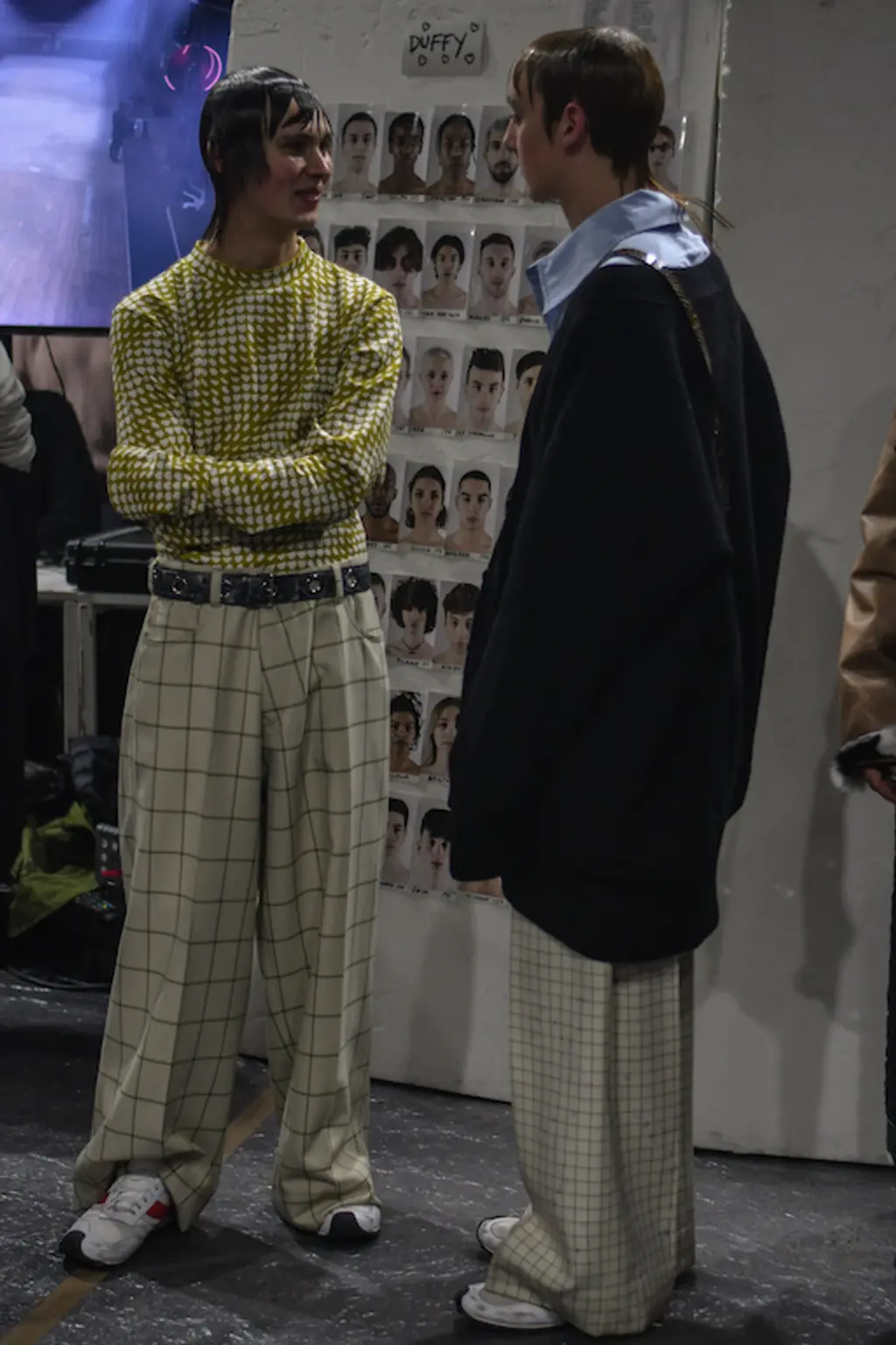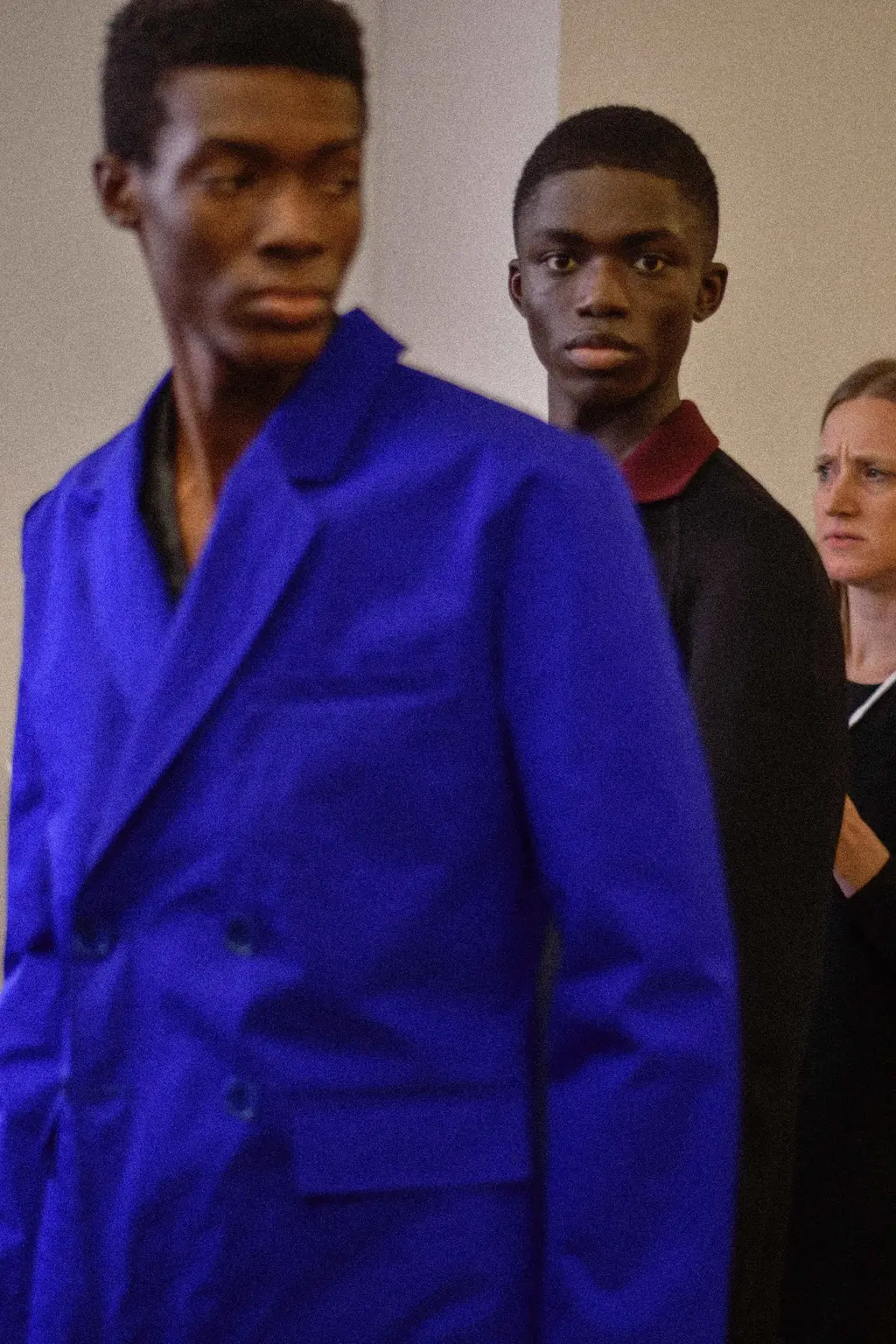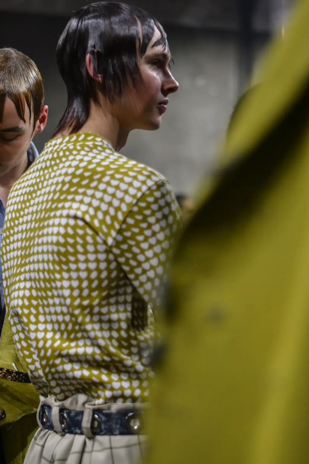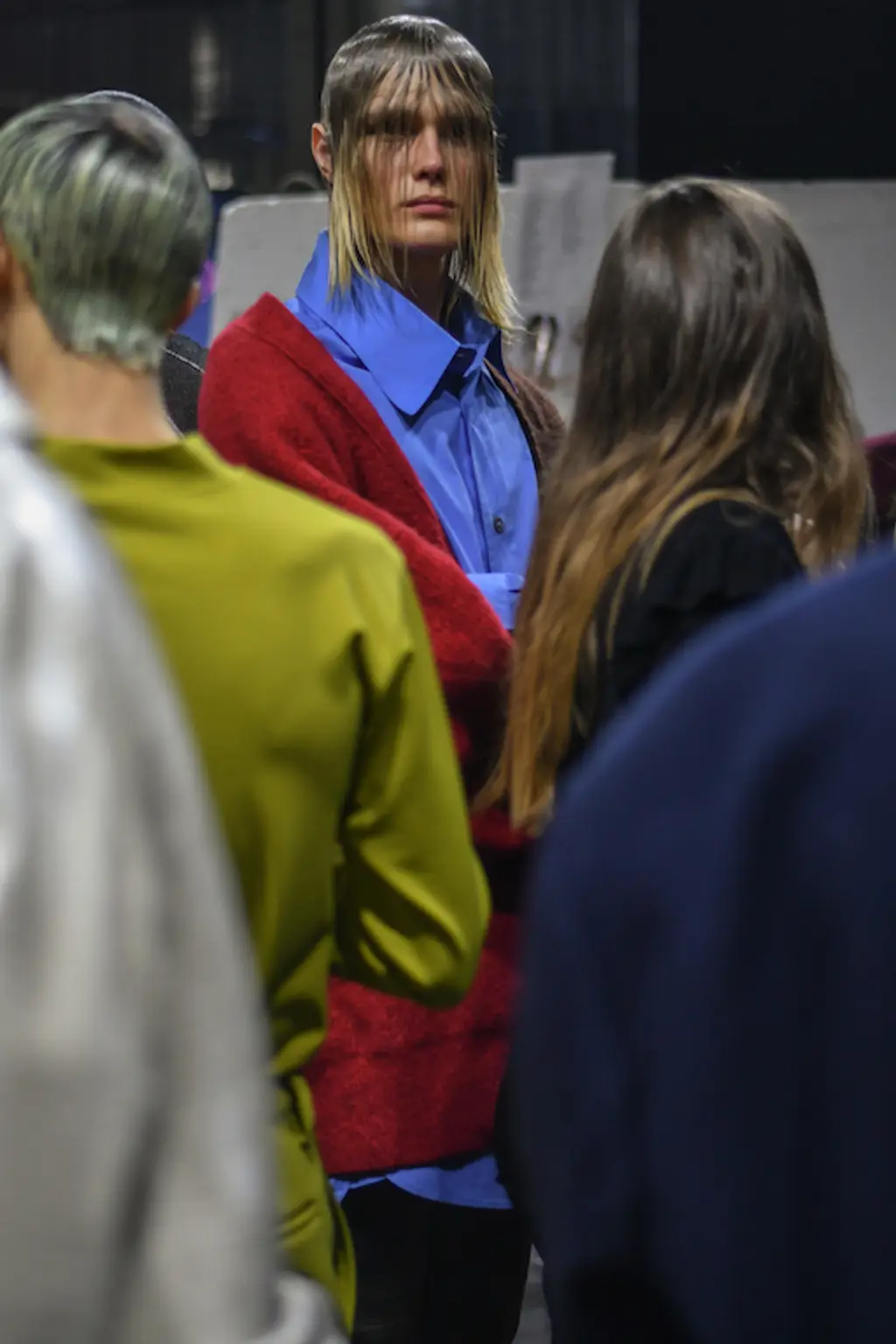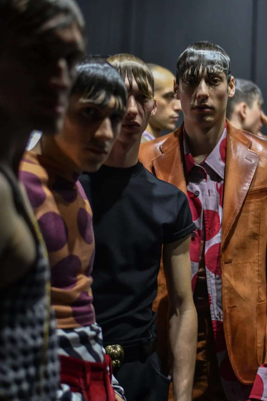 The acid tab invite indicated the tripped-out vibes to come at Marni. Experimental sounds, laser-lit zones and models clustering (for sex, warmth or mourning?) welcomed us, before police sirens and searchlights illuminated the wasted youth, moving in slow motion.