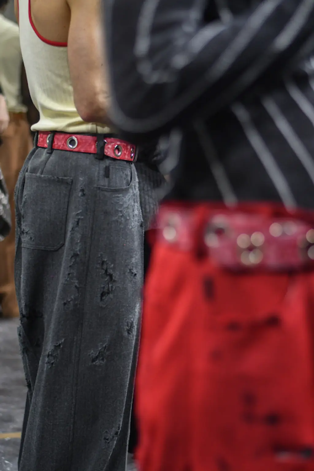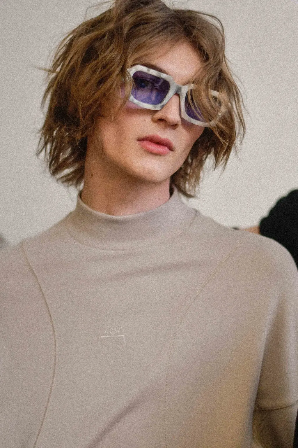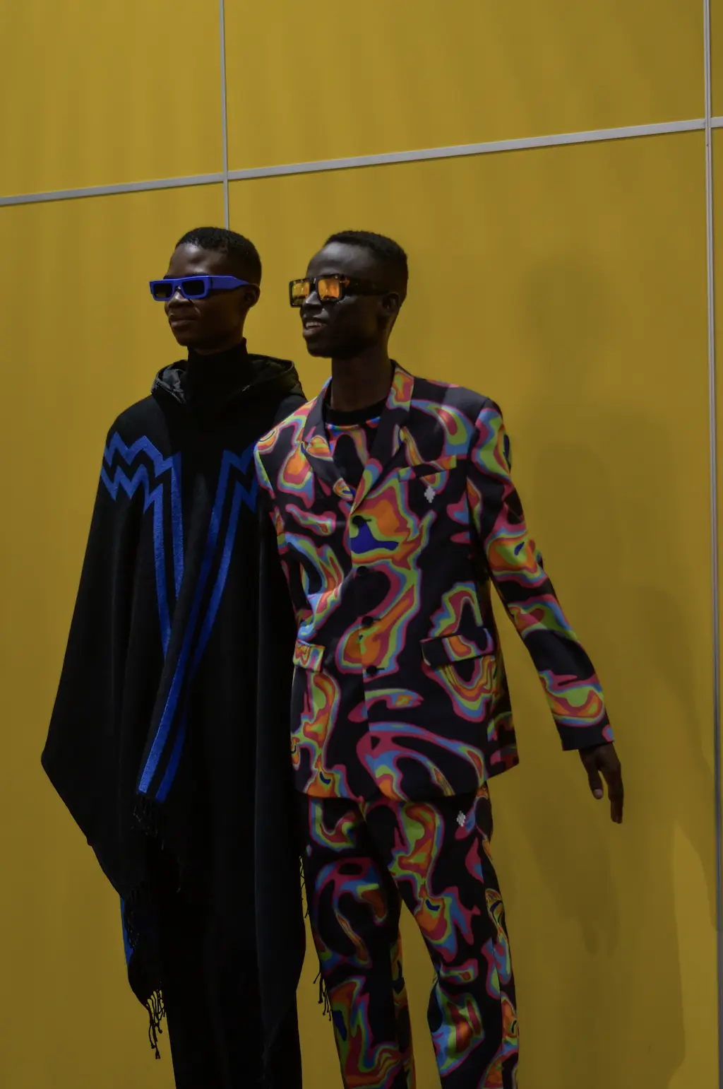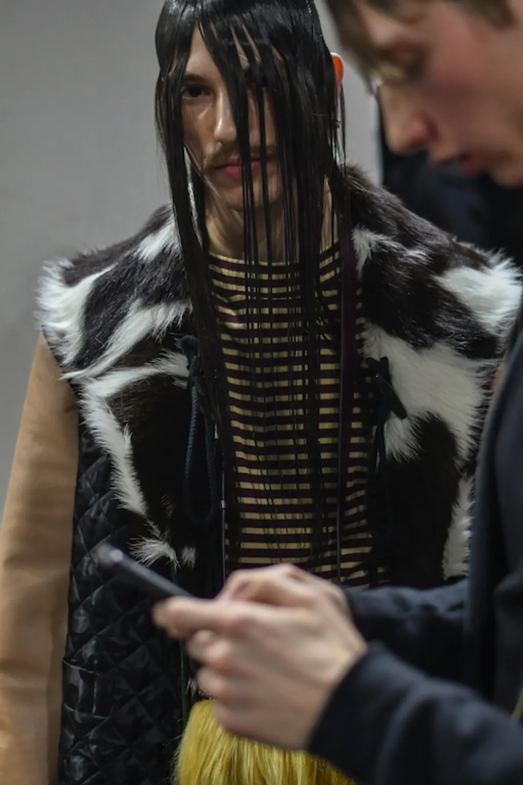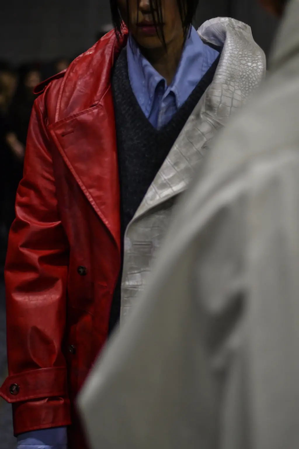 The acid tab invite indicated the tripped-out vibes to come at Marni. Experimental sounds, laser-lit zones and models clustering (for sex, warmth or mourning?) welcomed us, before police sirens and searchlights illuminated the wasted youth, moving in slow motion.