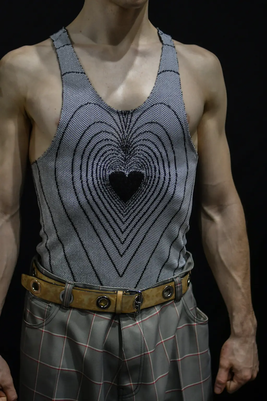 7. The trompe l’oeil tuxedo with double lapels and harness at the back.